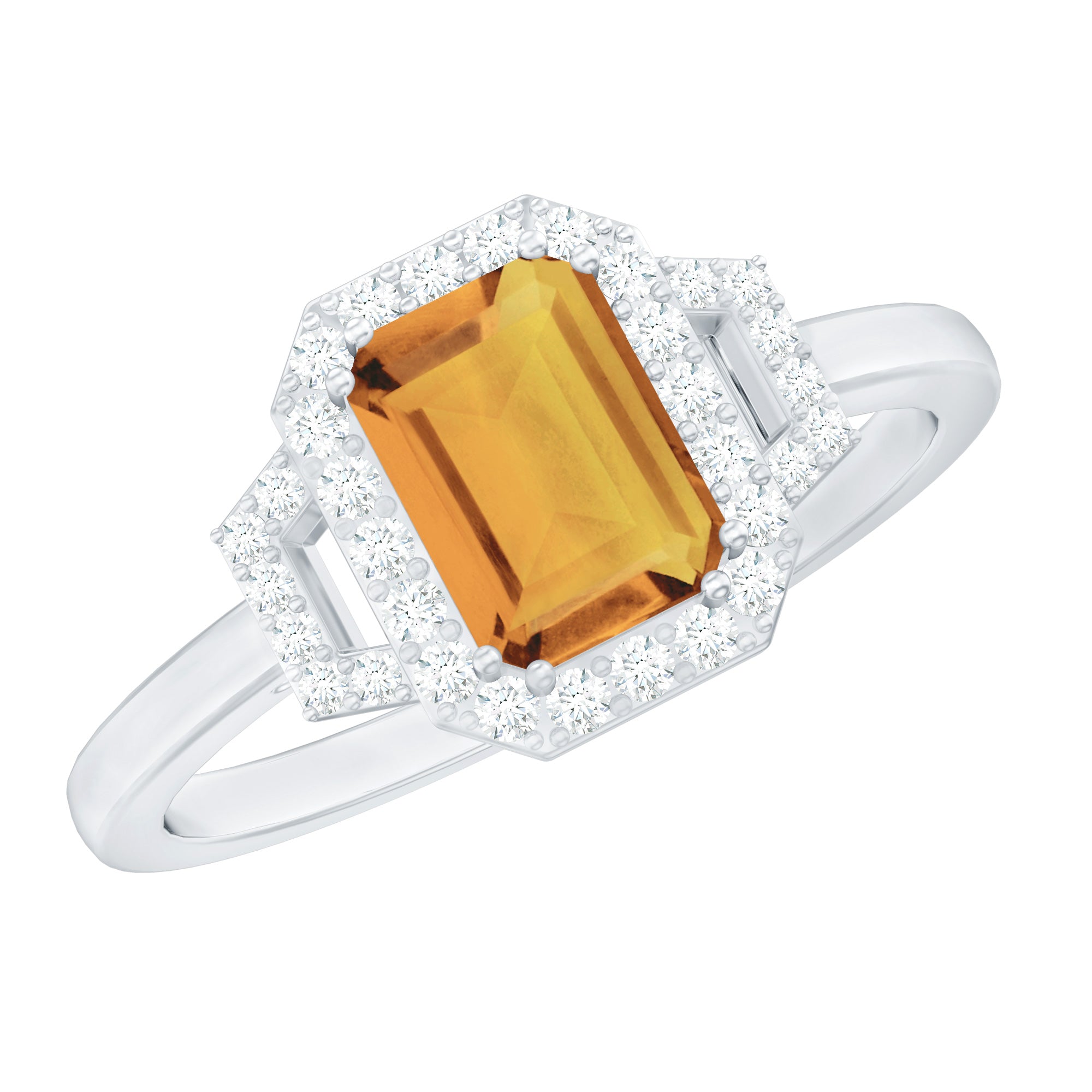 Unconventional, flashy, and flamboyant, a Citrine Cocktail Ring features an enormous Centerpiece of Citrine that is set in an intricate and complex design. For those looking for a bold Citrine Diamond Engagement Ring, this ring style is often complemented with a sparkling parade of Diamond/Moissanite that is ornamented in eye-striking patterns. To lend it a visual appeal, it is often decorated with floral and nature-inspired motifs as well as vintage detailing.