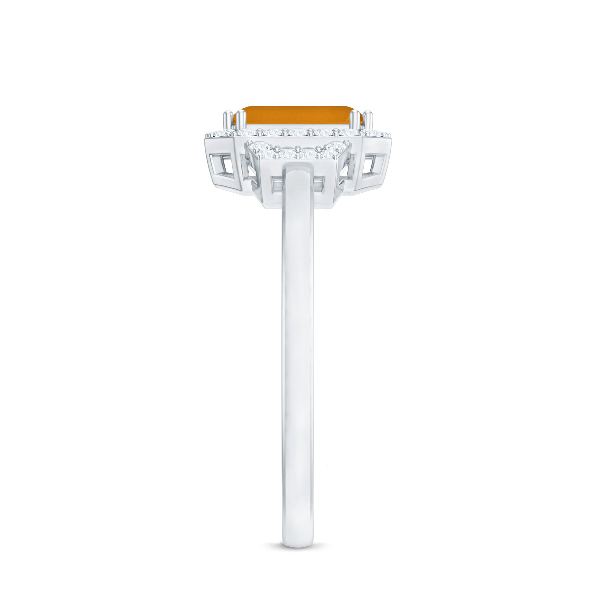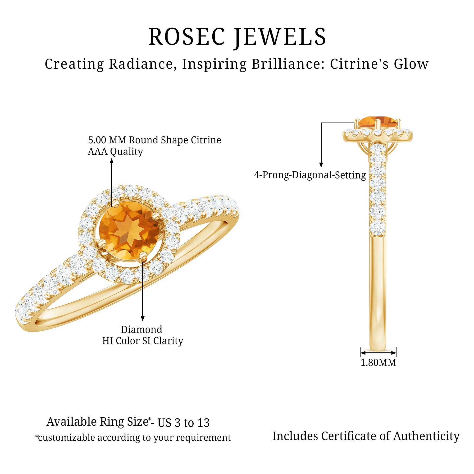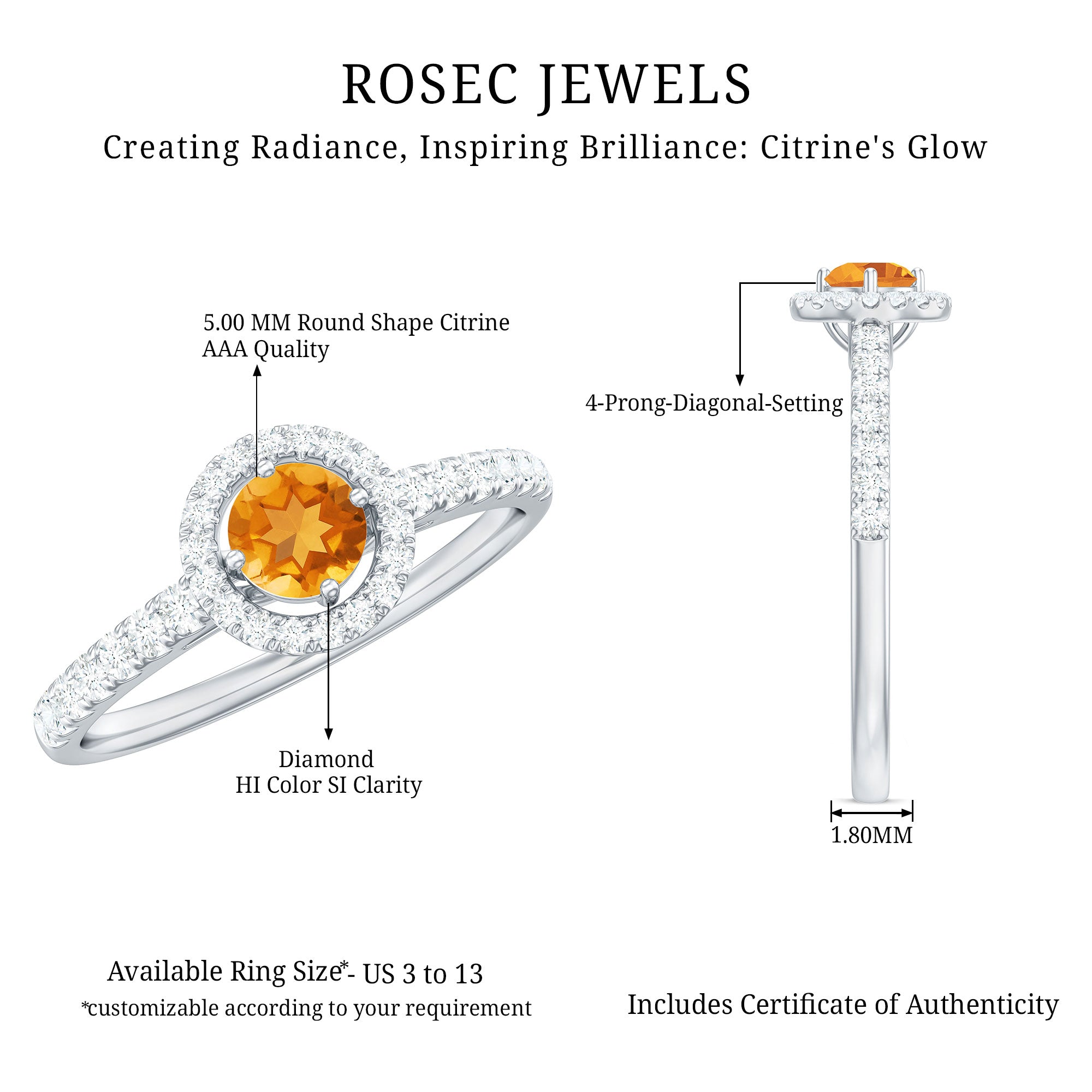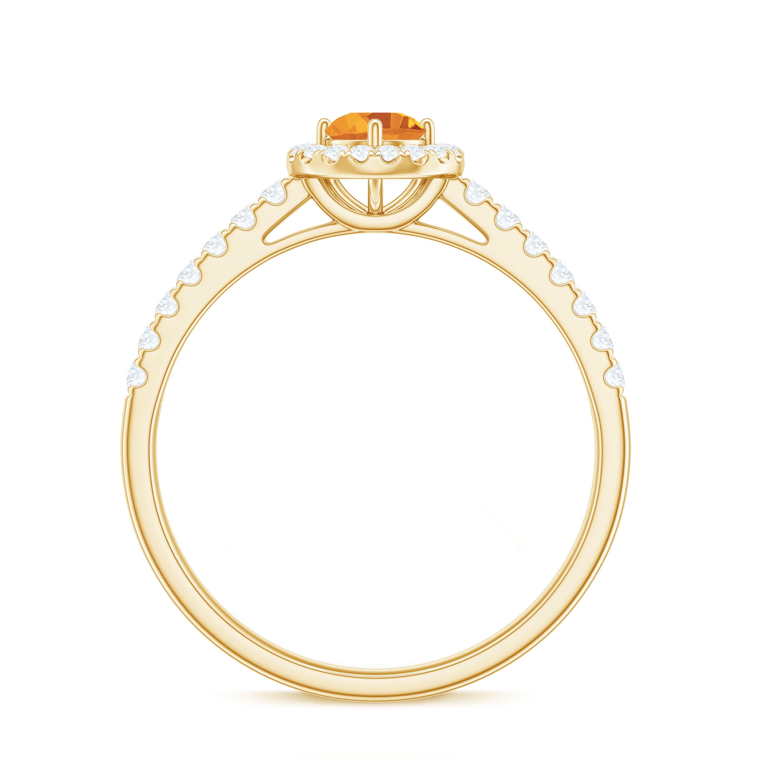 Emphasizing the Simple Solitaire Style with glitz and glam, a Halo encircles the Centerpiece of Citrine with a row of Diamond/Moissanite. The Halo rewards your Citrine Solitaire with more personality, a larger-looking size, and above all, more brilliance. If you’re one of those couples who fancy some added bling in their ring without compromising on its timeless appeal, you won’t find a better pick than the Citrine and Diamond Engagement Ring (with Diamonds Set in a Halo).