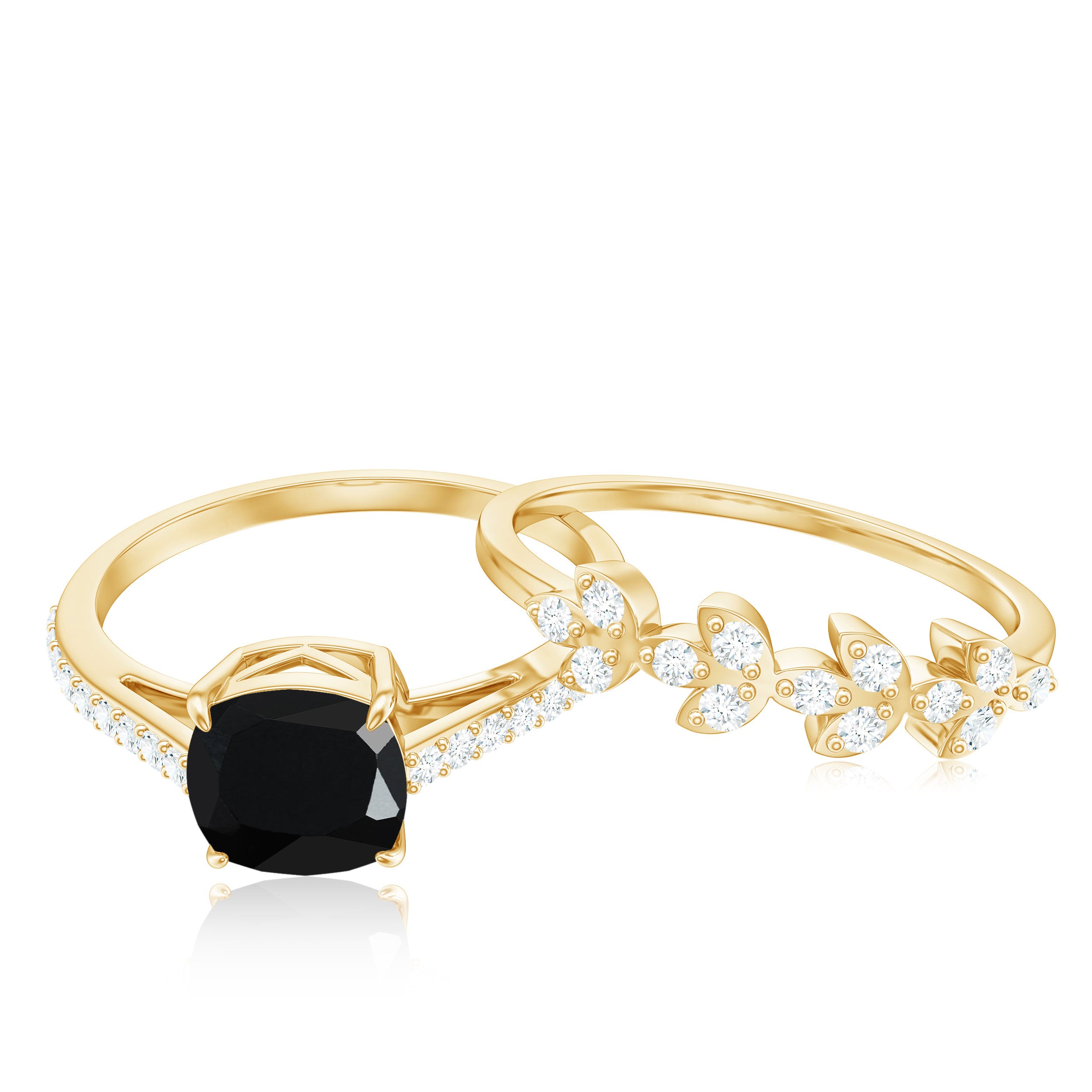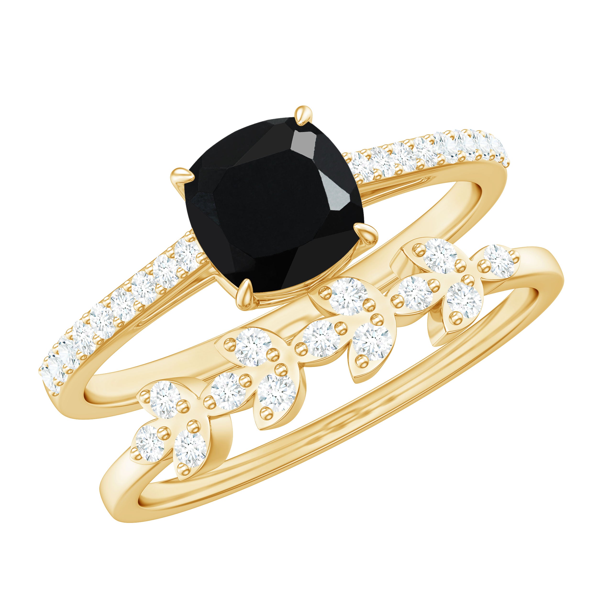 Cushion cut gemstone in the ring maximizes carat weight appearance, offering a bigger look to overall design. This cut is comparatively less expensive in comparison to other popular cuts. Cushion cut engagement rings are a better value for those who don't want to compromise on style and are looking for size and sparkle.