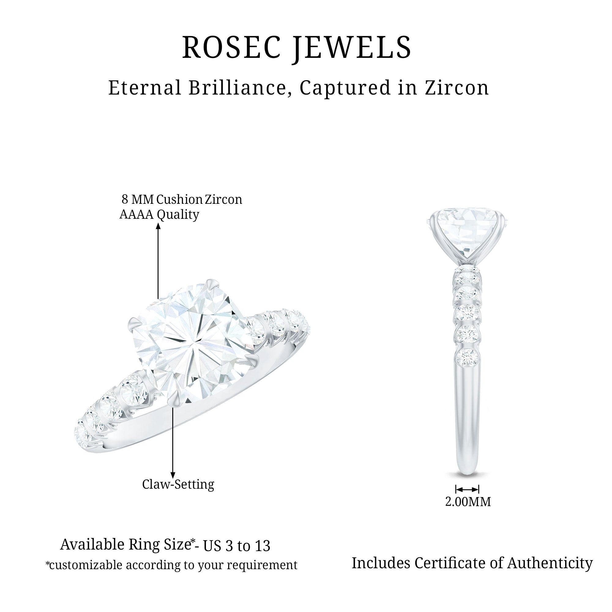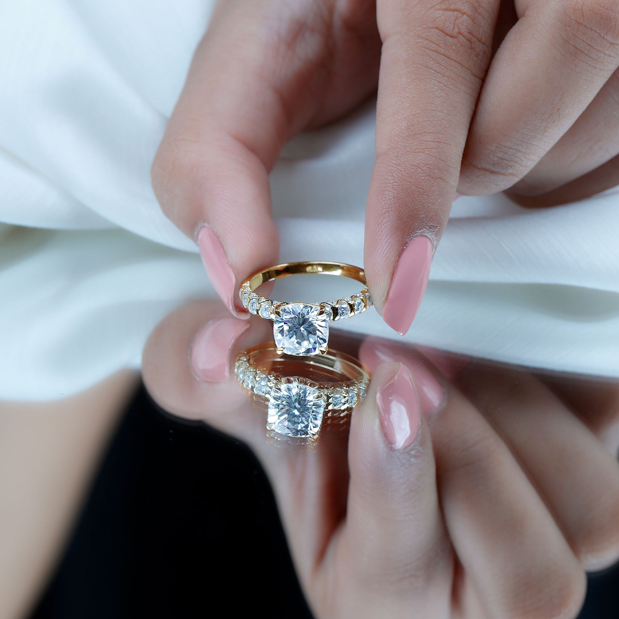Gemstone with rounded edges is free from the snagging and chipping issues, due to absence of sharp corners. Besides being beautiful, they are a more practical and long lasting choice as day to day wear accessories. Check the moissanite cushion cut engagement rings category to find a durable as well as affordable sparkler for your forever moment.