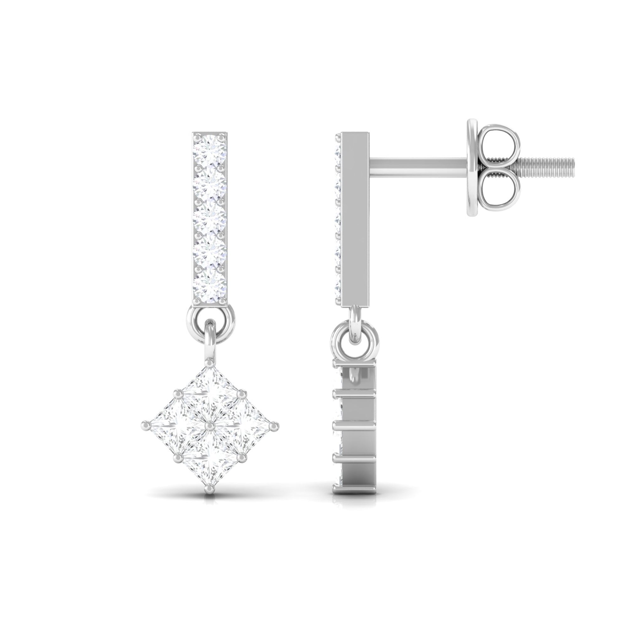 Princess Cut Diamond Earrings can be best defined as square cut with pointed corners and brilliant-style facet pattern. Interestingly, they look close to an inverted pyramid that possess two to four chevron patterns. With as many as 76 facets, they showcase a unique, sparkling effect from different angles.