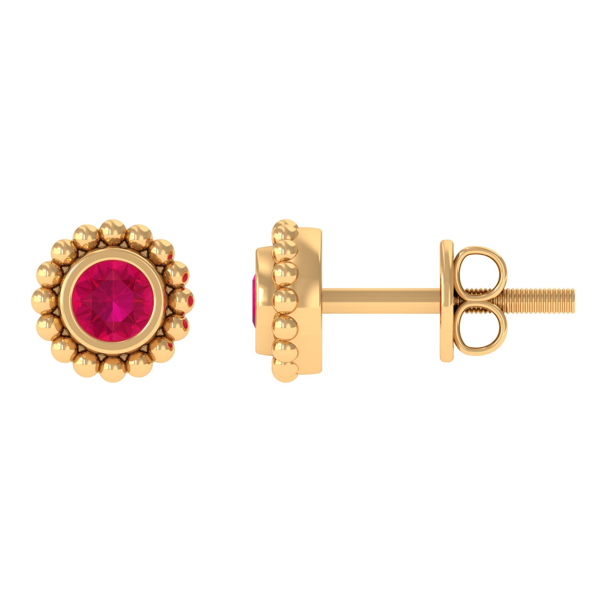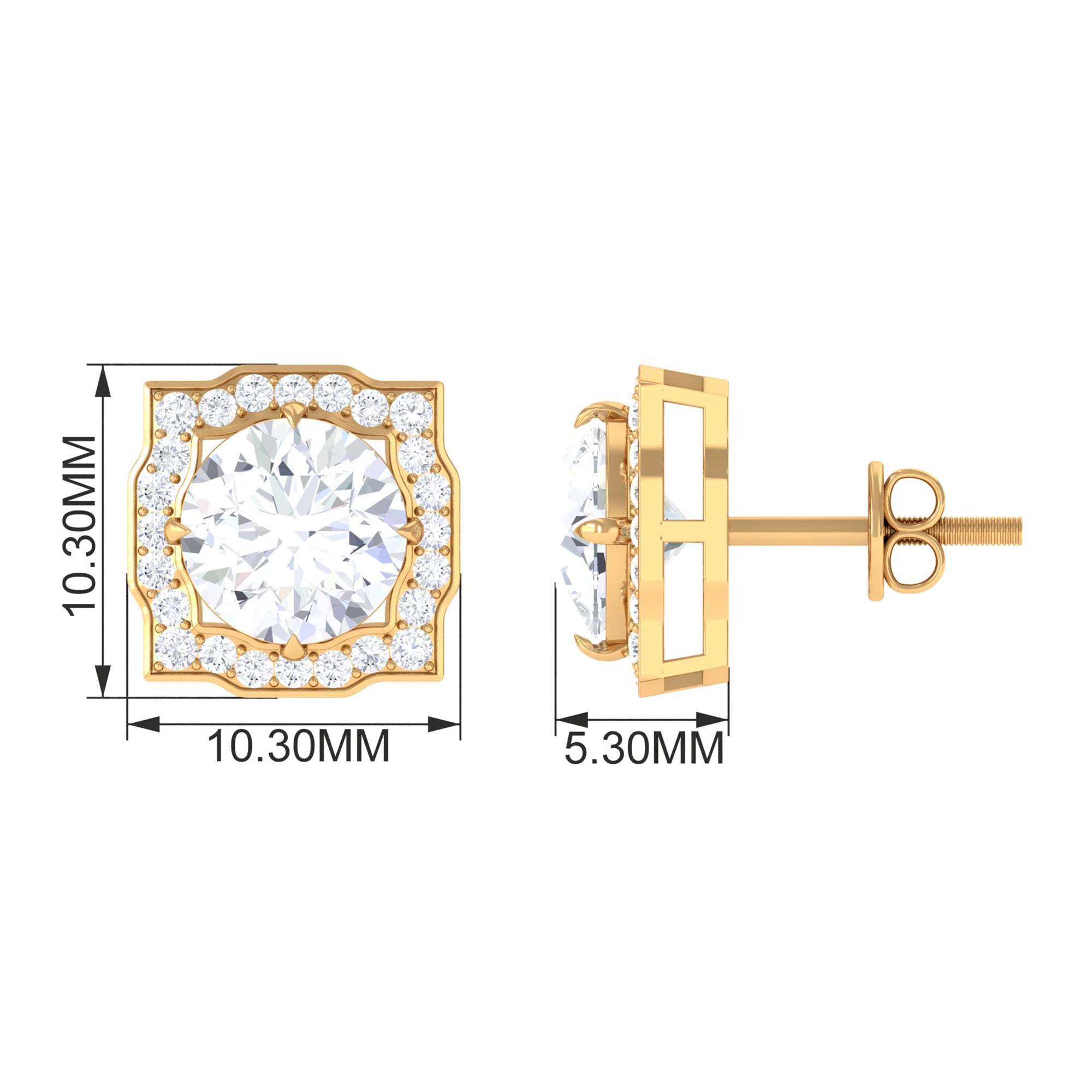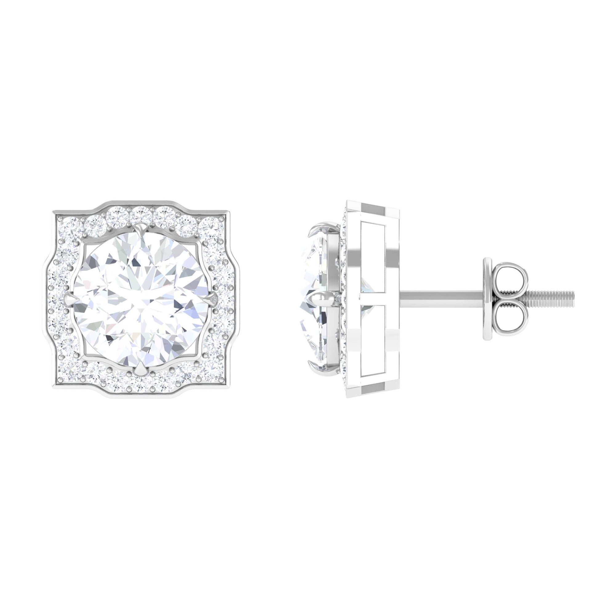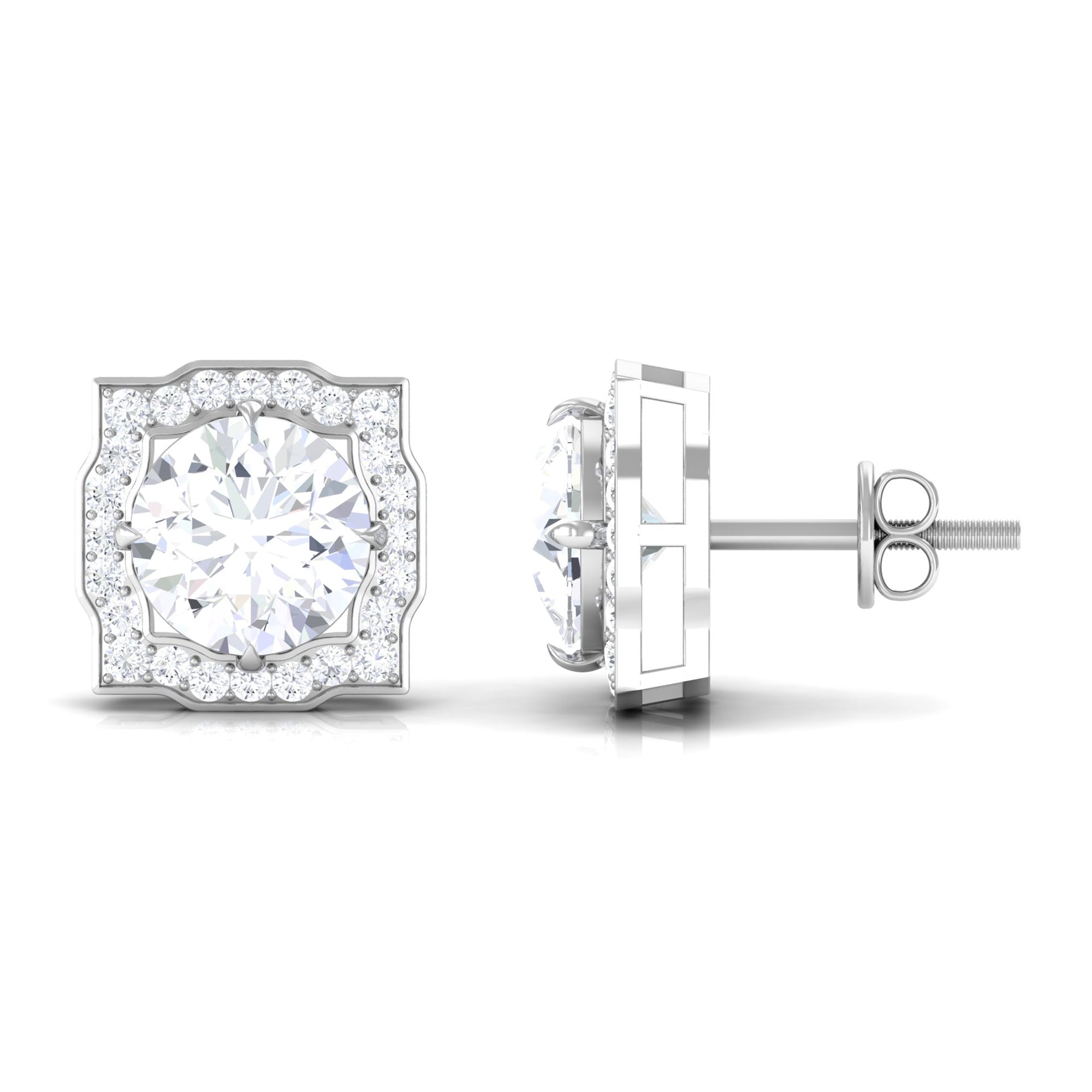 Halo Studs: Those who love extra sparkle, would definitely admire this design, which features a halo of small shining or colored gemstones, surrounding the center stone. Single, double or triple halo, not only increases the brilliance, but also offers added protection to the main gemstone.