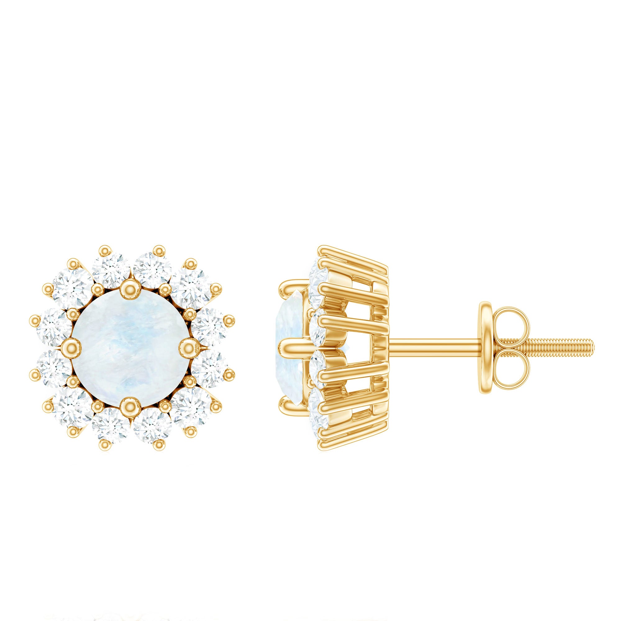 • Halo Studs: Those who love extra sparkle, would definitely admire this design, which features a halo of small shining or colored gemstones, surrounding the center stone. Single, double or triple halo, not only increases the brilliance, but also offers added protection to the main gemstone.