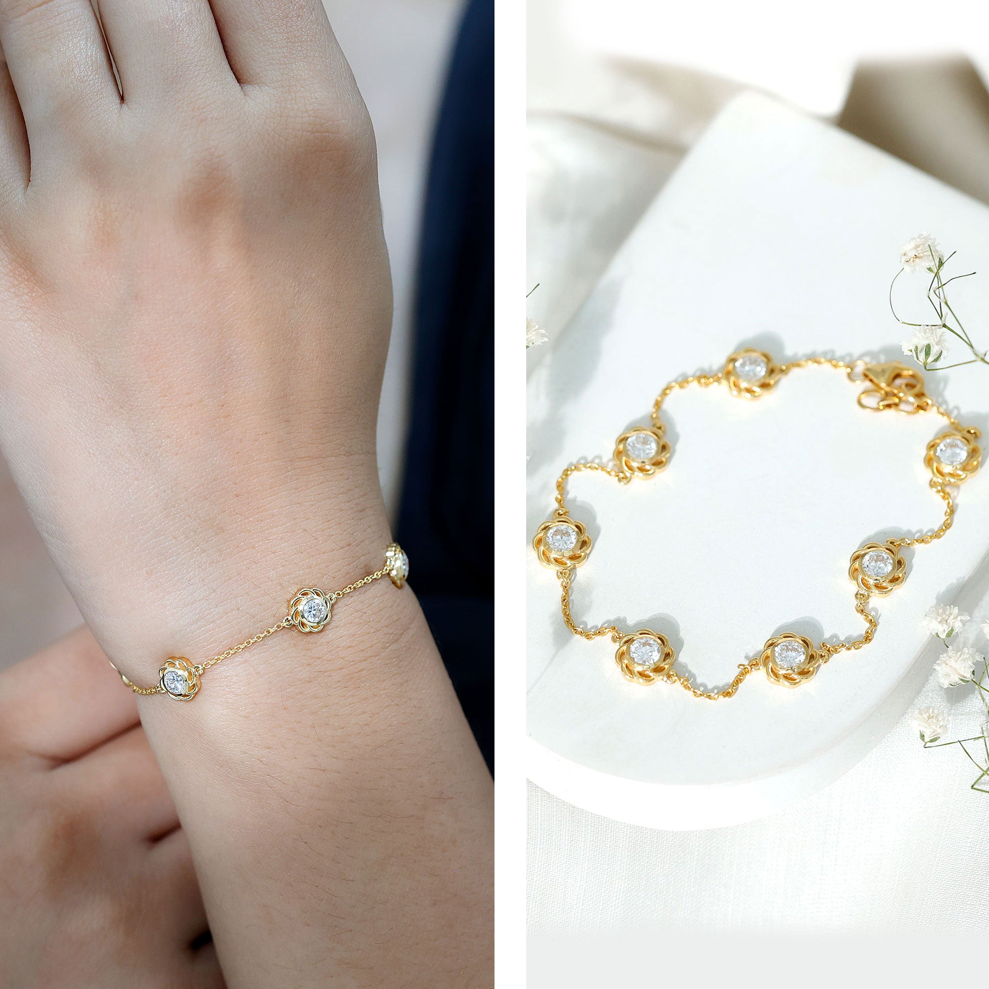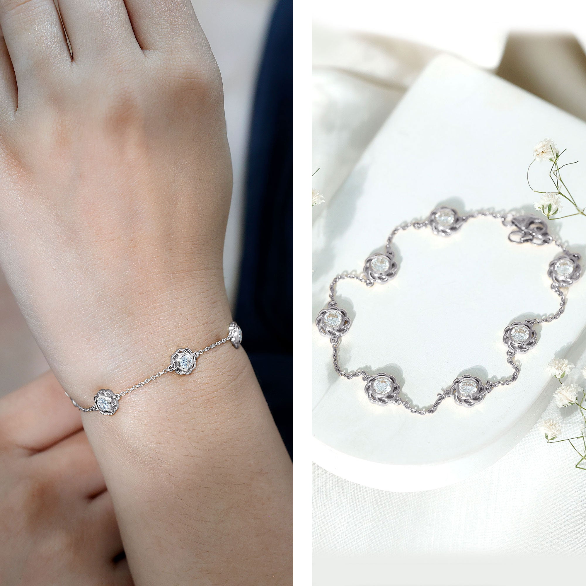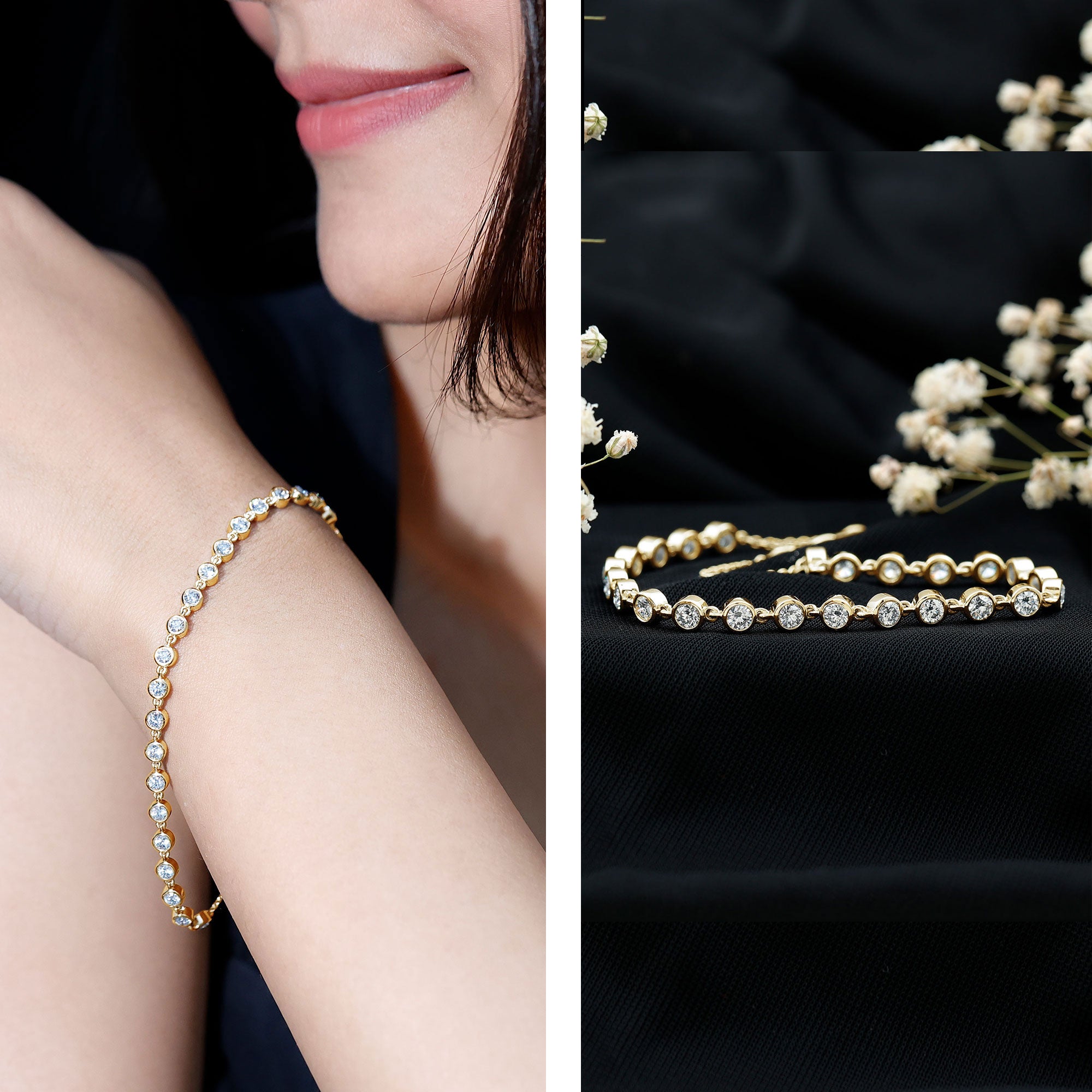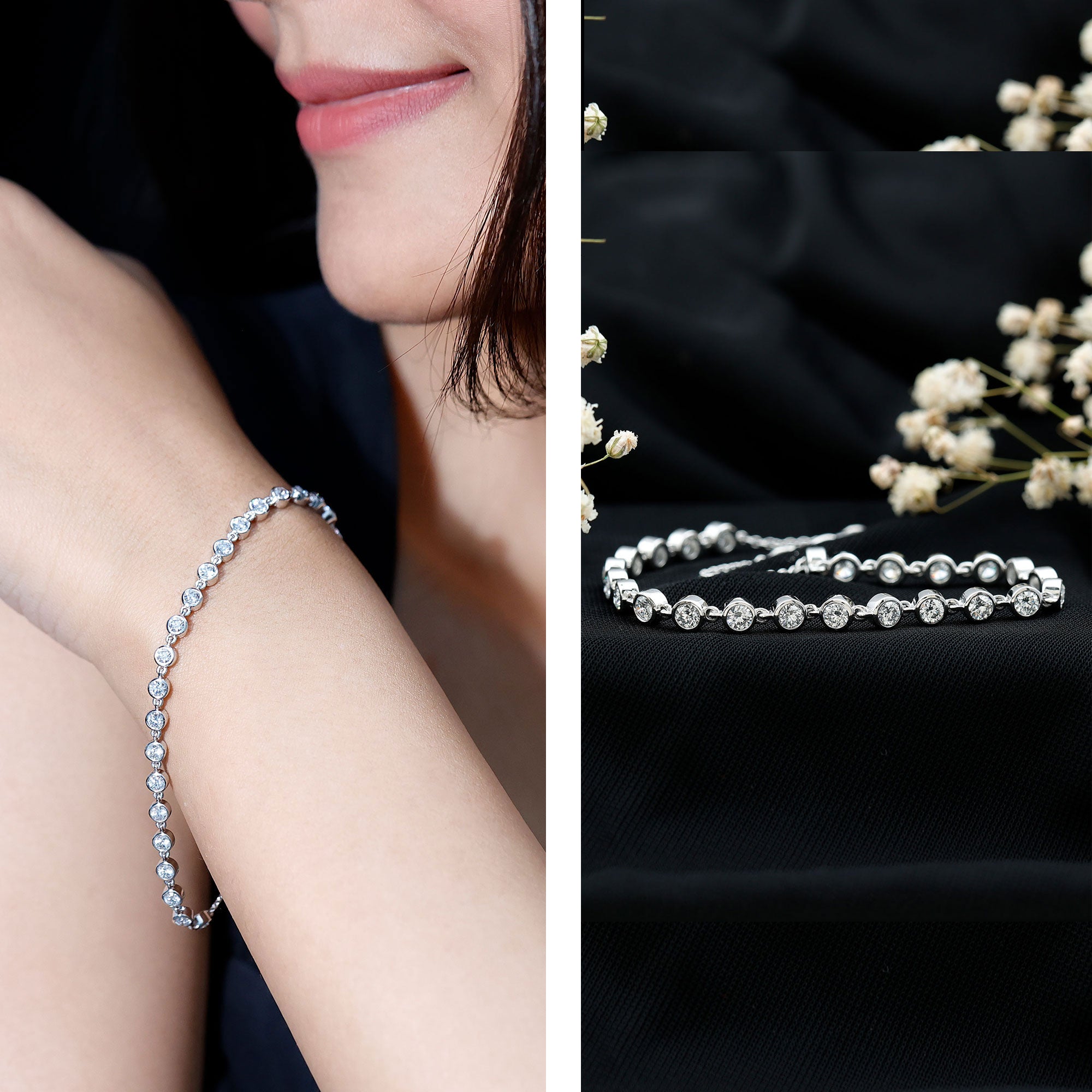 Choosing the Right Metal: Like other accessories, the metal of your lab created diamond bracelet affects its look and durability. Yellow gold offers traditional warmth and is a timeless choice, while white gold is often chosen for its sleek, modern appeal. Sterling silver is also popular as an affordable and durable option. Your skin tone can also influence which metal looks best on you.