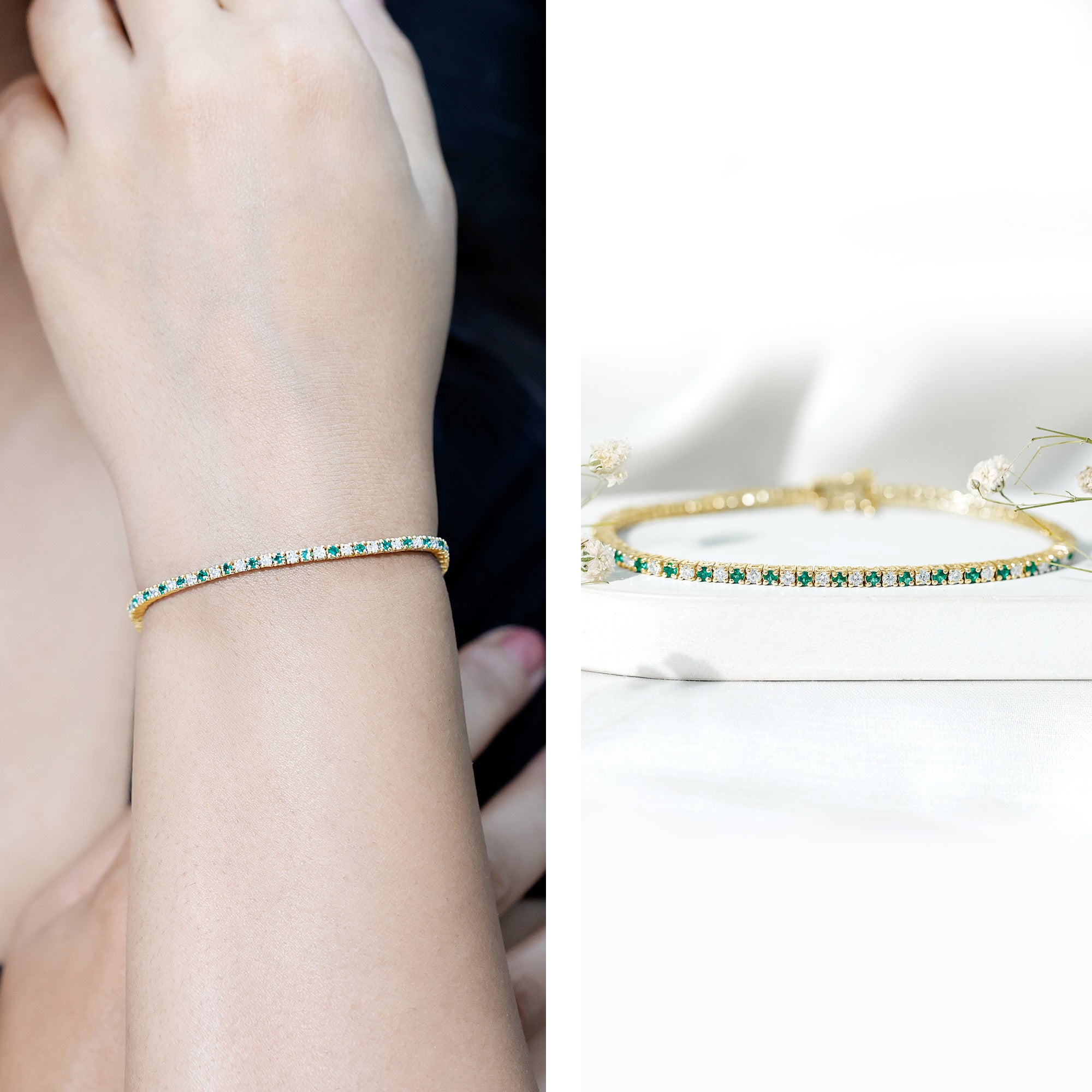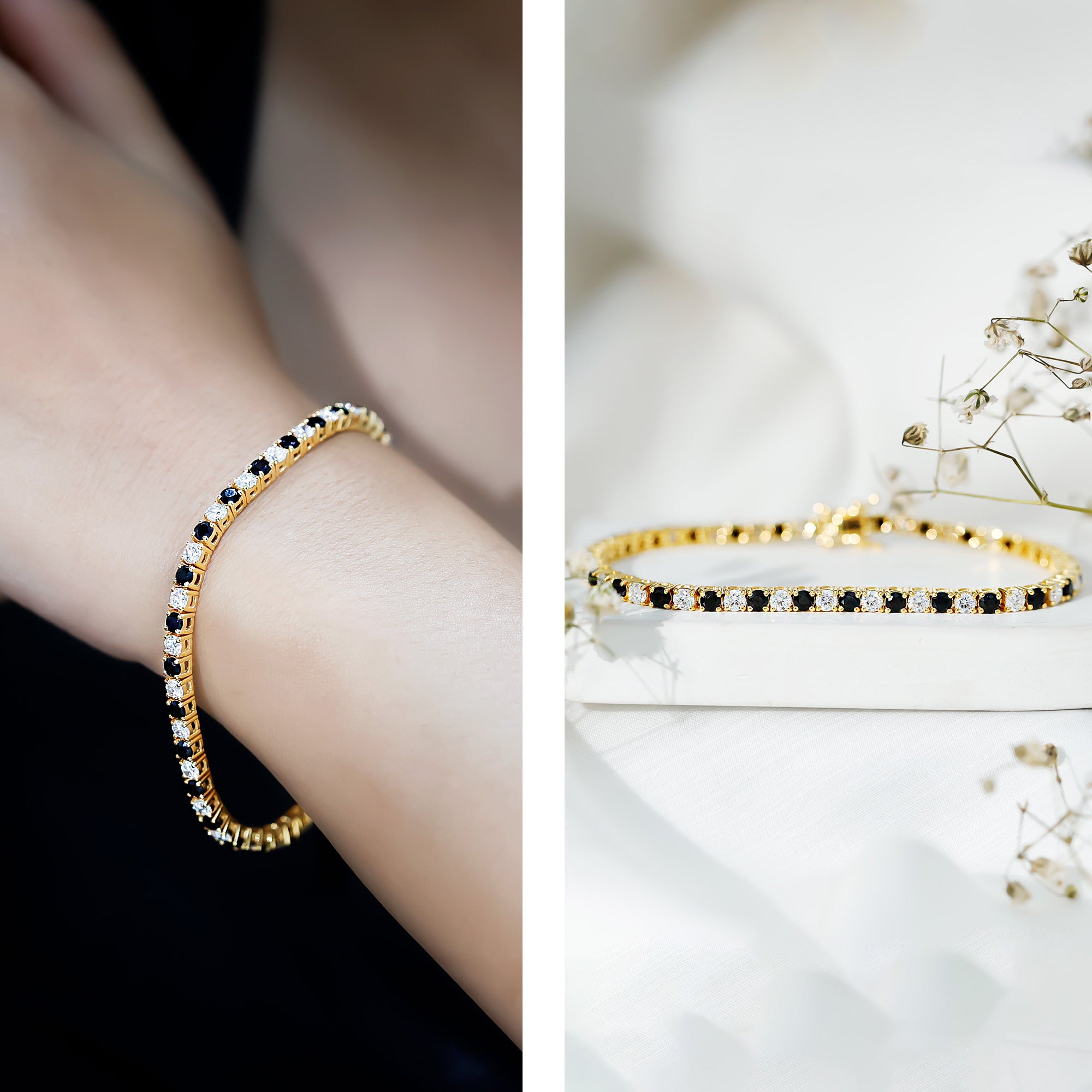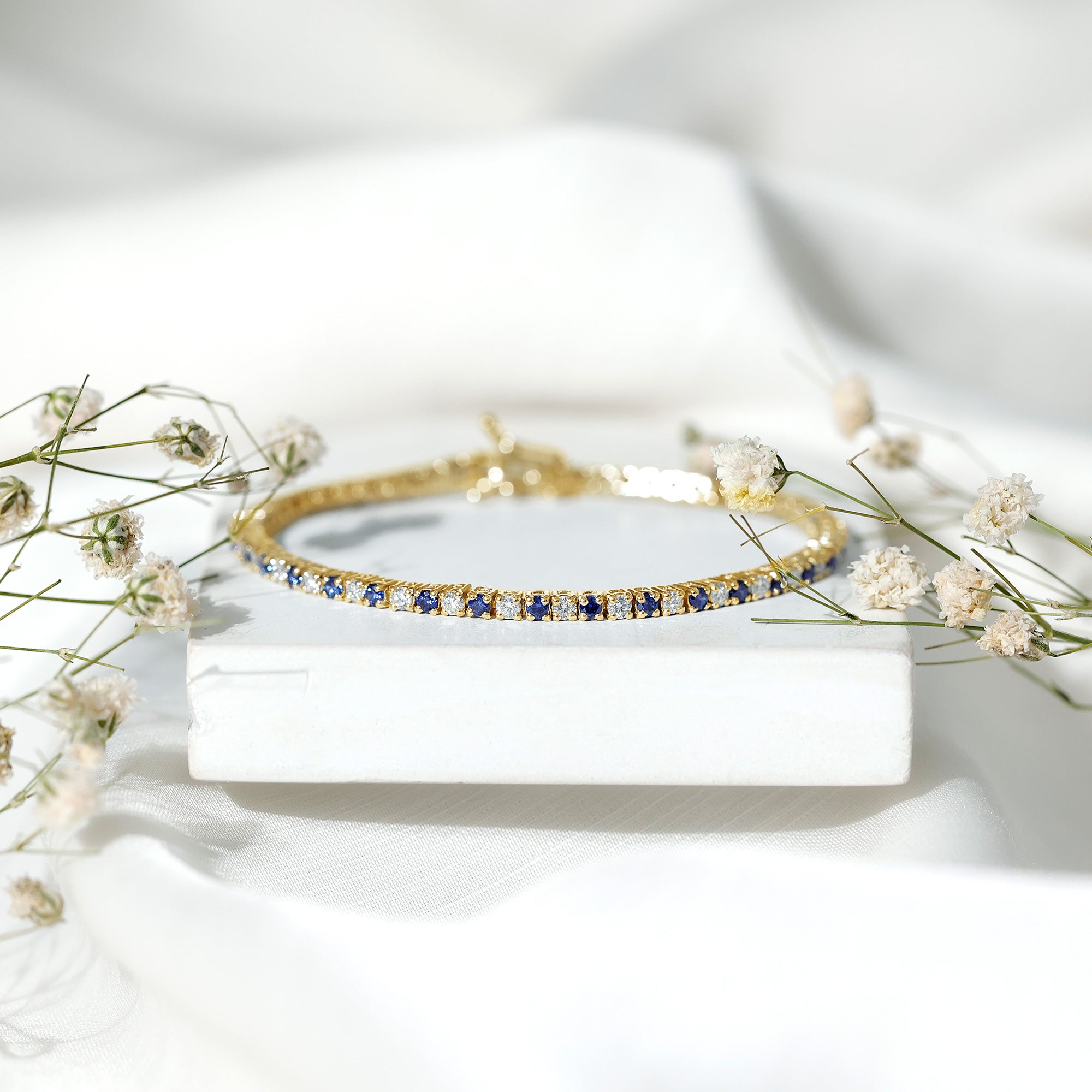 Settings affect the look of the bracelet to a considerable extent. Prong settings offer maximum sparkle to gemstone by letting in the most light, bezel settings offer security and a sleek look, and pavé settings featuring closely set stones give a continuous shimmer.