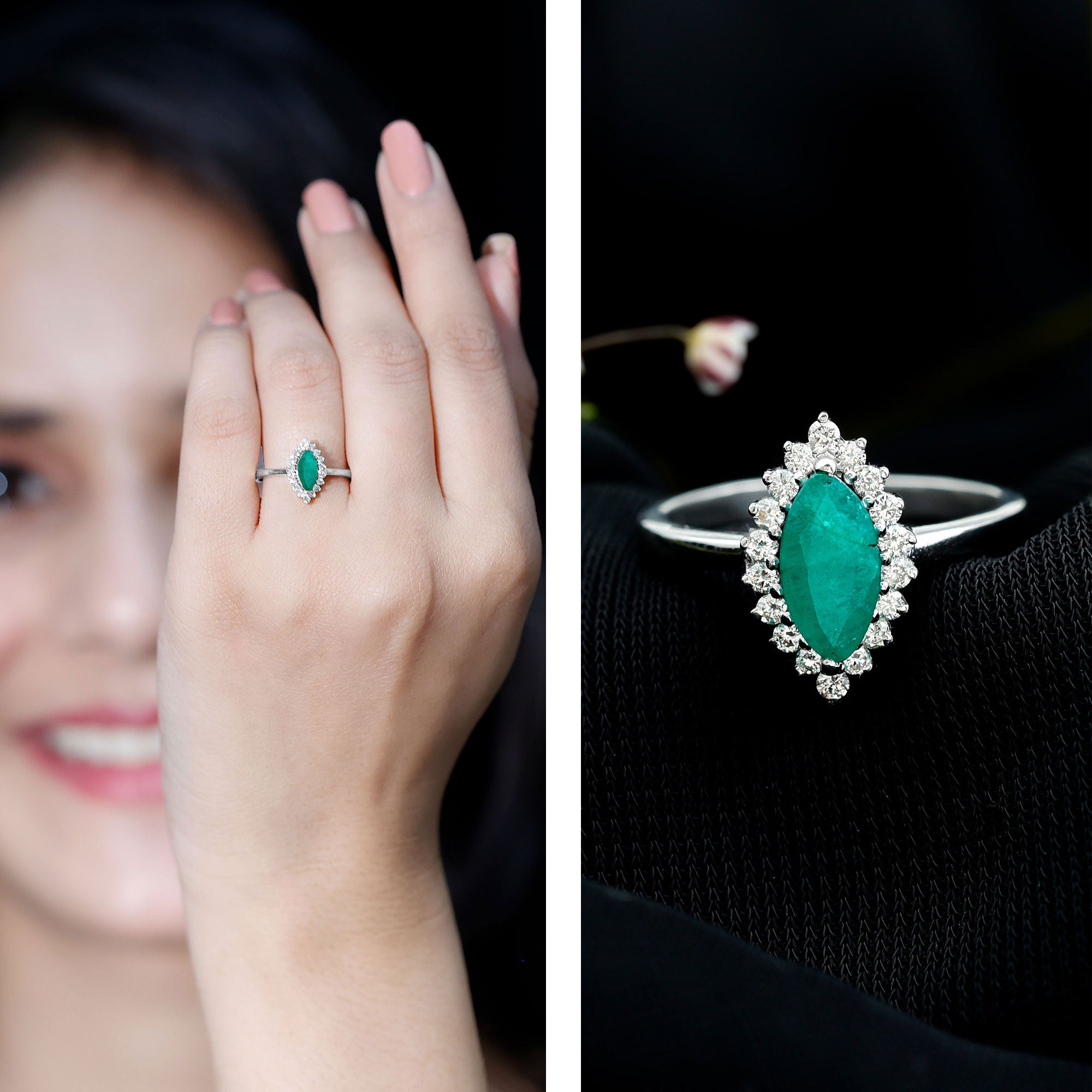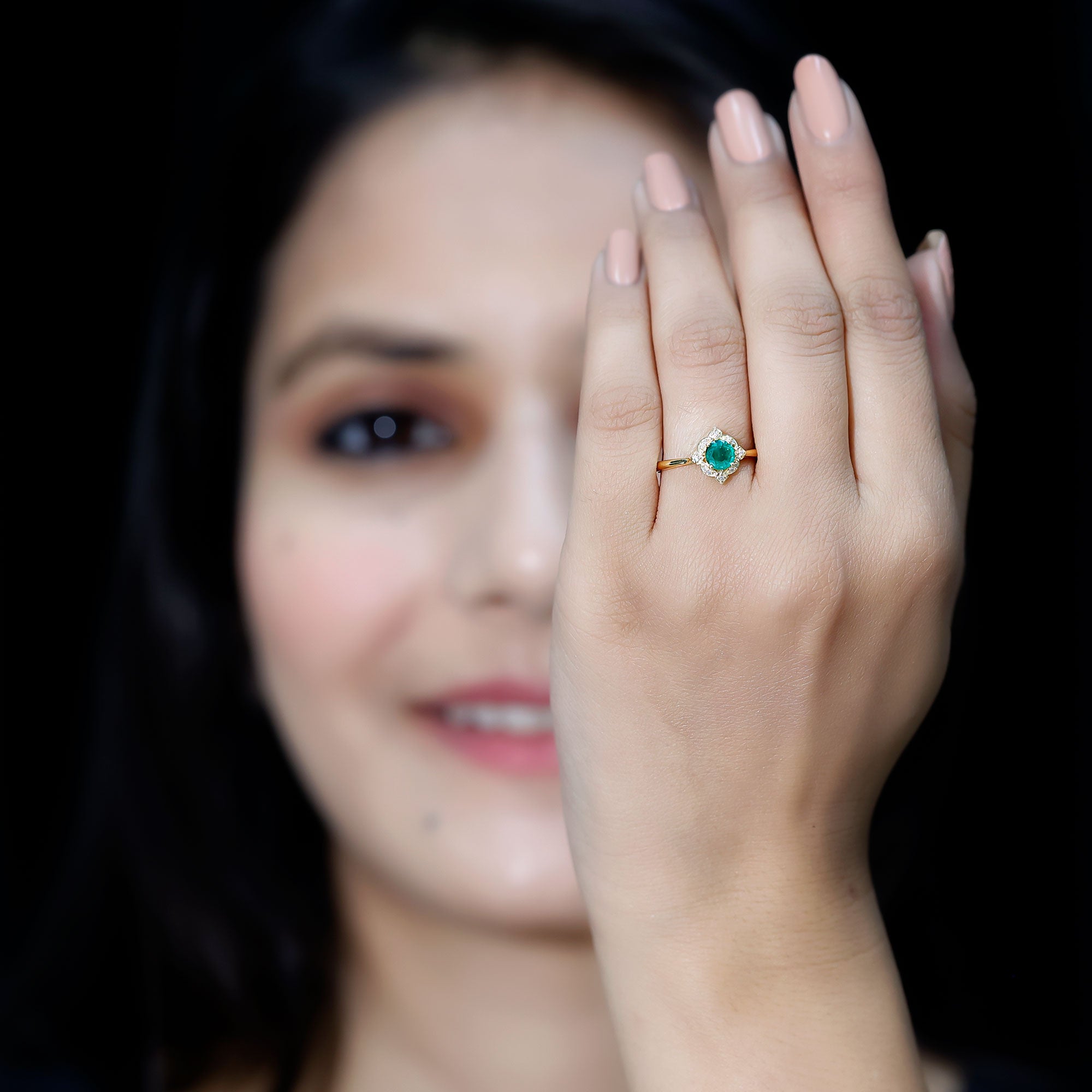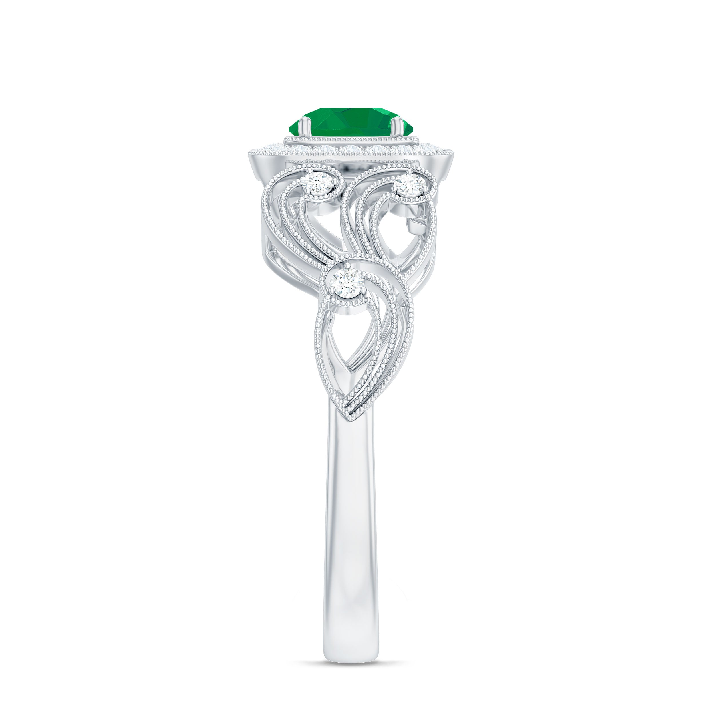 - Emerald Halo Engagement Rings: - Halo-style rings add a layer of shine and glamour to the overall appearance of the ring. These rings highlight the emerald gemstone a bit bigger due to the halo design.