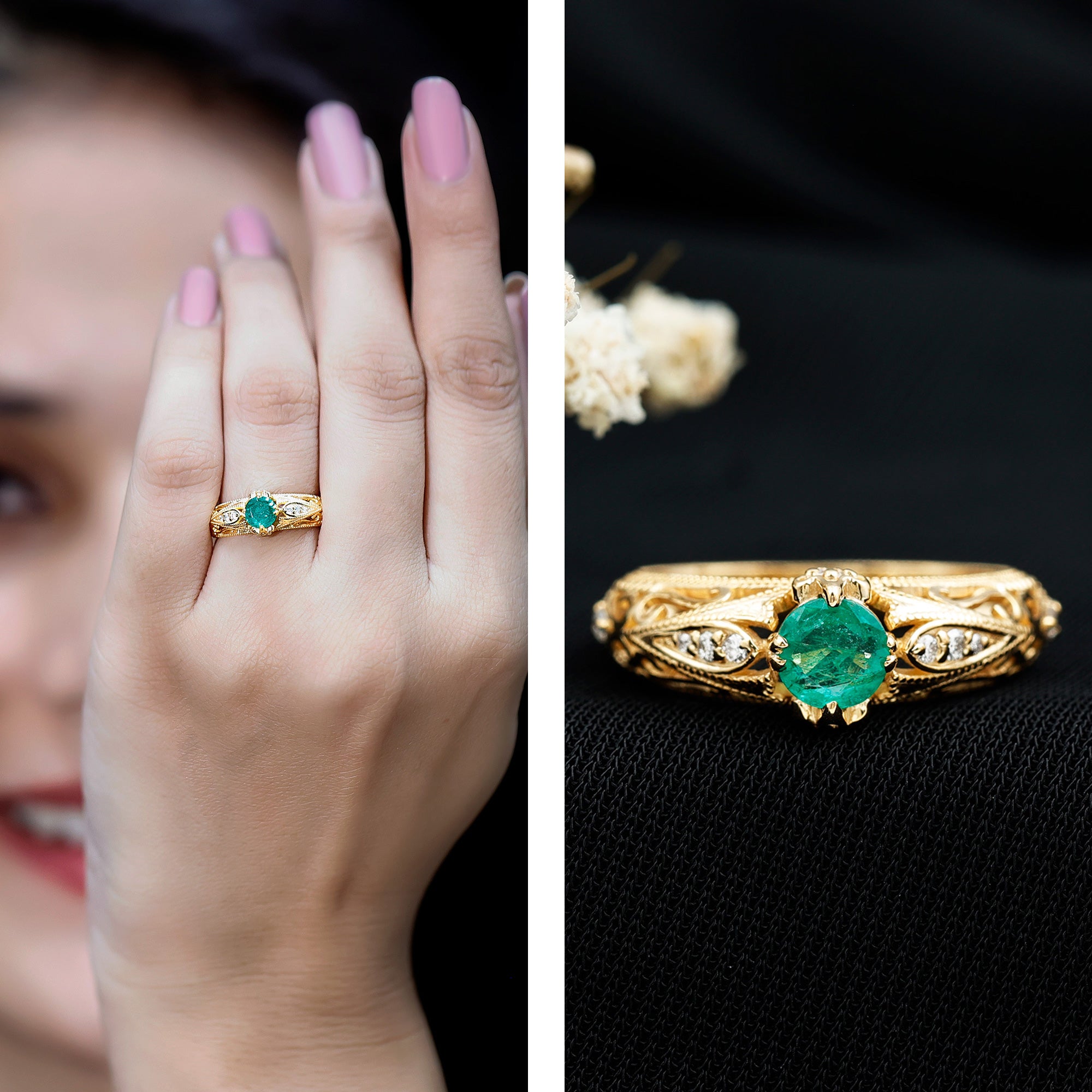 - Vintage Inspired Emerald Rings: - Stands out as antique and unique due to its nostalgic vibe. Our collection of vintage-inspired emerald rings merges the elements of Art Deco style, Victoria, and Edwardian design, making everlasting emerald jewelry.