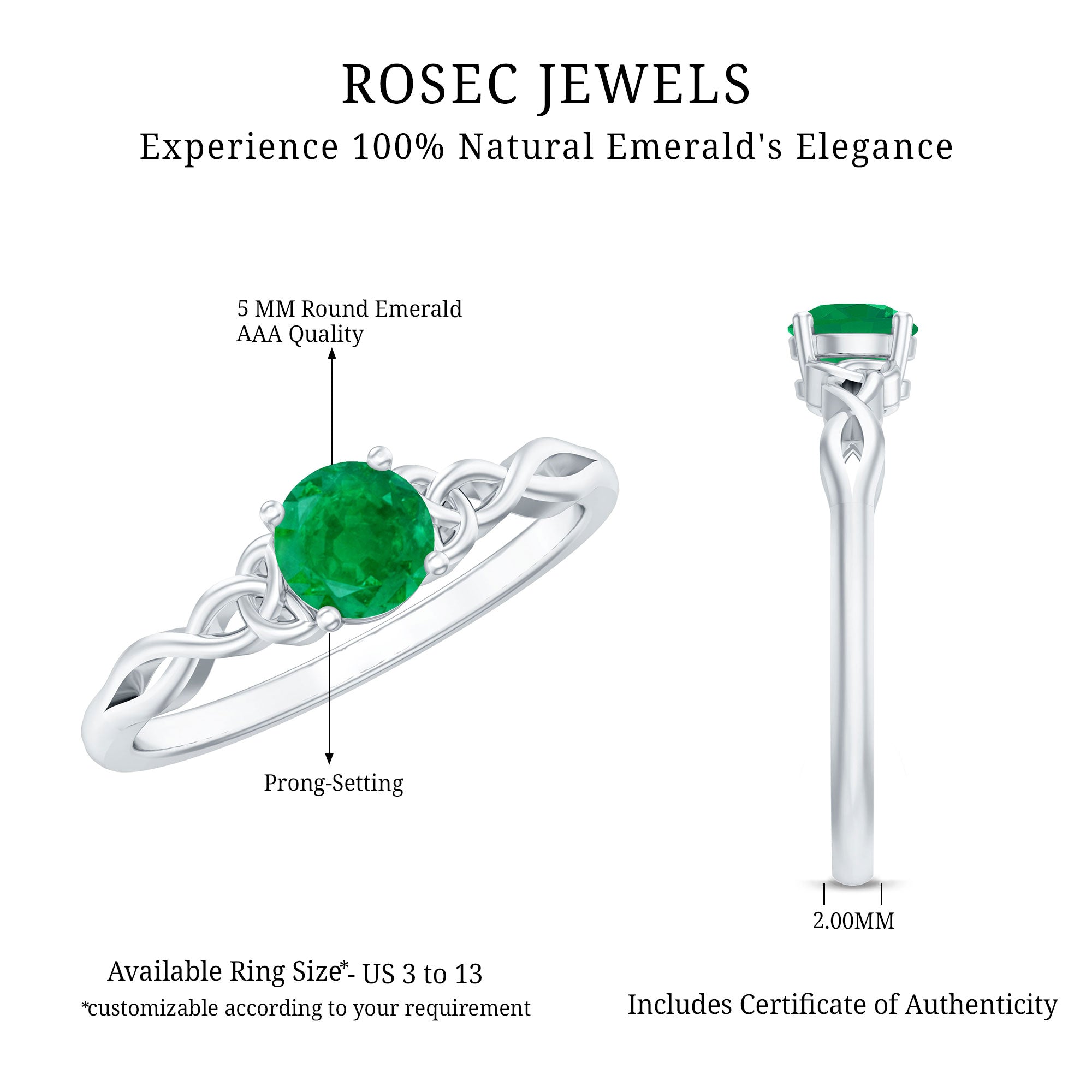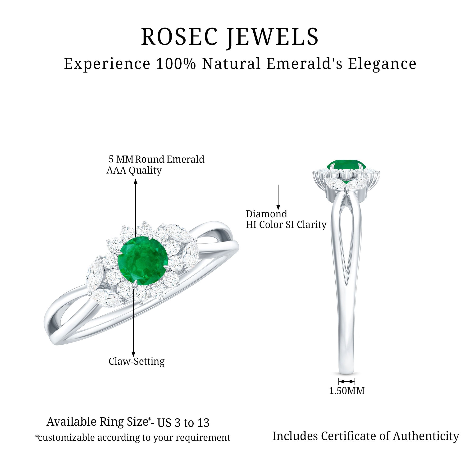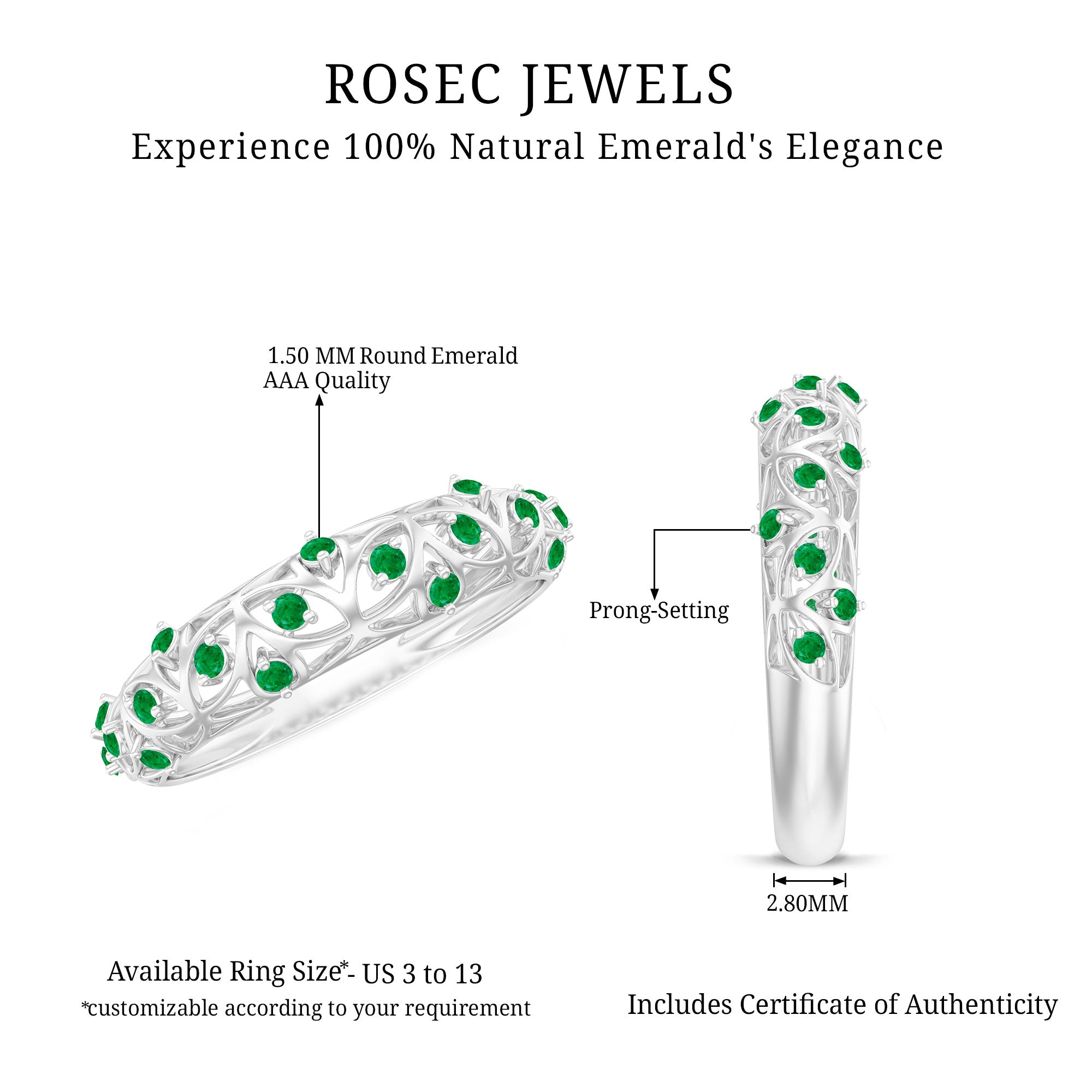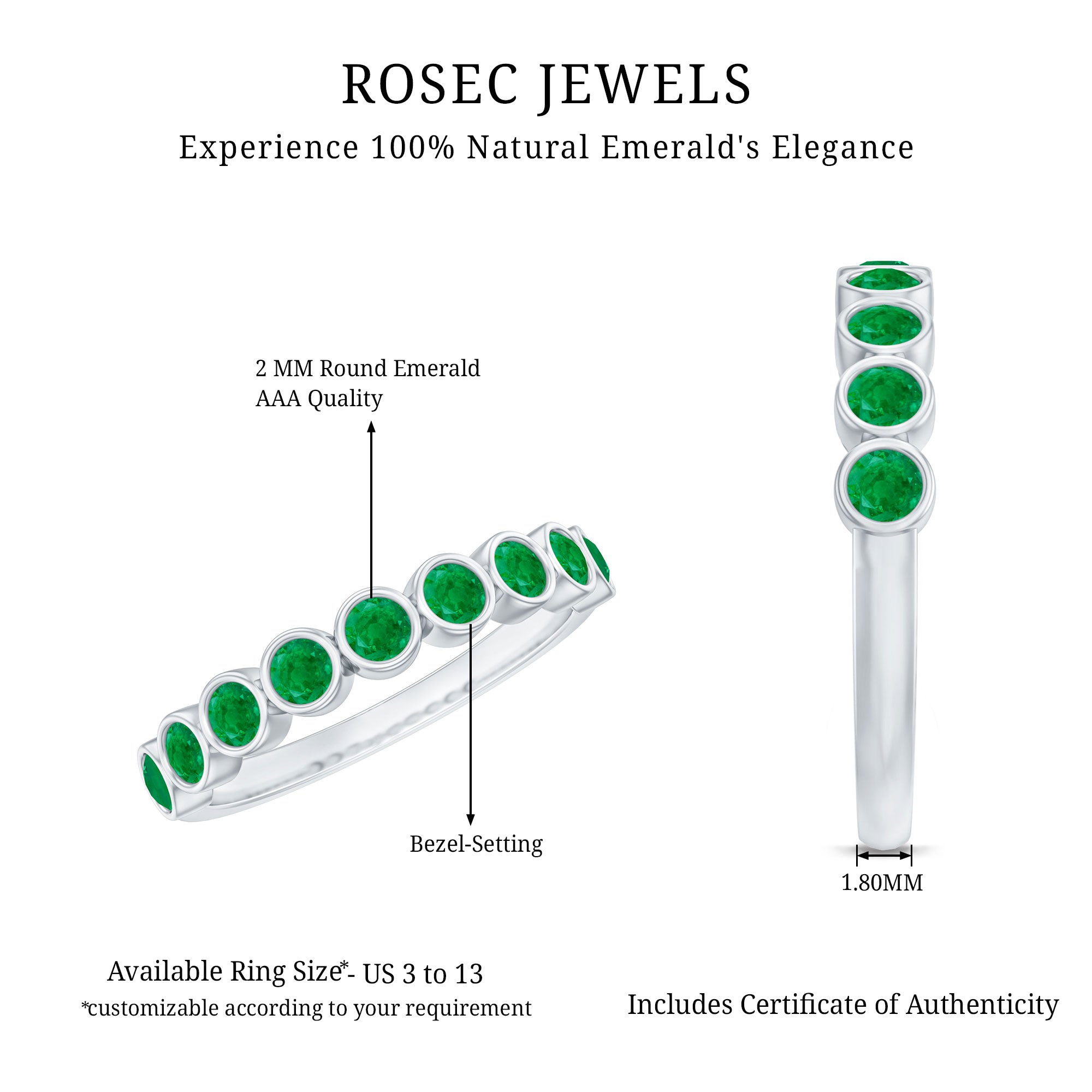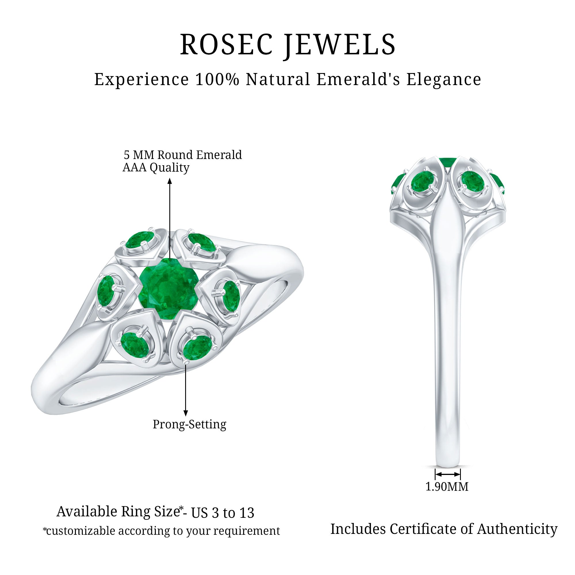 Rosec Jewels uses Genuine Emeralds in Rings