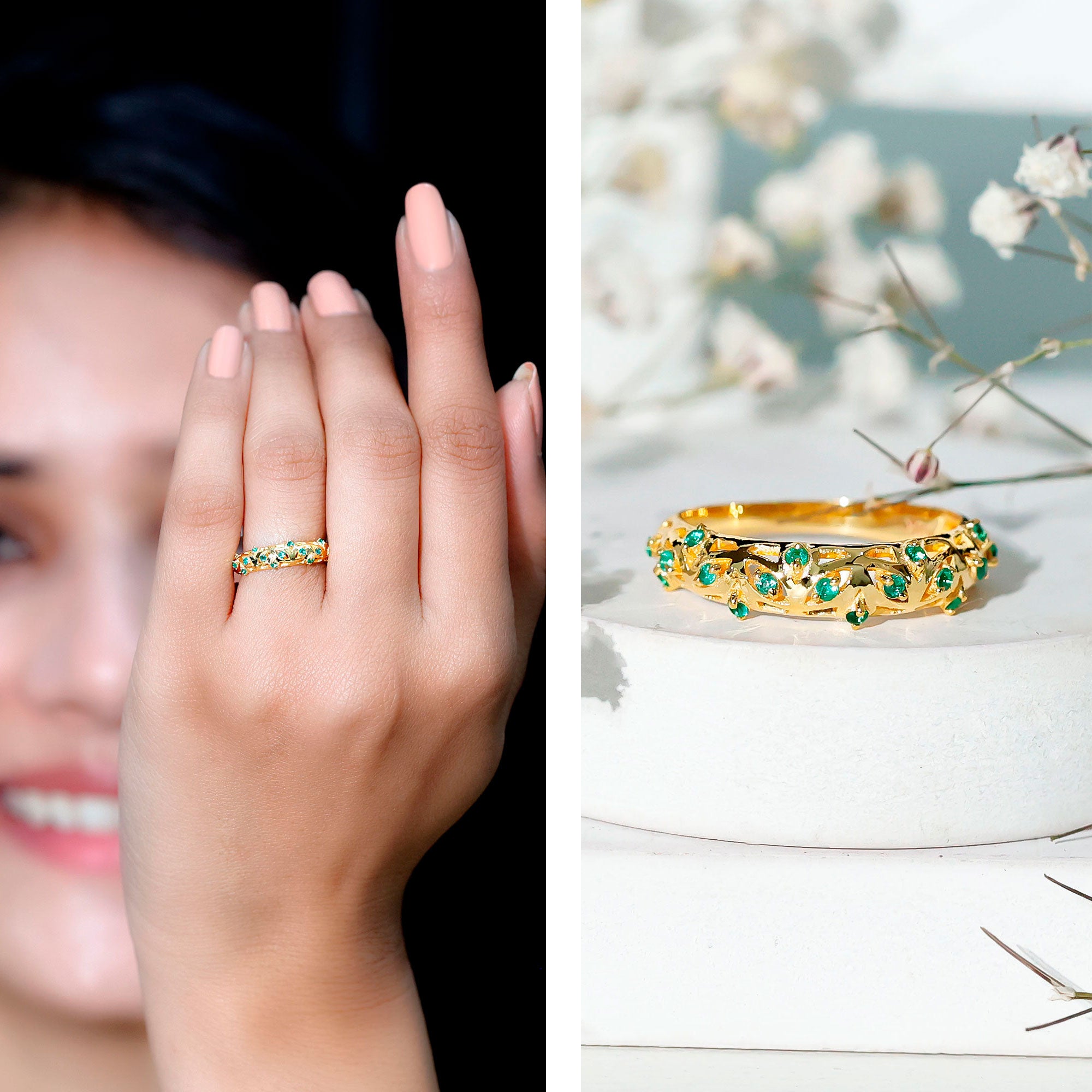 We ensure that the emeralds used in our ring are genuine. The emeralds are carefully selected for top-notch quality and authenticity. To offer customers real and high grade gemstones in their jewelry pieces.