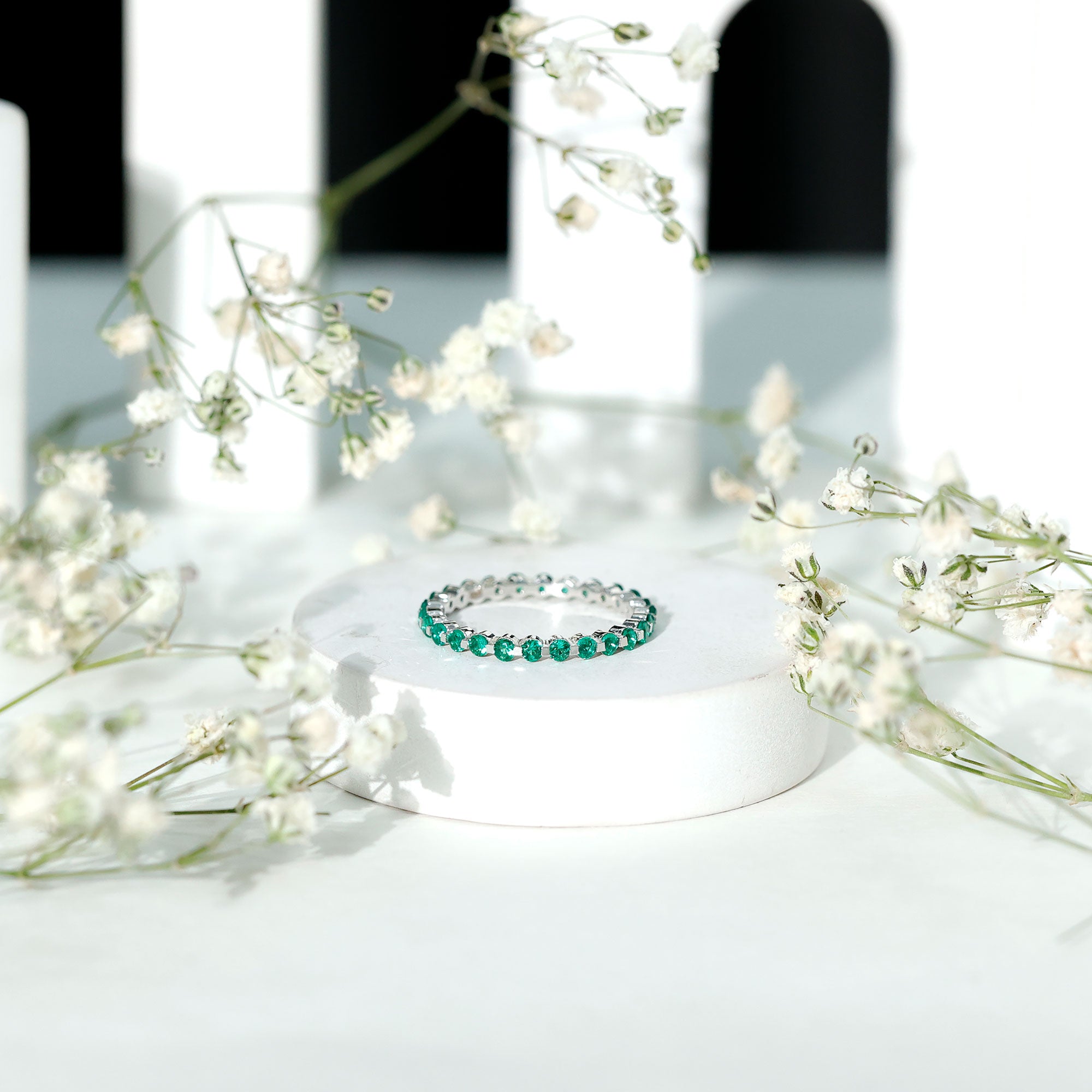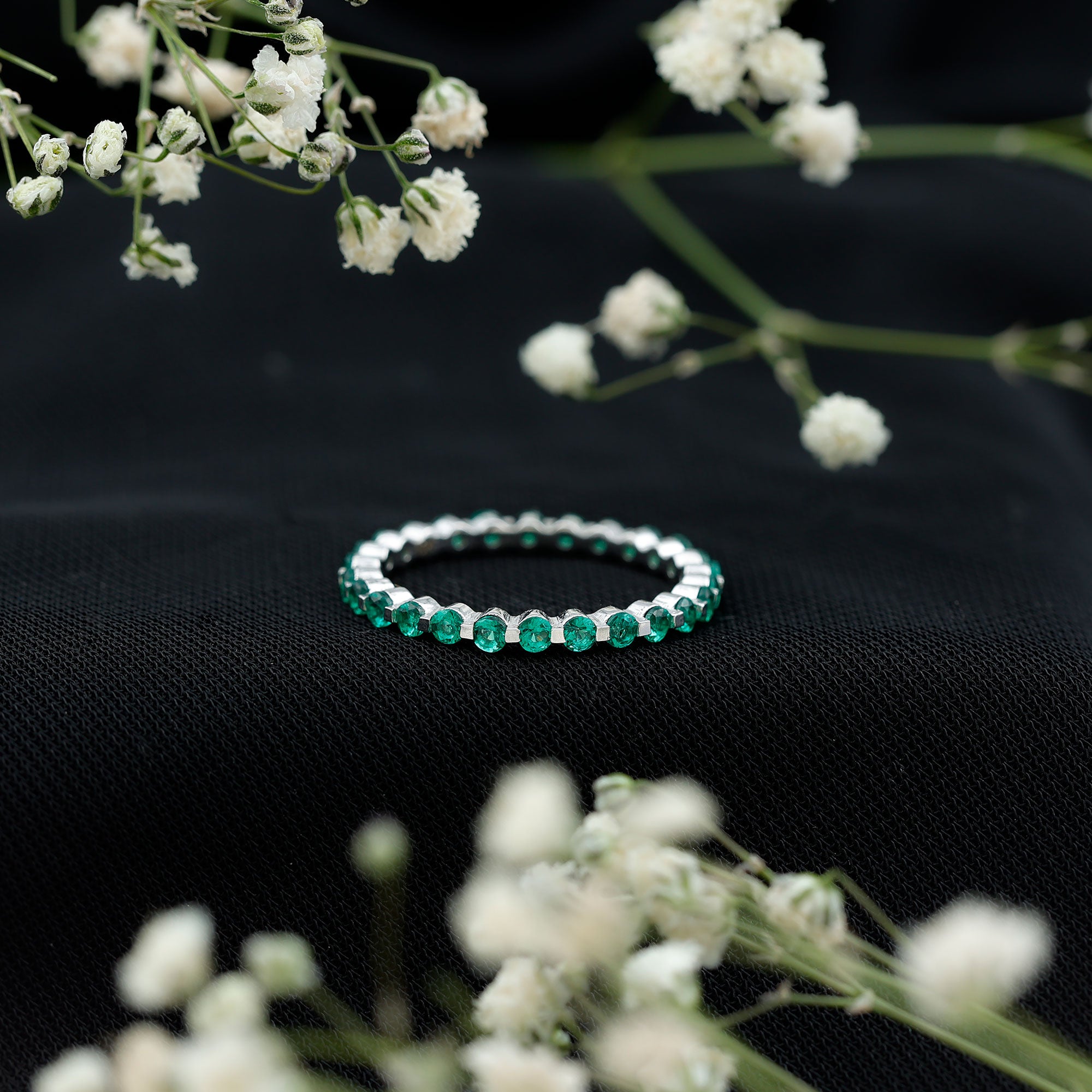 Emerald Eternity Rings: - Our elegant and dazzling emerald eternity rings feature rich emeralds encircling the whole band. These rings symbolize enduring love and passion. The unbroken circle of emerald gemstones signifies an unbreakable connection and commitment. Emerald rings represent harmony and renewal, making them ideal for couples wanting to build lasting connections with each other.