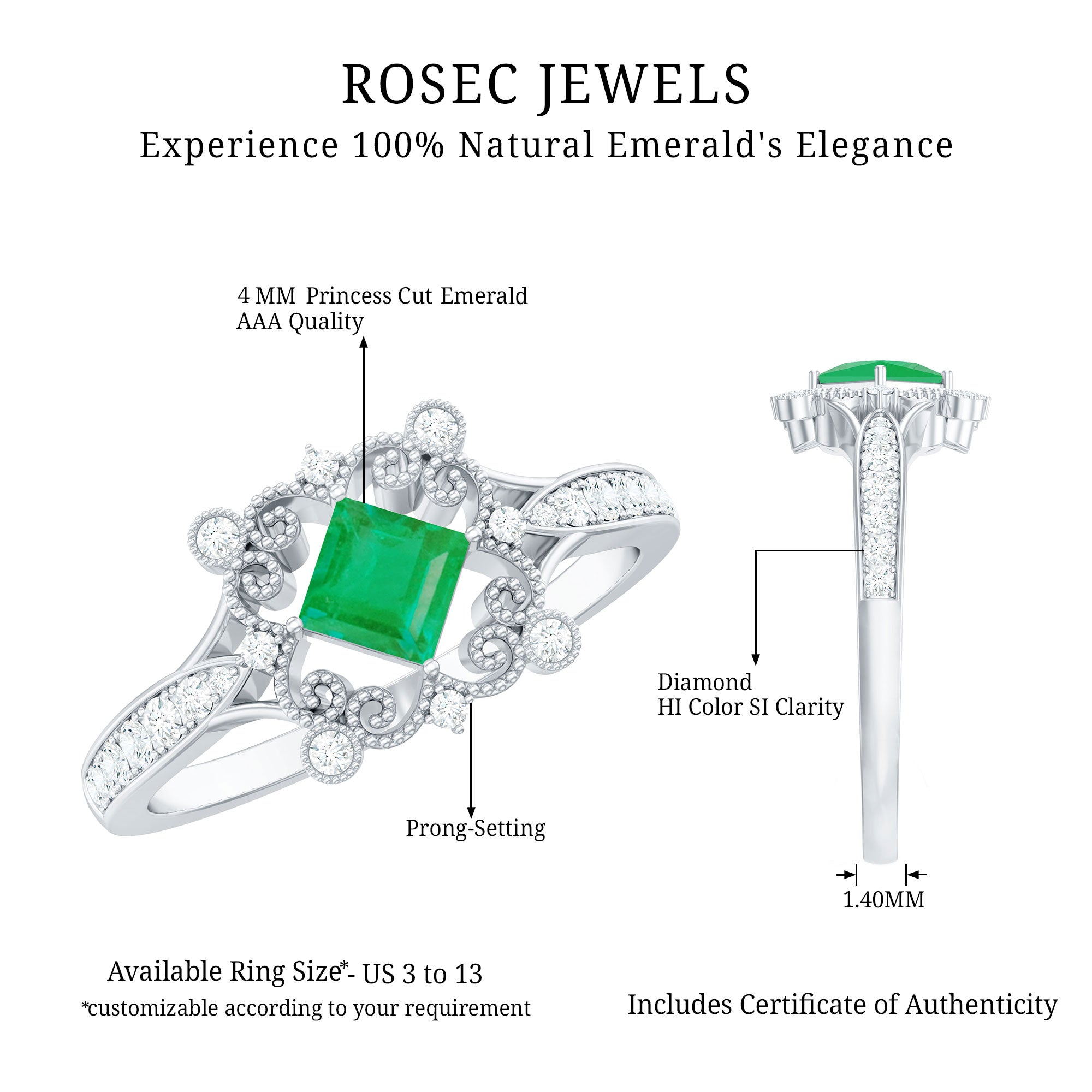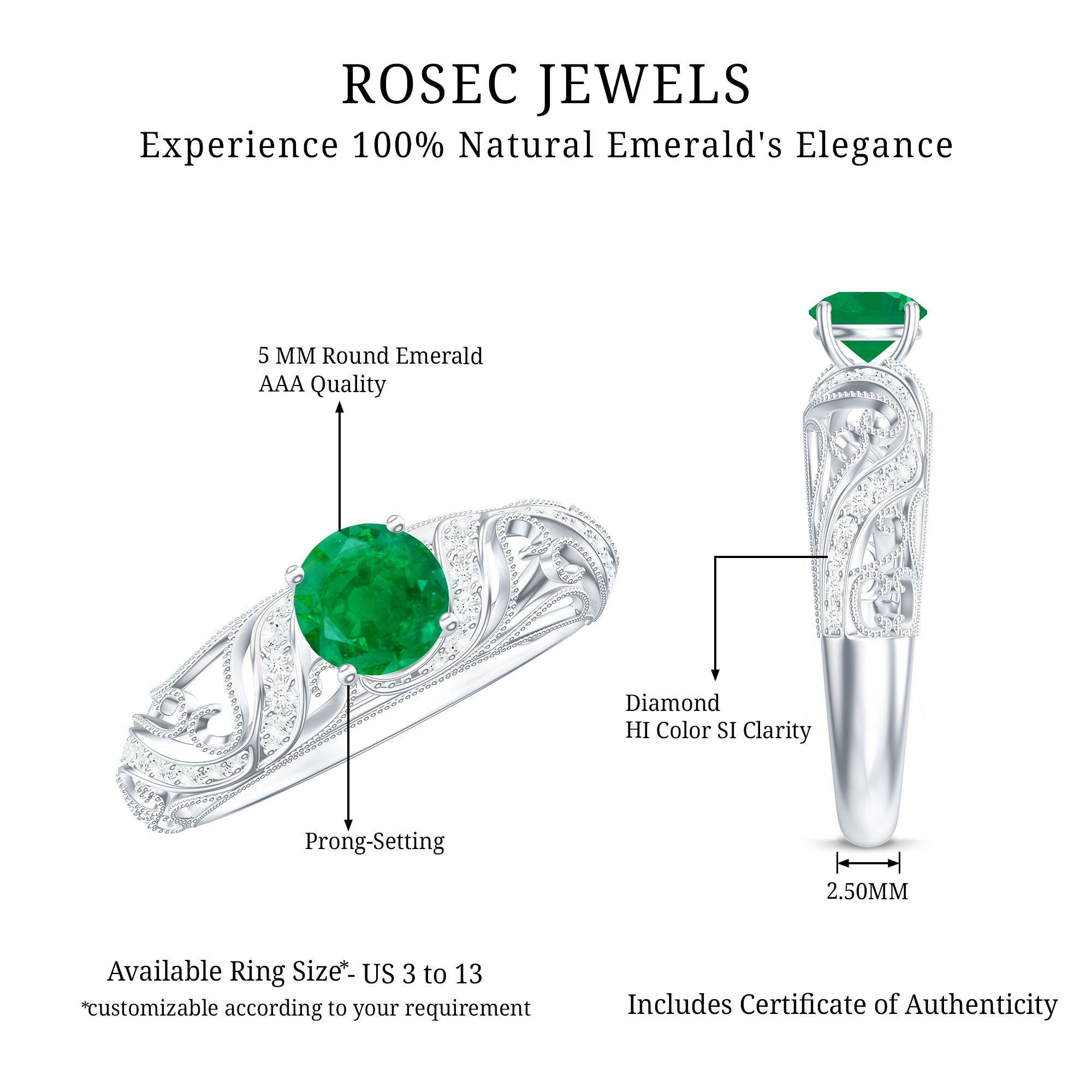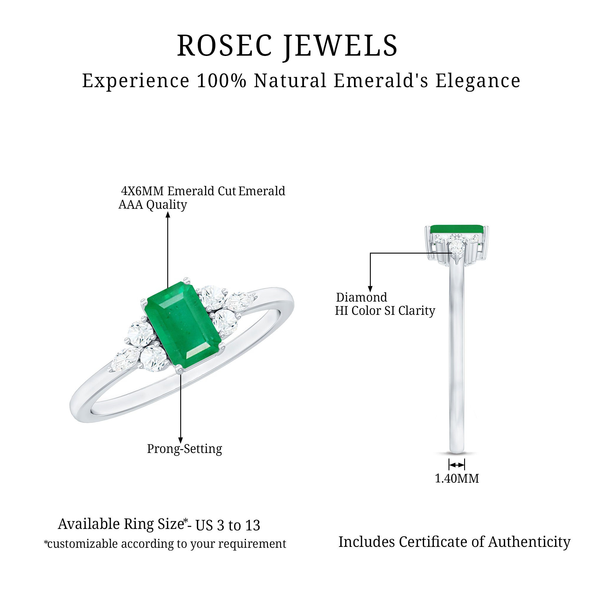 Rosec Jewels uses Genuine Emeralds in Rings