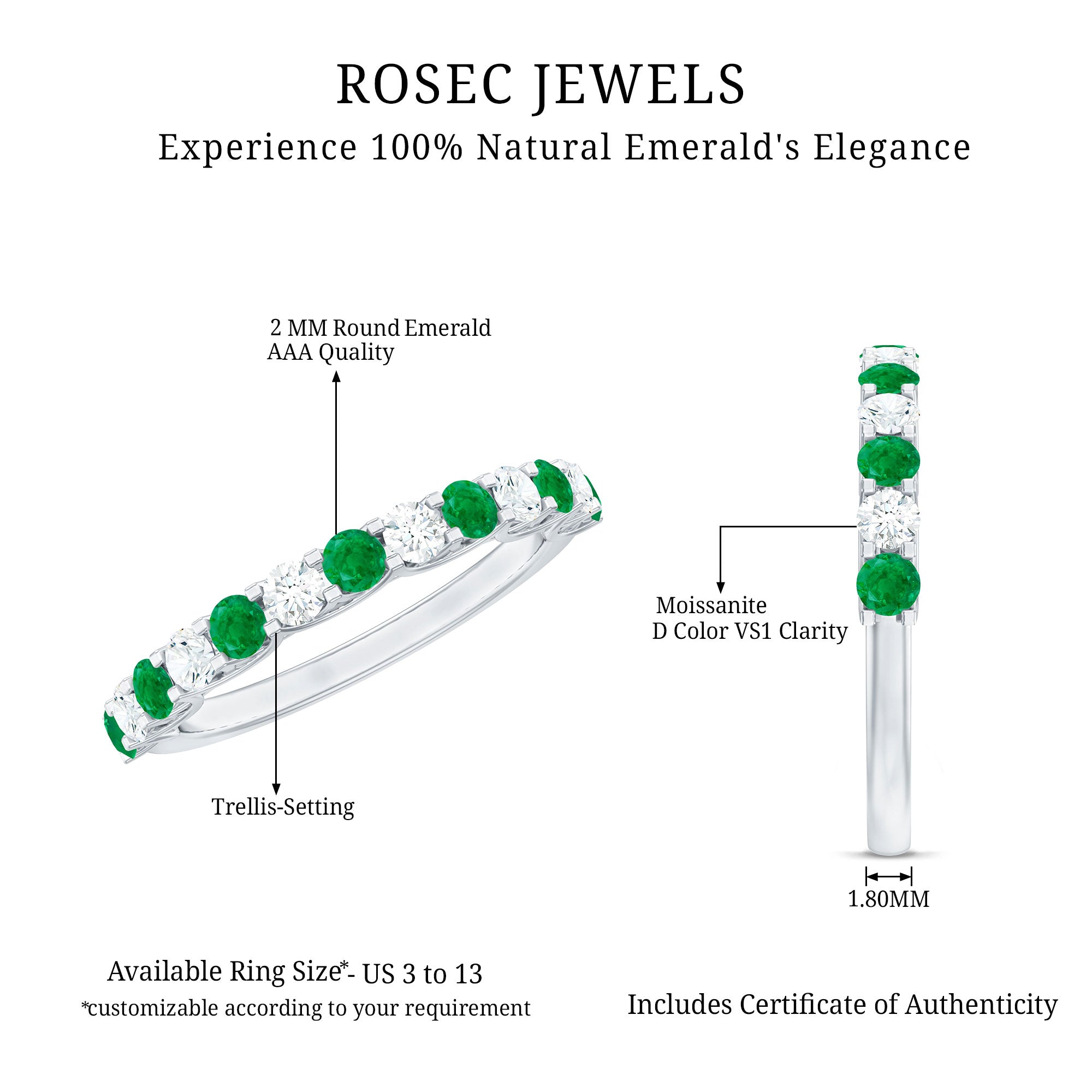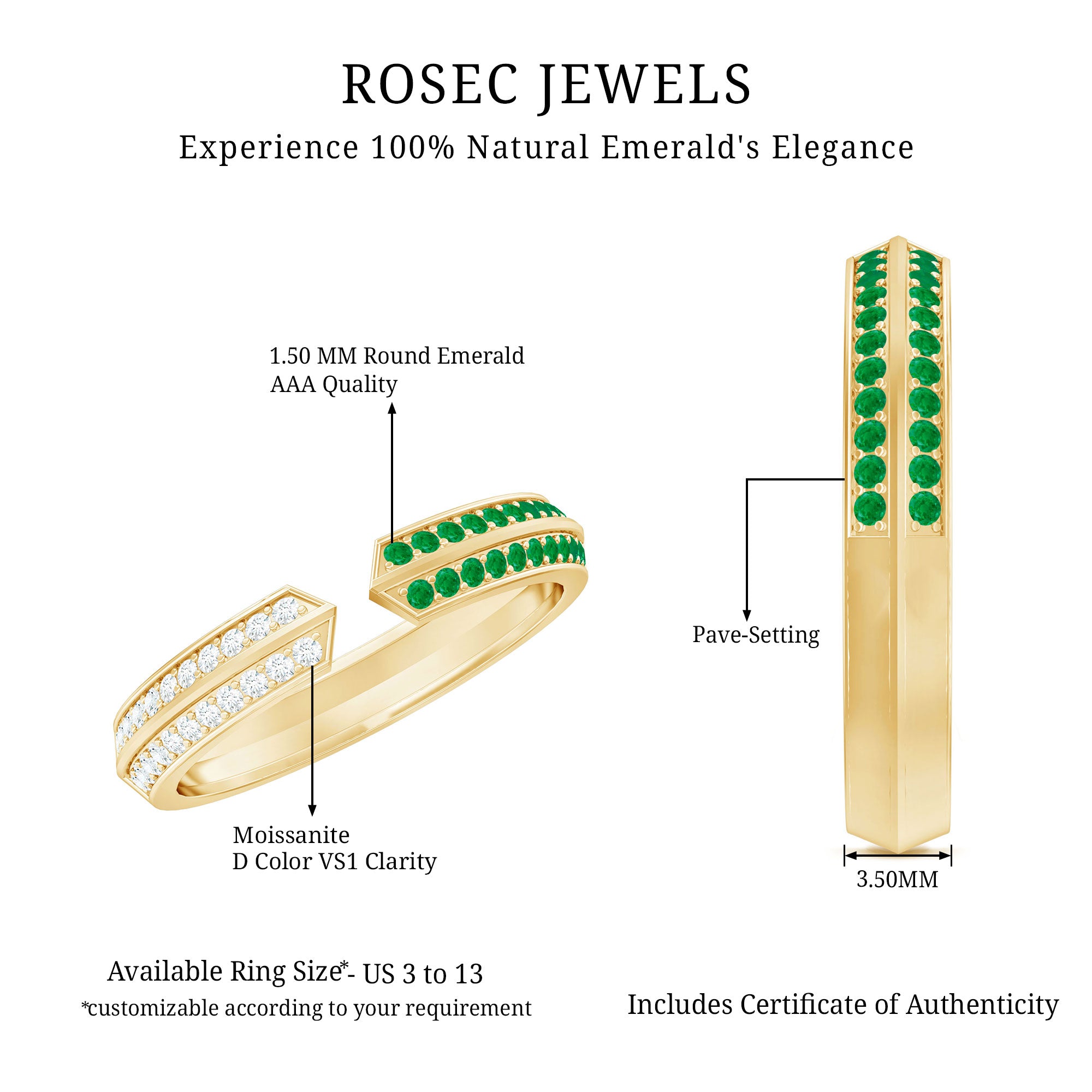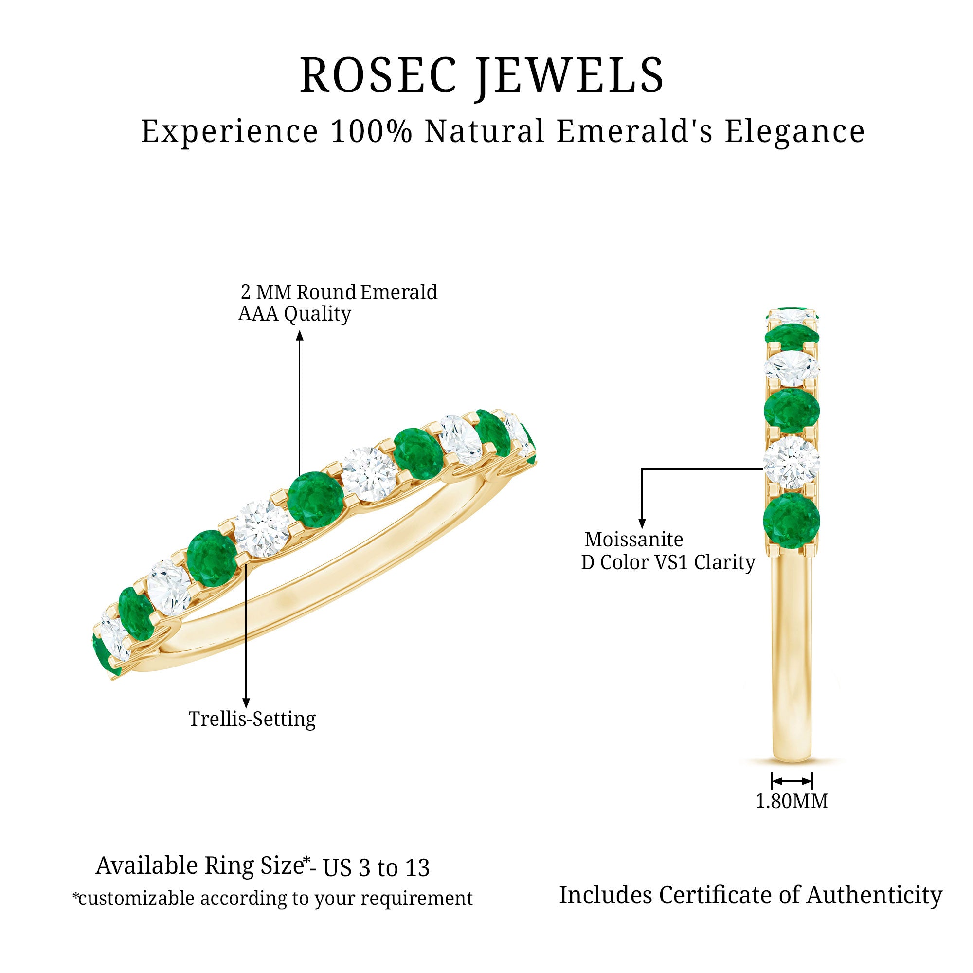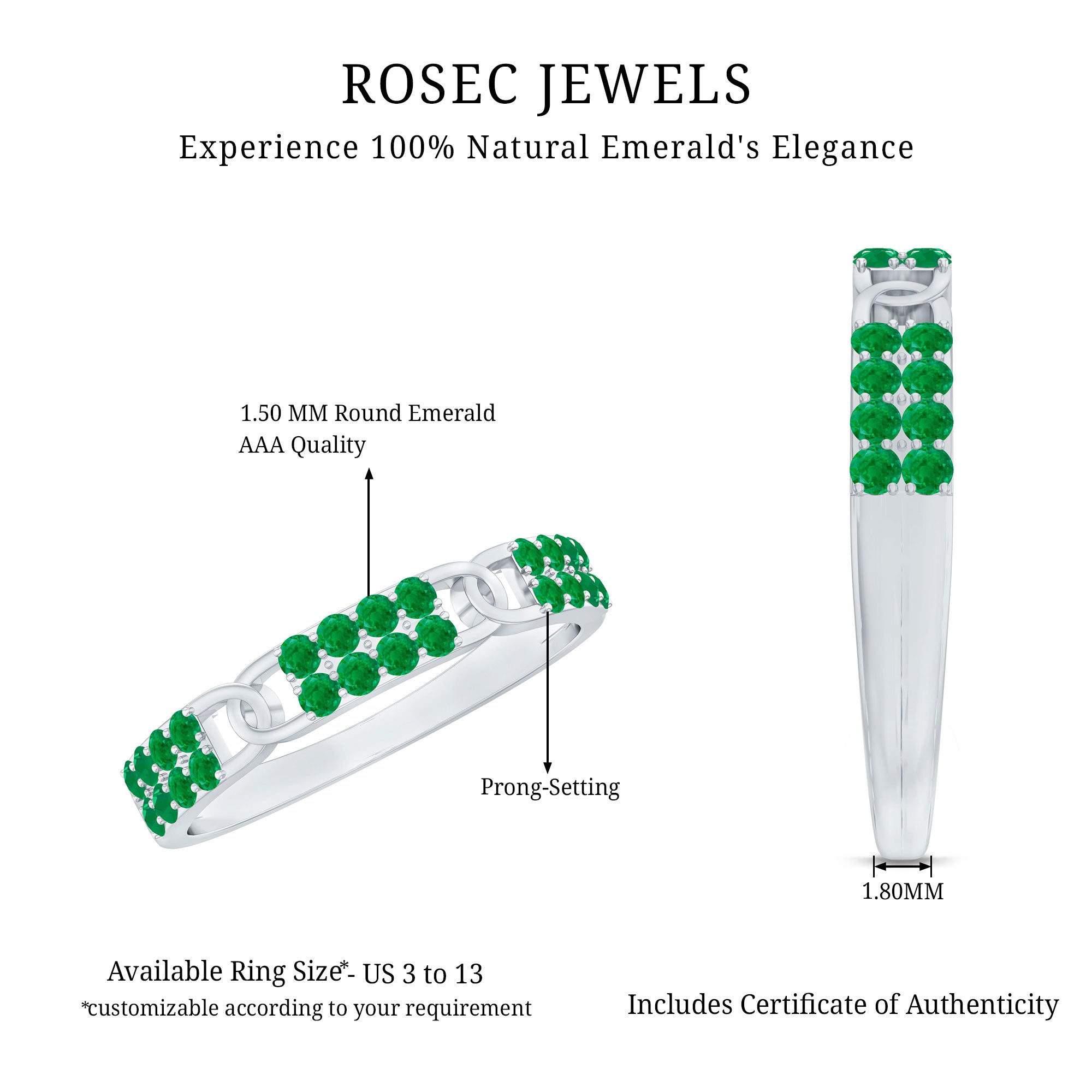Rosec Jewels uses Genuine Emeralds in Rings