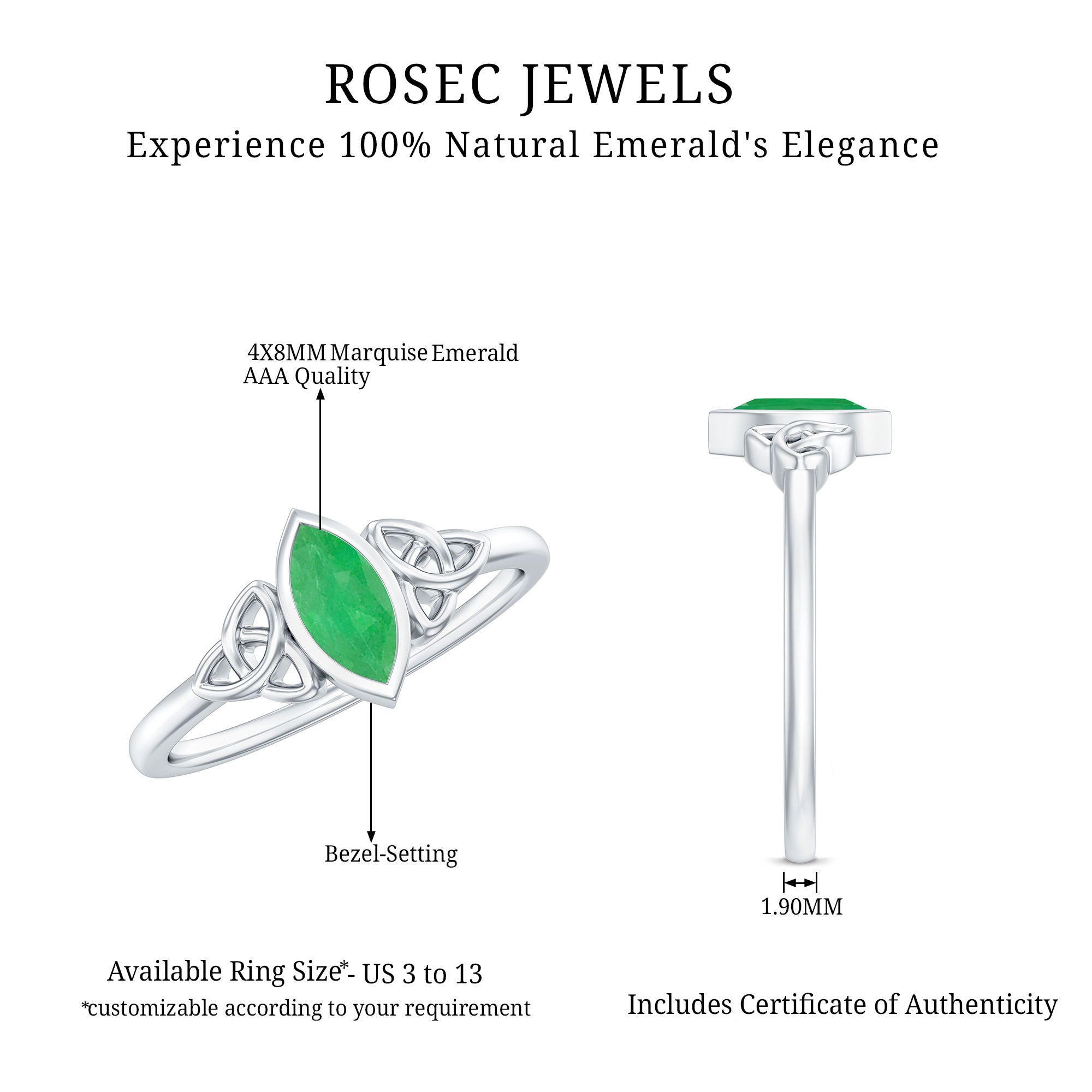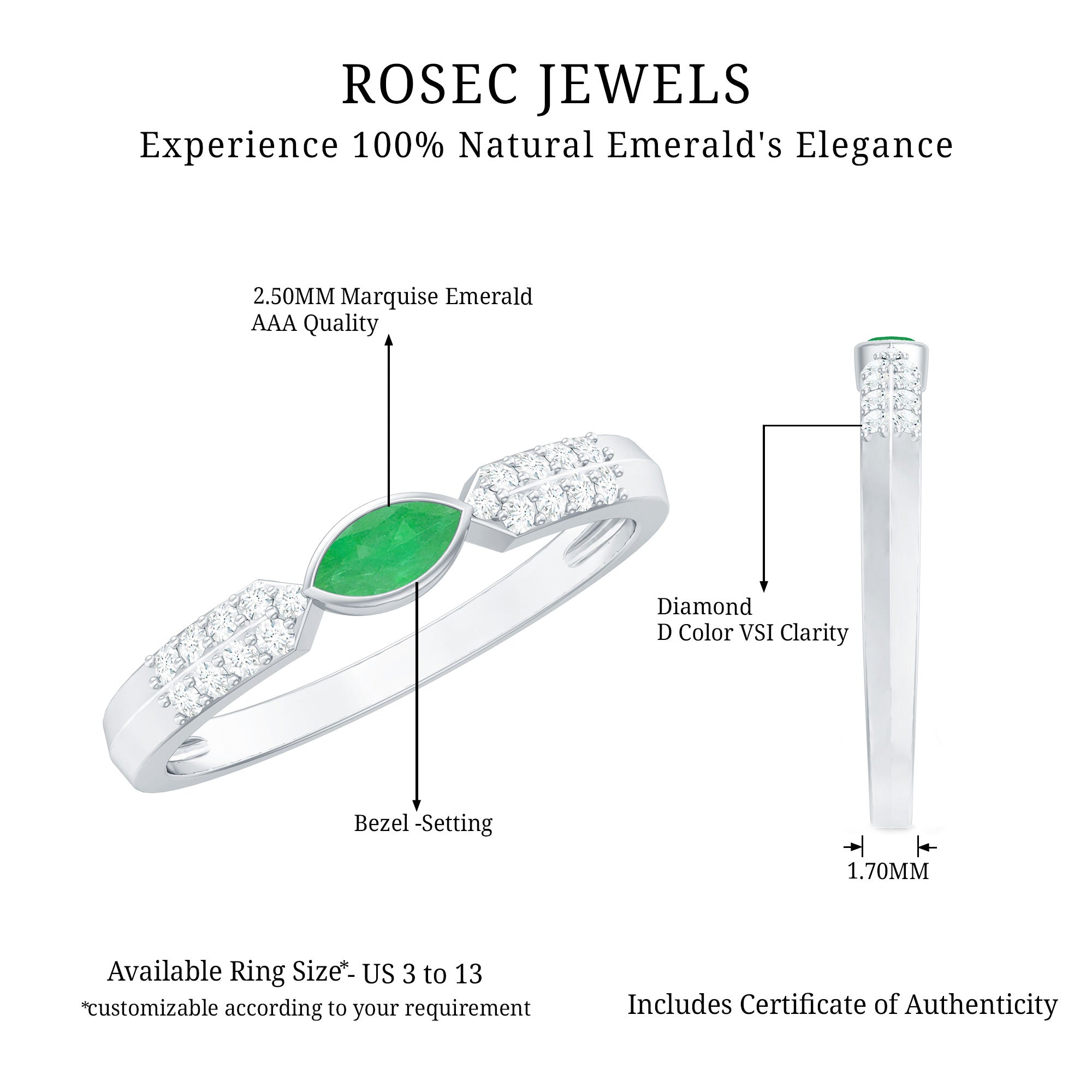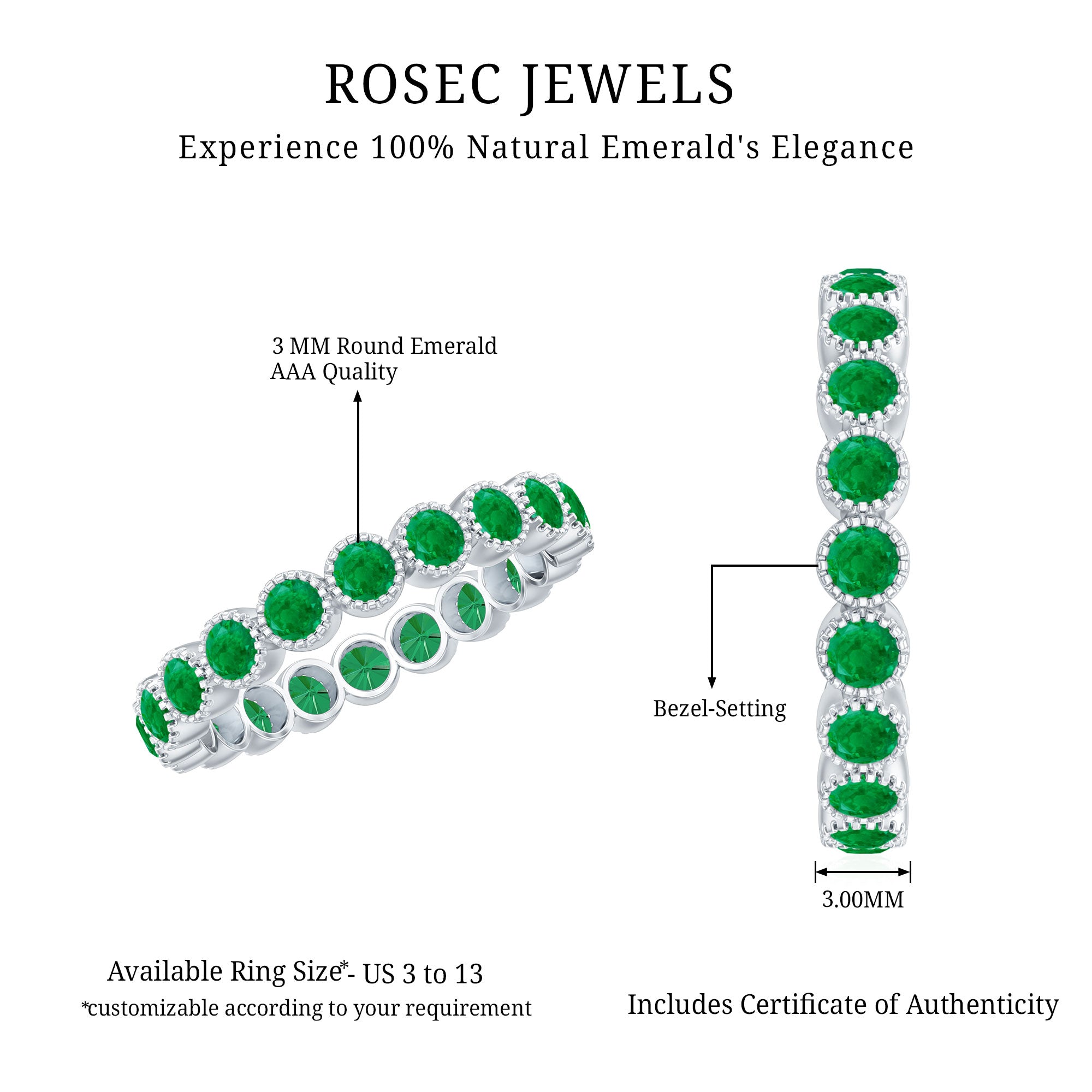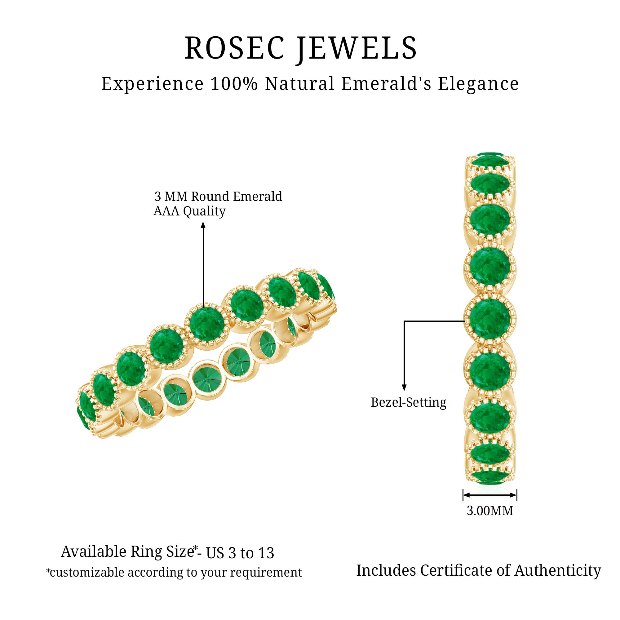 Rosec Jewels uses Genuine Emeralds in Rings