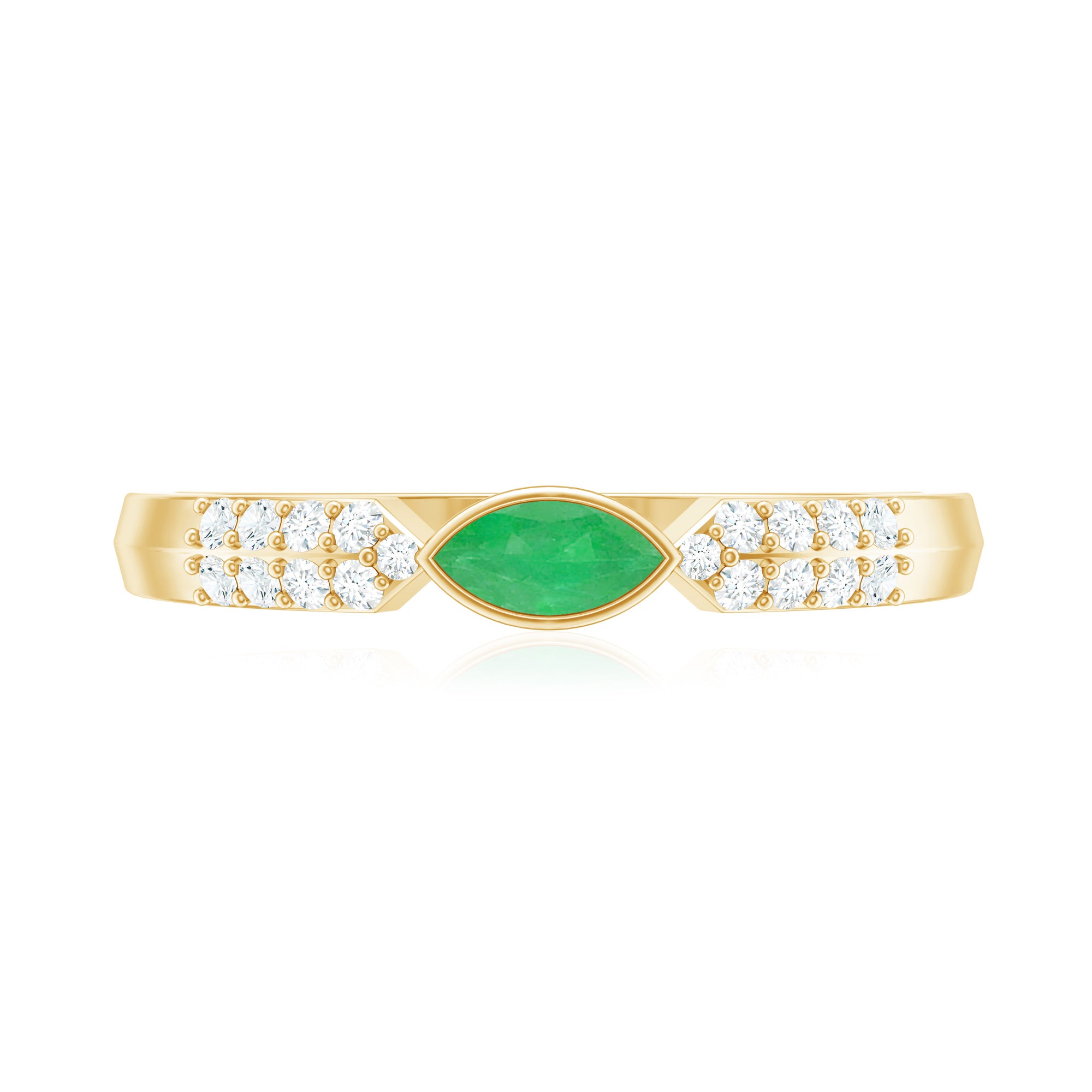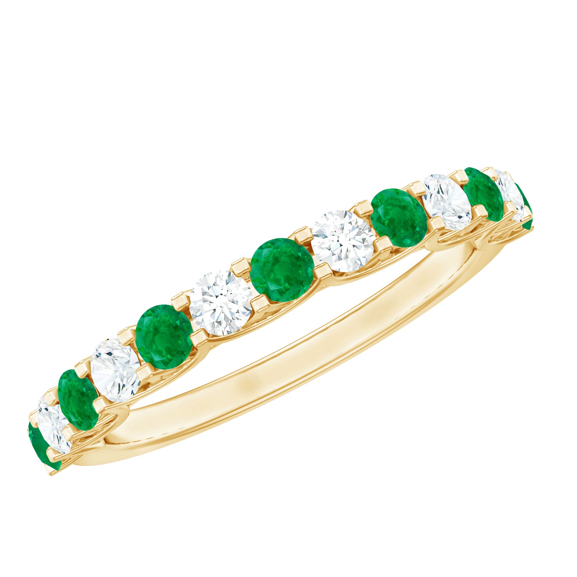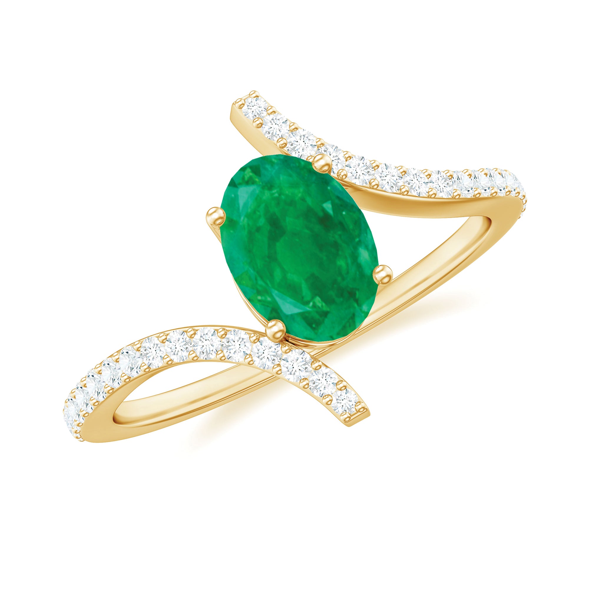 Emerald promise rings: - Symbolize love, loyalty, and commitment. They are beautiful and represent lasting love. Craft each piece with white gold or yellow gold metal and give it as a promising token to your partners. The emerald ring's intense and vibrant color adds elegance and significant meaning to the heartfelt gesture.