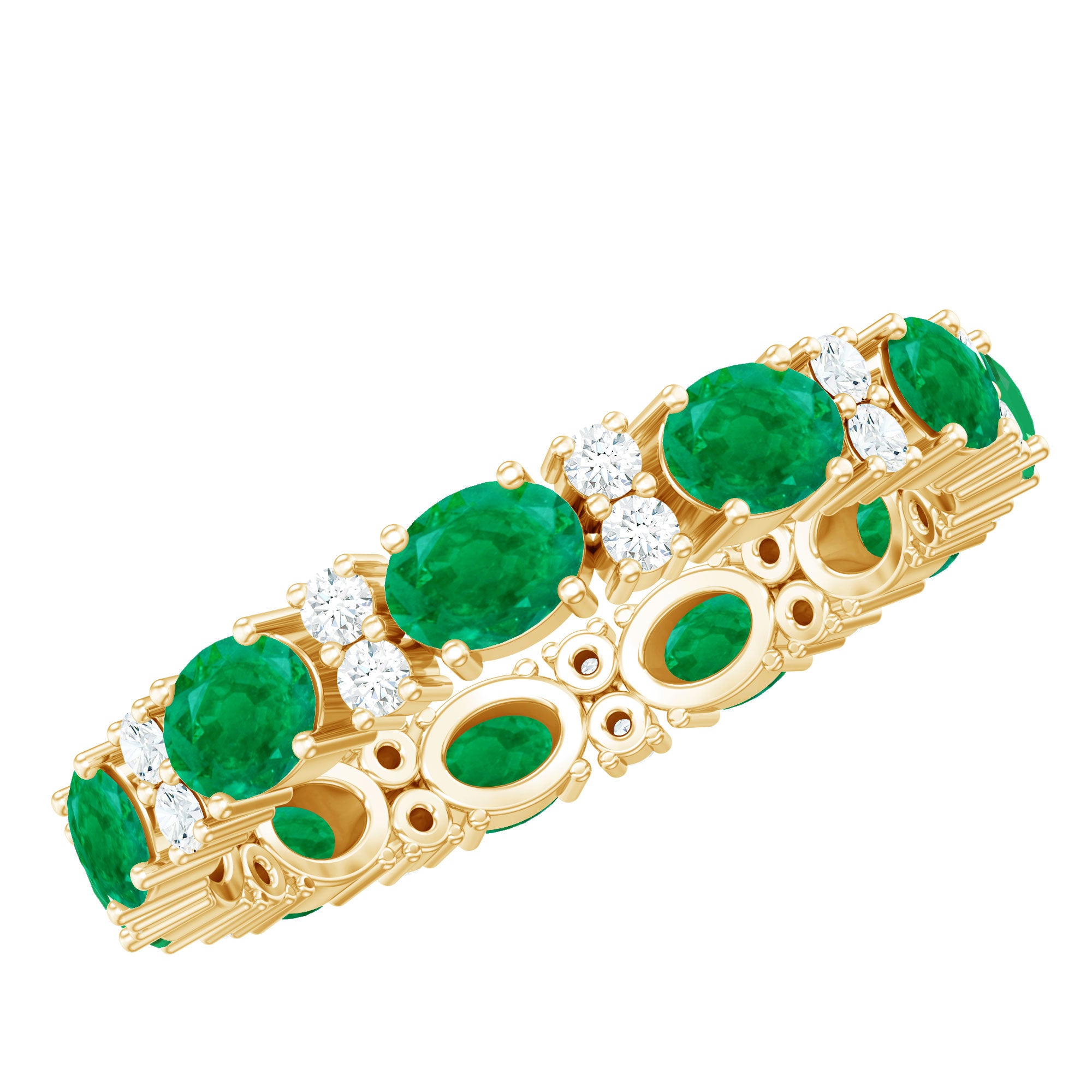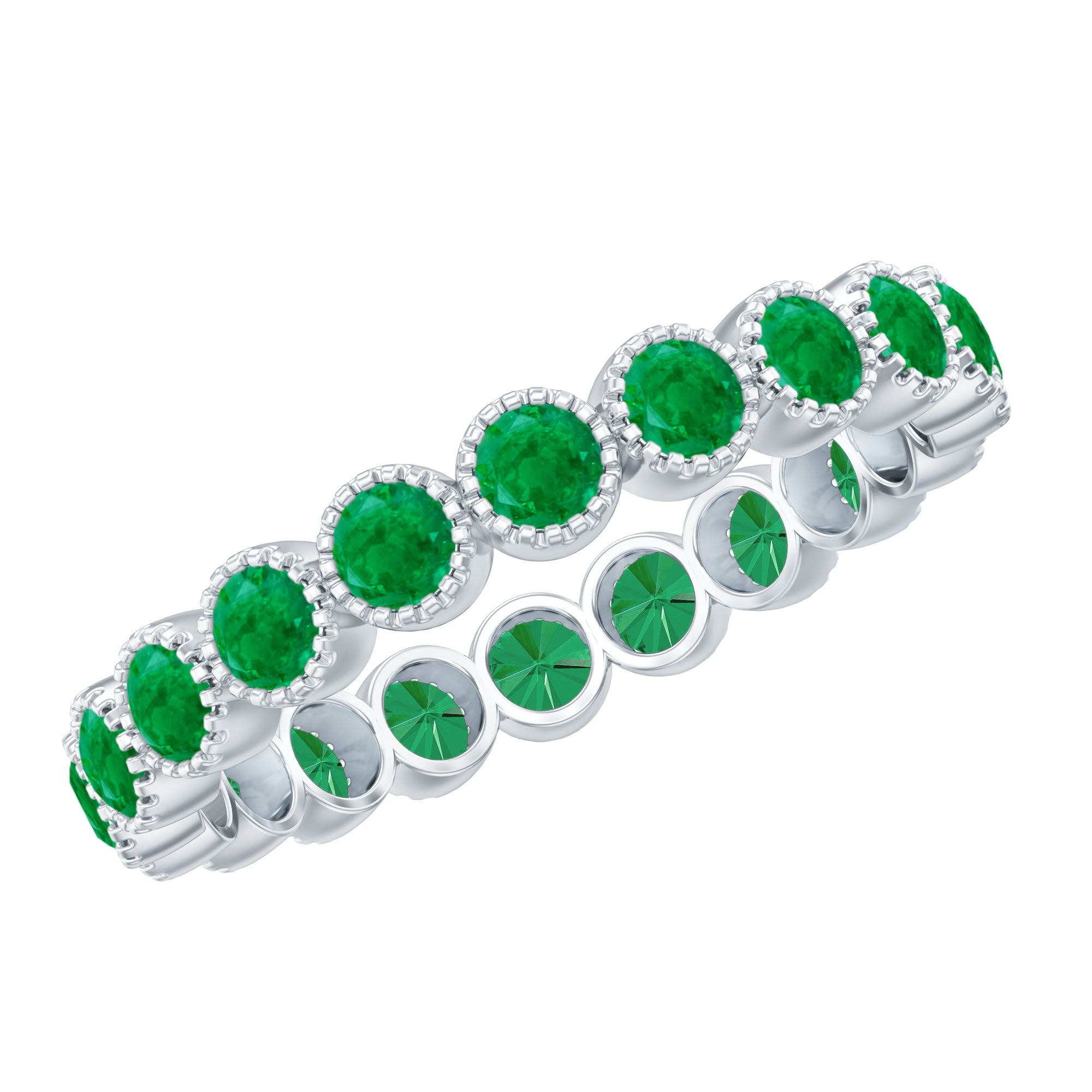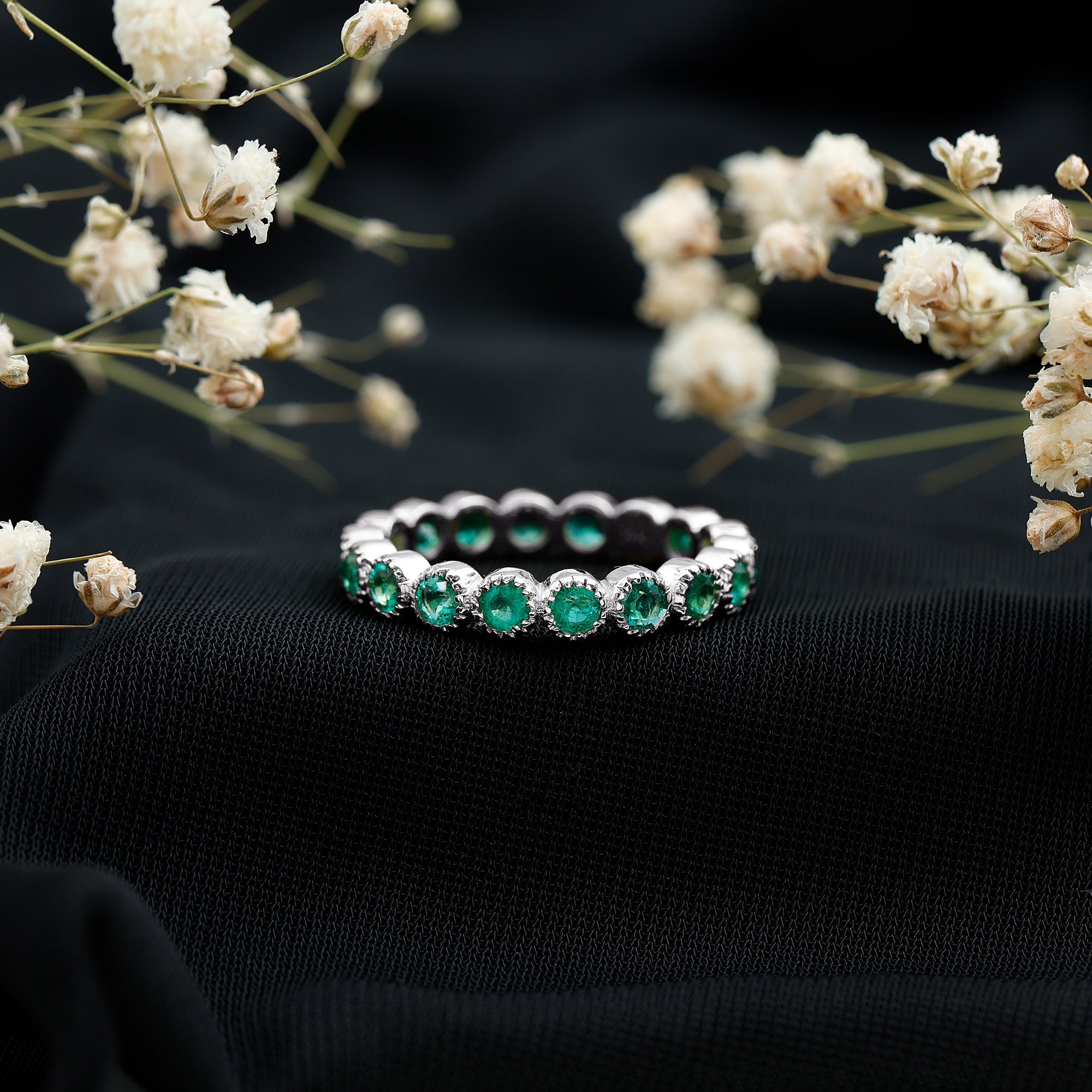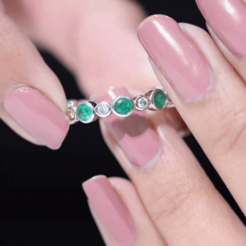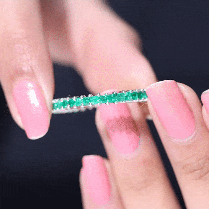 Emerald Eternity Rings: - Our elegant and dazzling emerald eternity rings feature rich emeralds encircling the whole band. These rings symbolize enduring love and passion. The unbroken circle of emerald gemstones signifies an unbreakable connection and commitment. Emerald rings represent harmony and renewal, making them ideal for couples wanting to build lasting connections with each other.