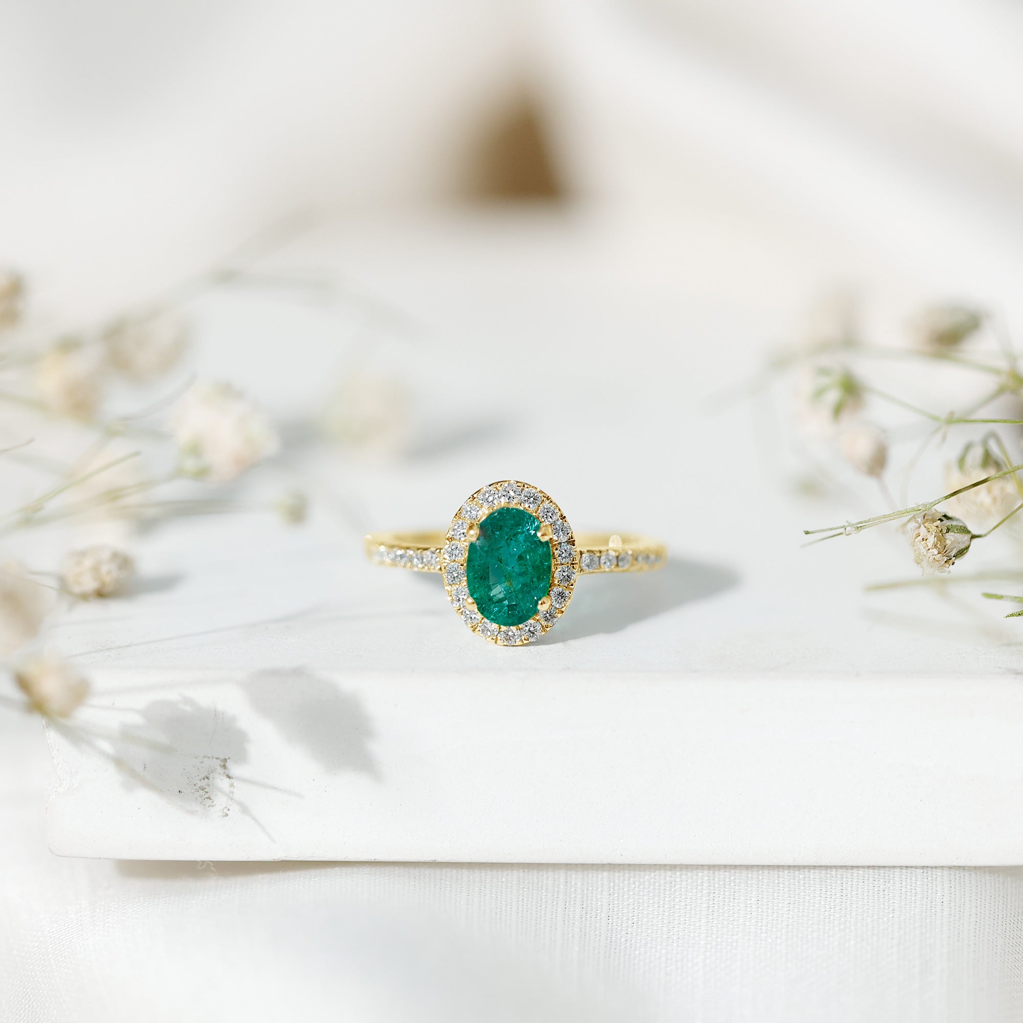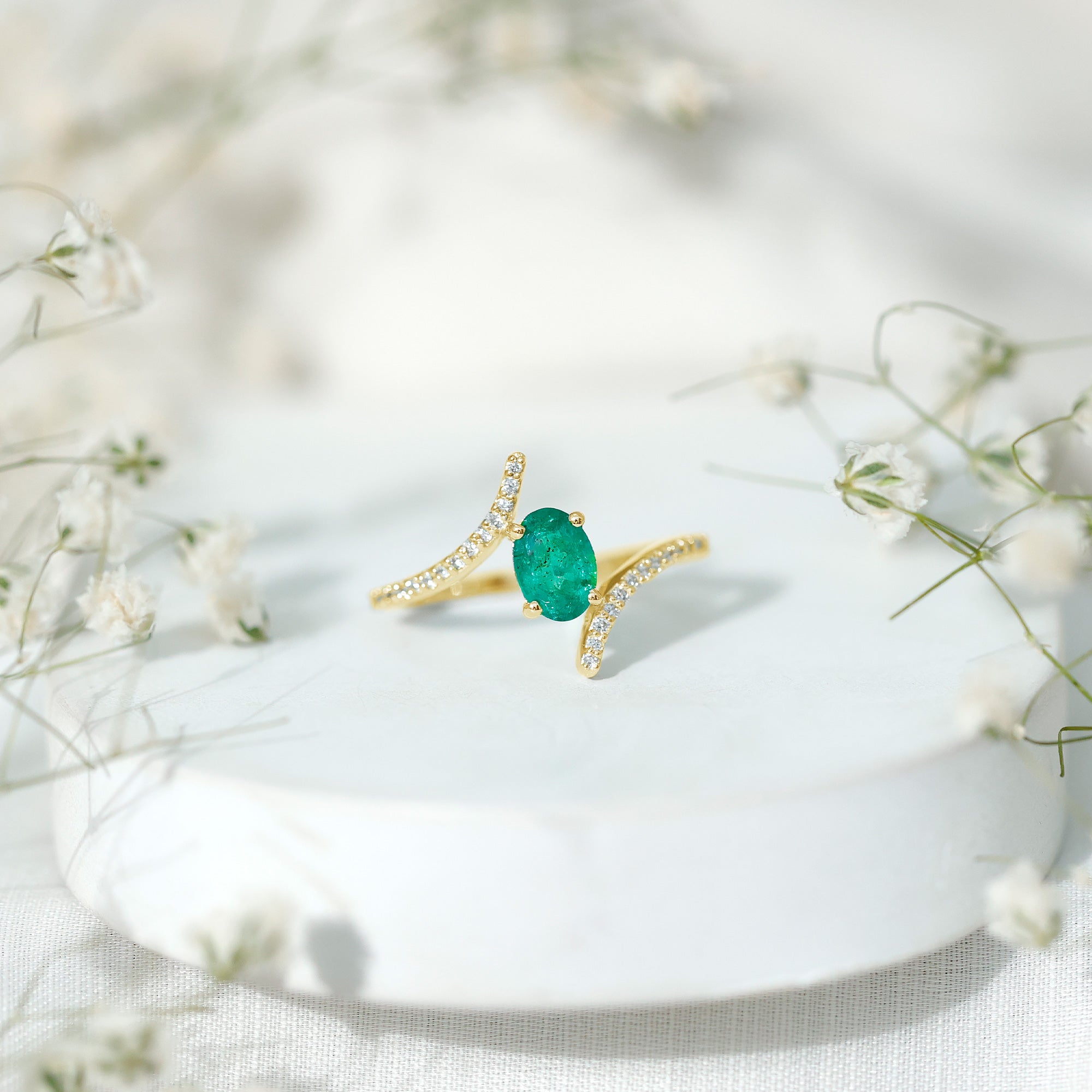 Emeralds have a Mohs hardness rating of 7.5 to 8. Making it an incredibly durable choice. Choose a ring setting that offers overall protection to the emerald gemstone.