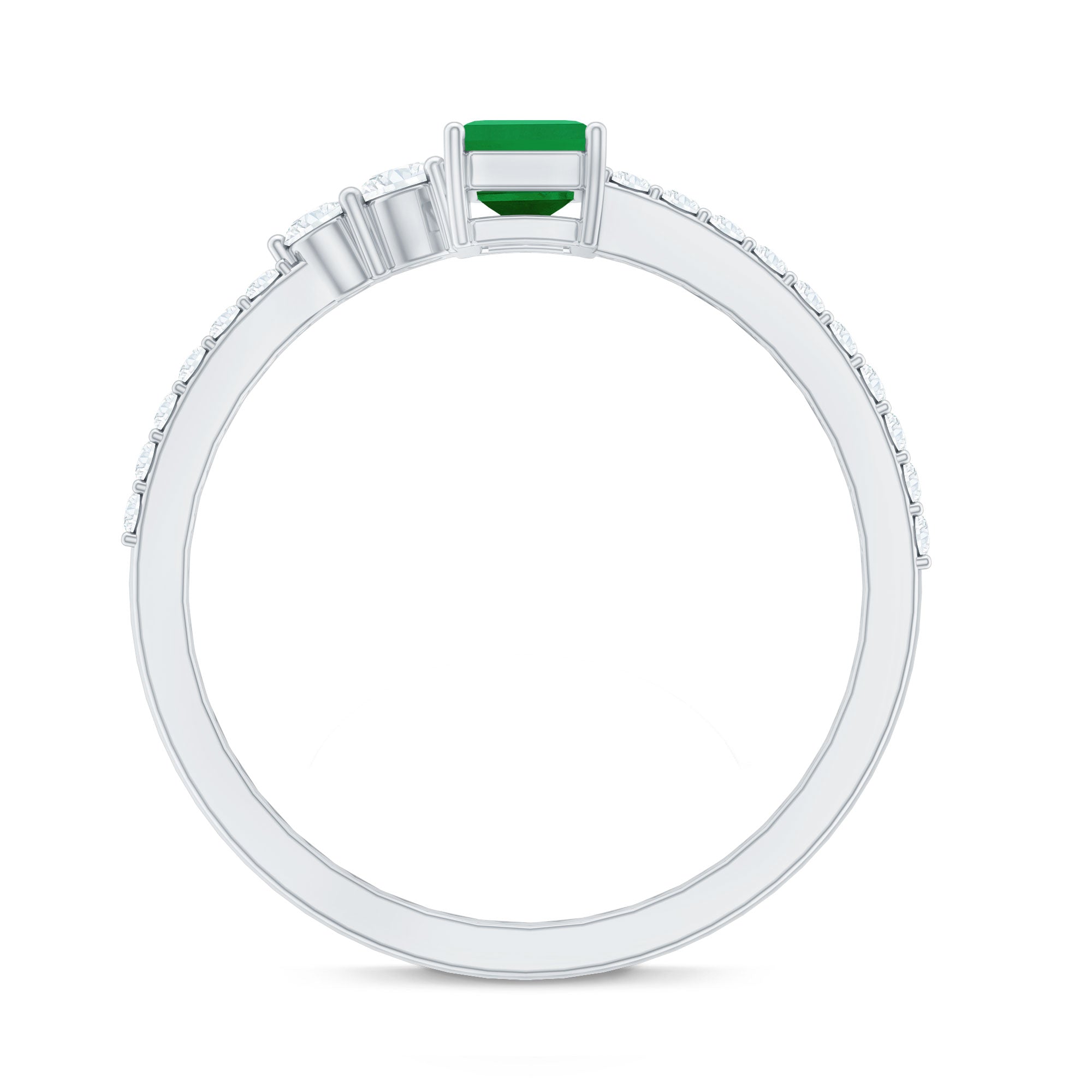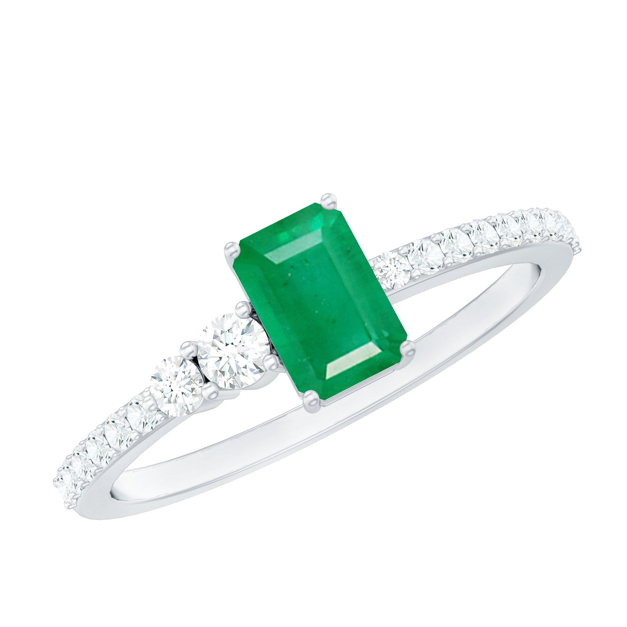 Emerald promise rings: - Symbolize love, loyalty, and commitment. They are beautiful and represent lasting love. Craft each piece with white gold or yellow gold metal and give it as a promising token to your partners. The emerald ring's intense and vibrant color adds elegance and significant meaning to the heartfelt gesture.