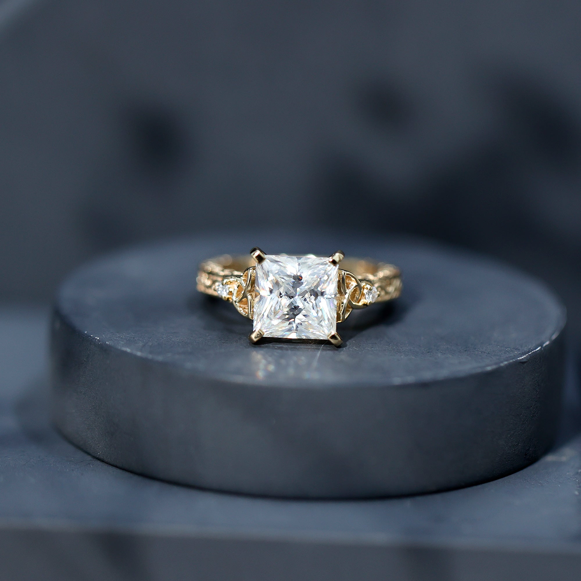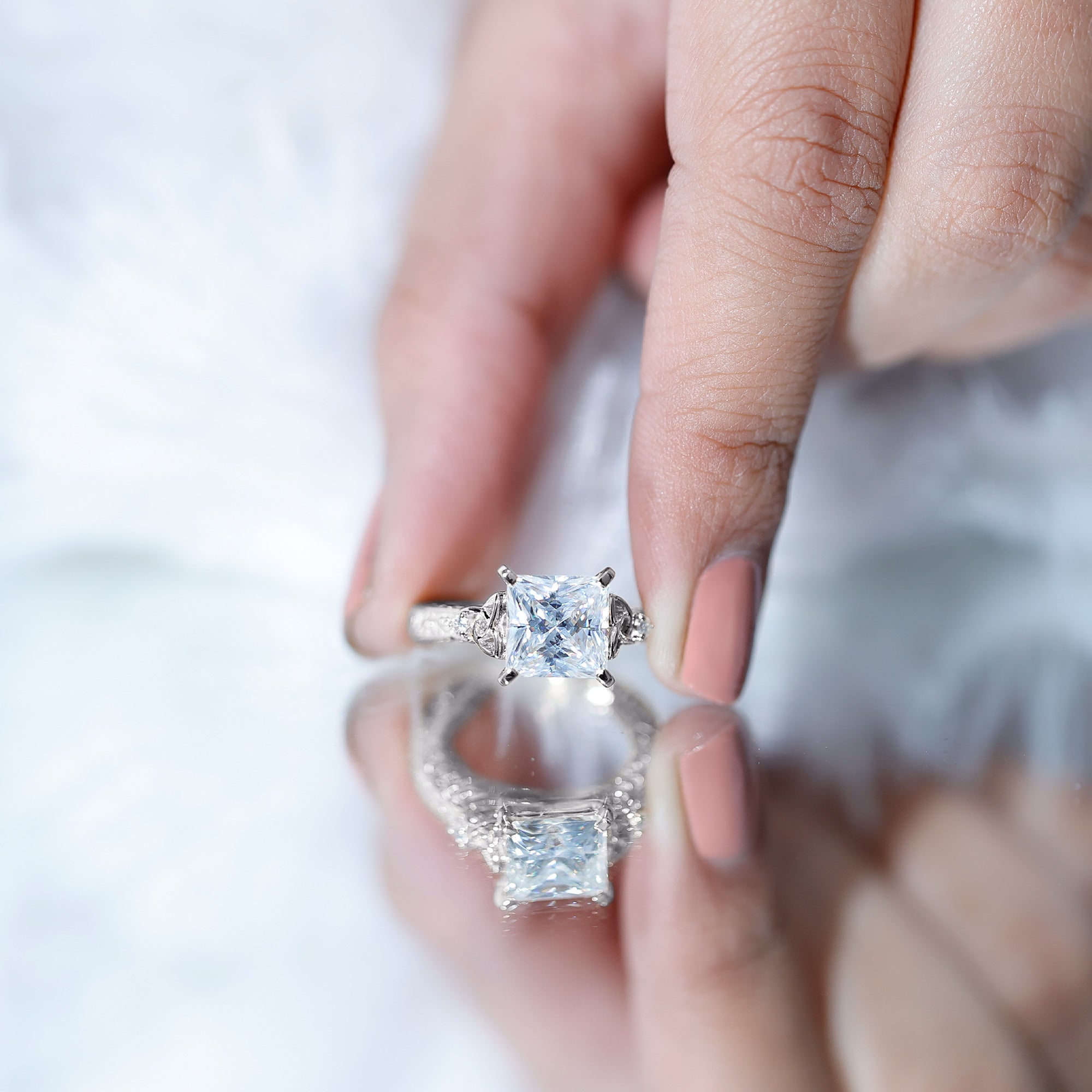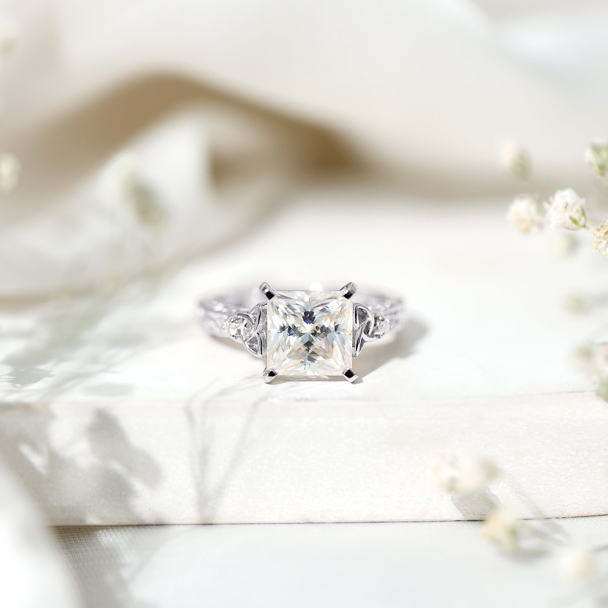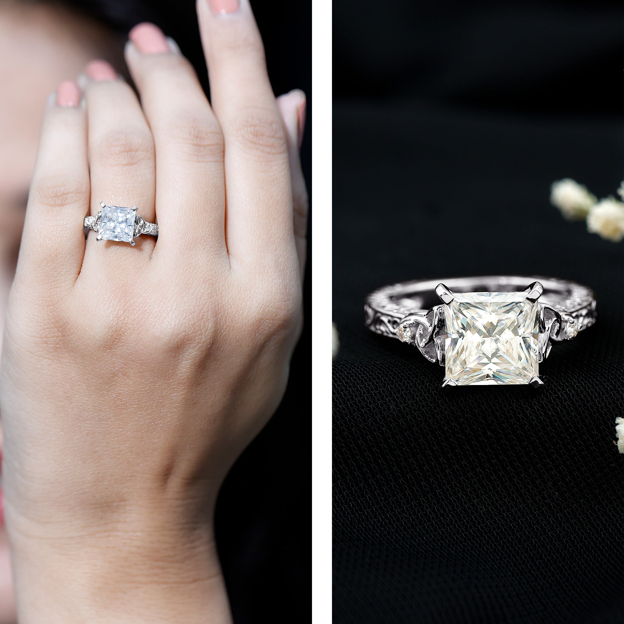 Moissanite: These are brilliant, cost-effective options to diamonds that are preferred for their durability and intense sparkle. They can not be differentiated from diamonds by a bare eye. Modern couples are choosing moissanite engagement rings for their affordability and sustainability. These stones with exceptional fire and brilliance can be easily crafted into all types of designs from vintage solitaires to intricate designer rings.