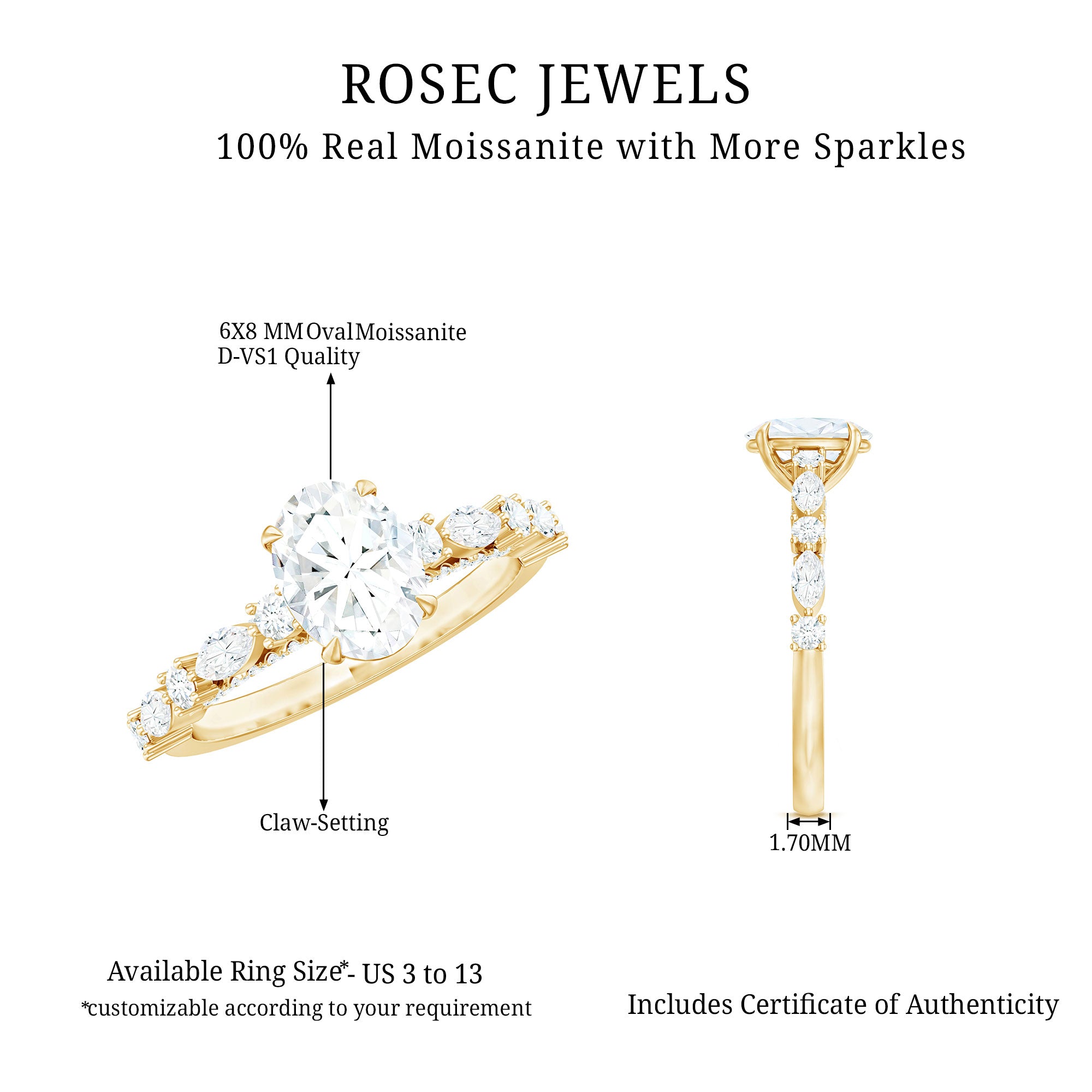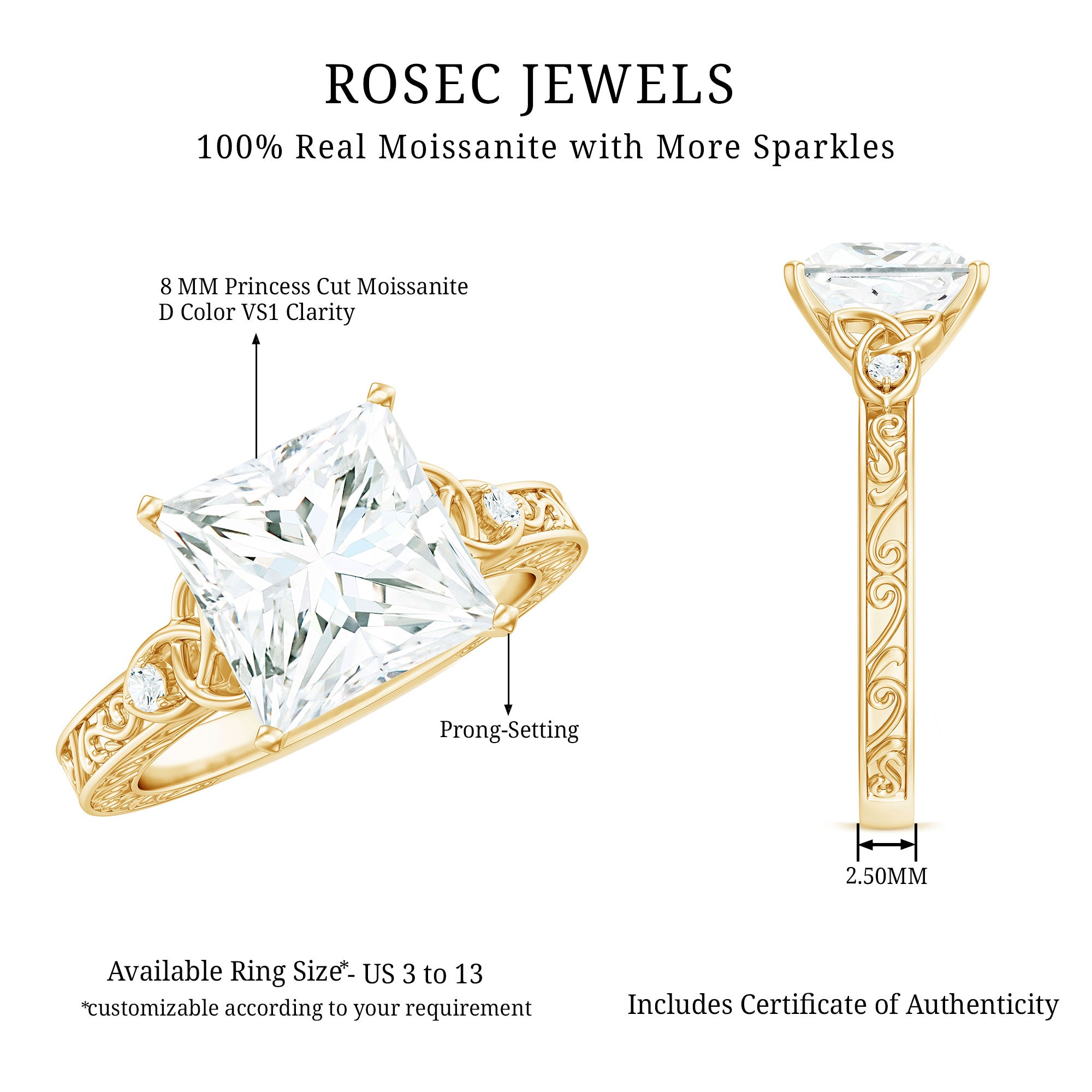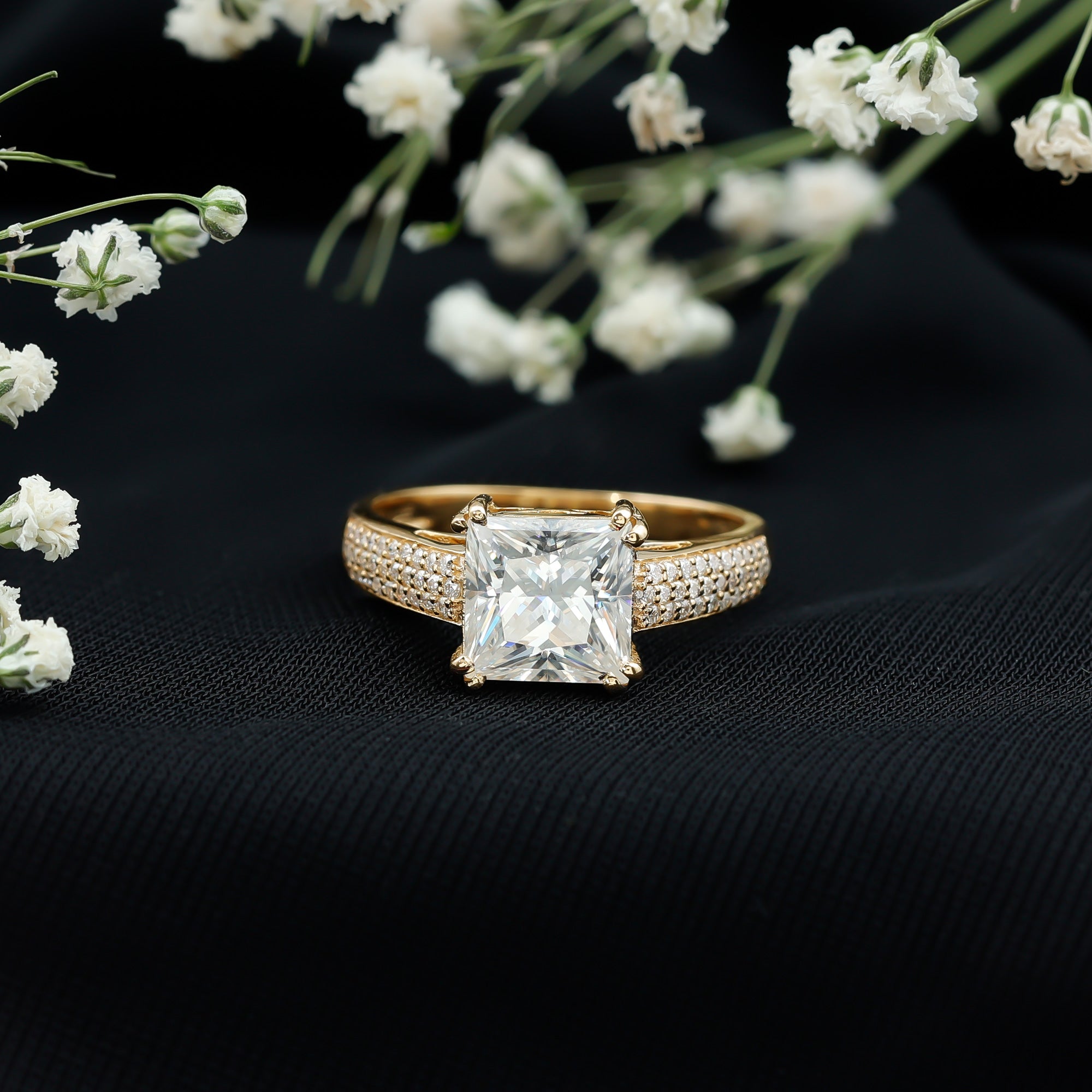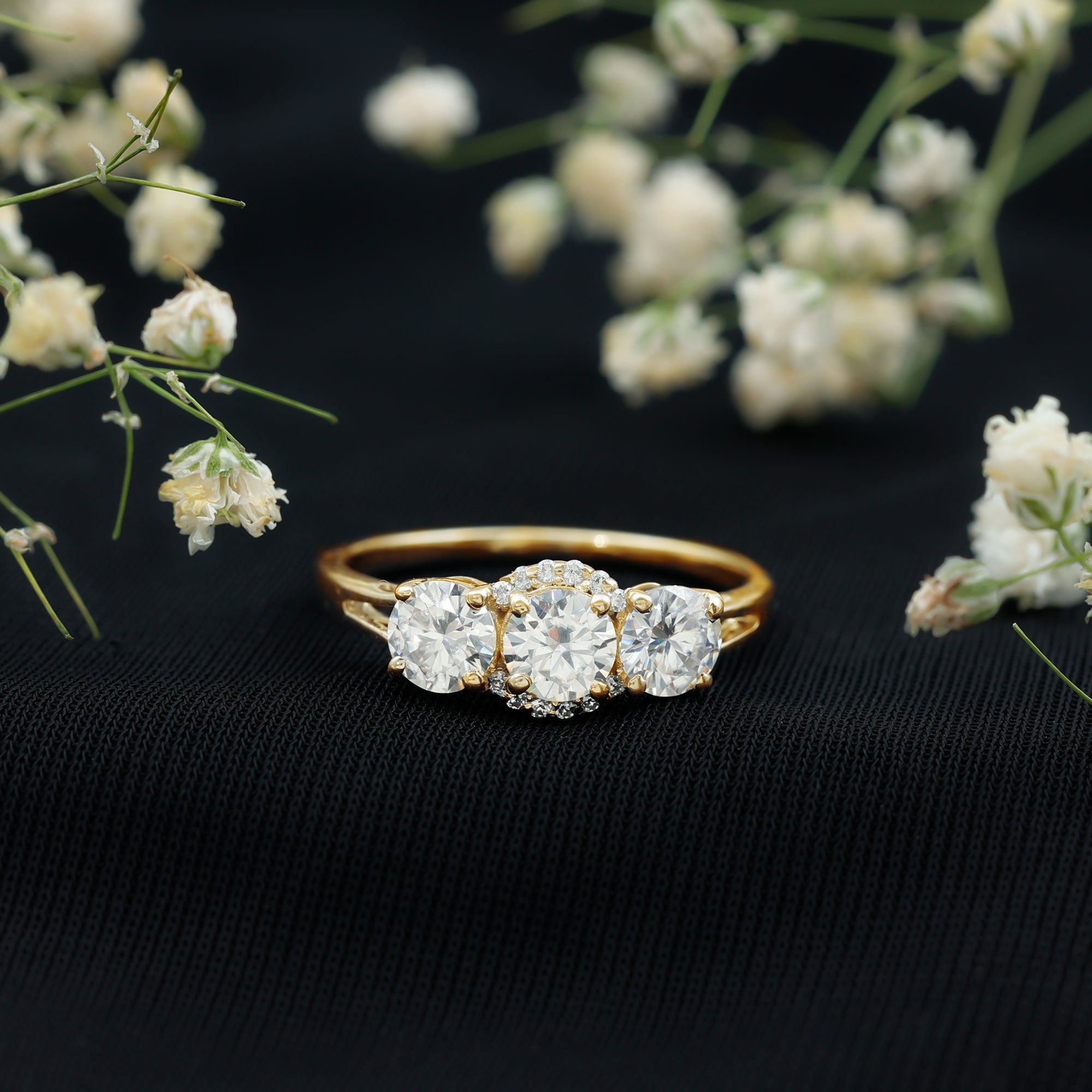 Moissanite: These are brilliant, cost-effective options to diamonds that are preferred for their durability and intense sparkle. They can not be differentiated from diamonds by a bare eye. Modern couples are choosing moissanite engagement rings for their affordability and sustainability. These stones with exceptional fire and brilliance can be easily crafted into all types of designs from vintage solitaires to intricate designer rings.