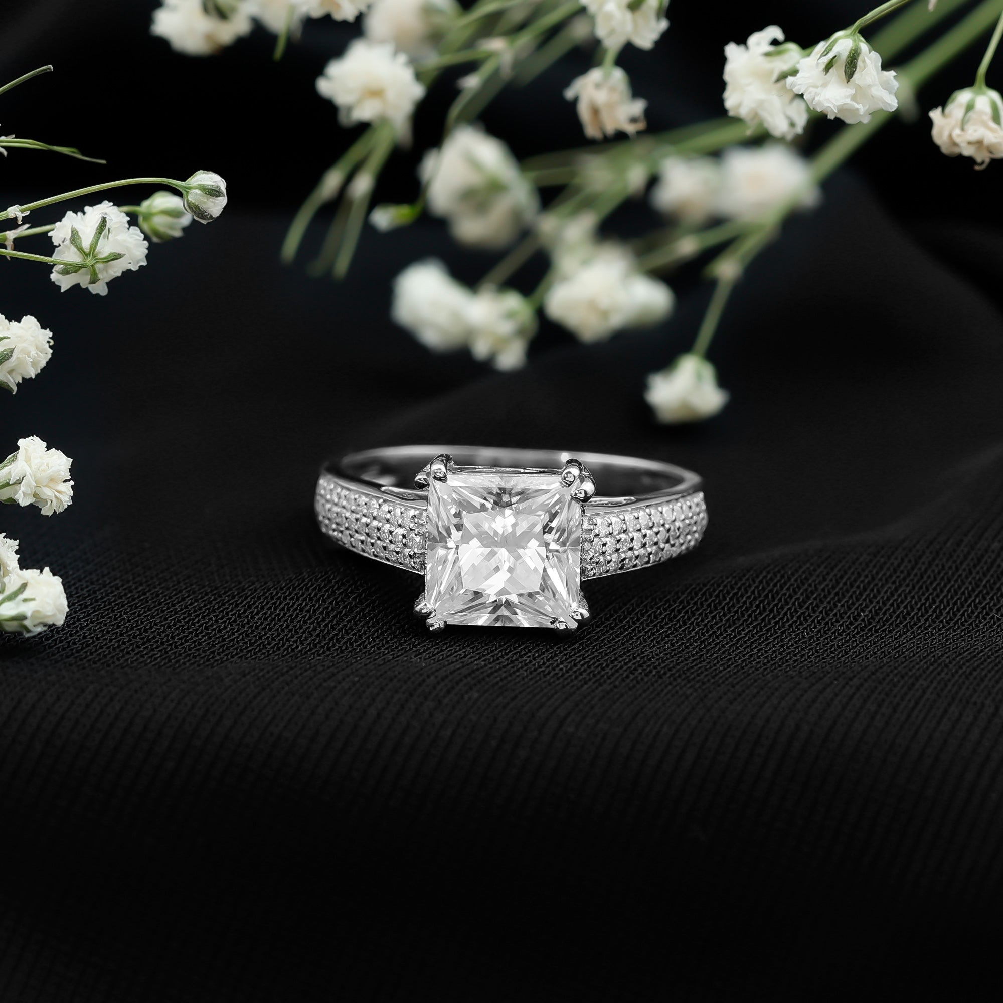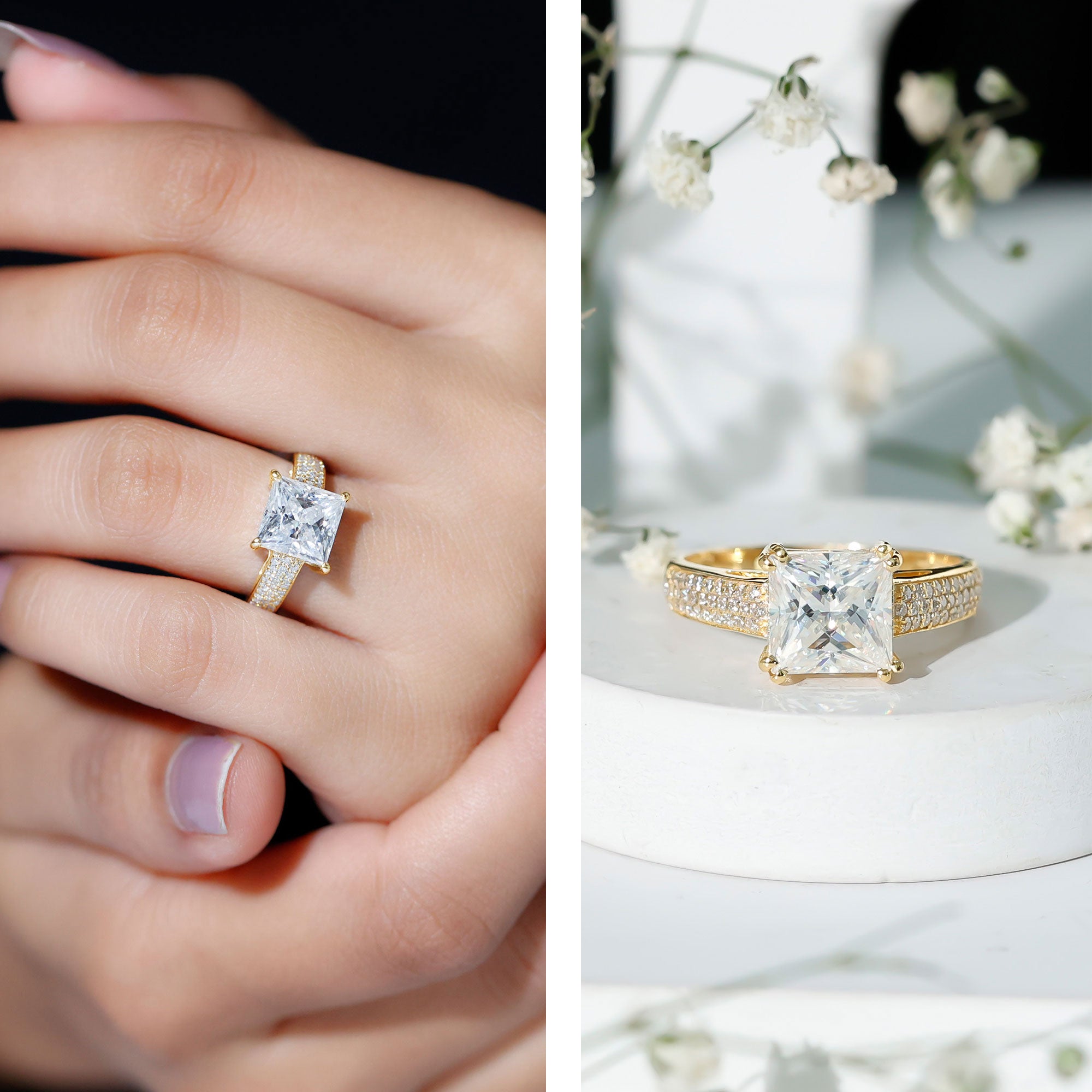 Princess Cut Engagement Rings: Princess cut engagement rings are pleasing buyers with their beautiful geometric shape of the gemstone, which is a square with rounded corners. Clean and stylish appeal of the princess cut diamond as solitaire or surrounded by side stones is a good choice for occasional as well as everyday wear.
