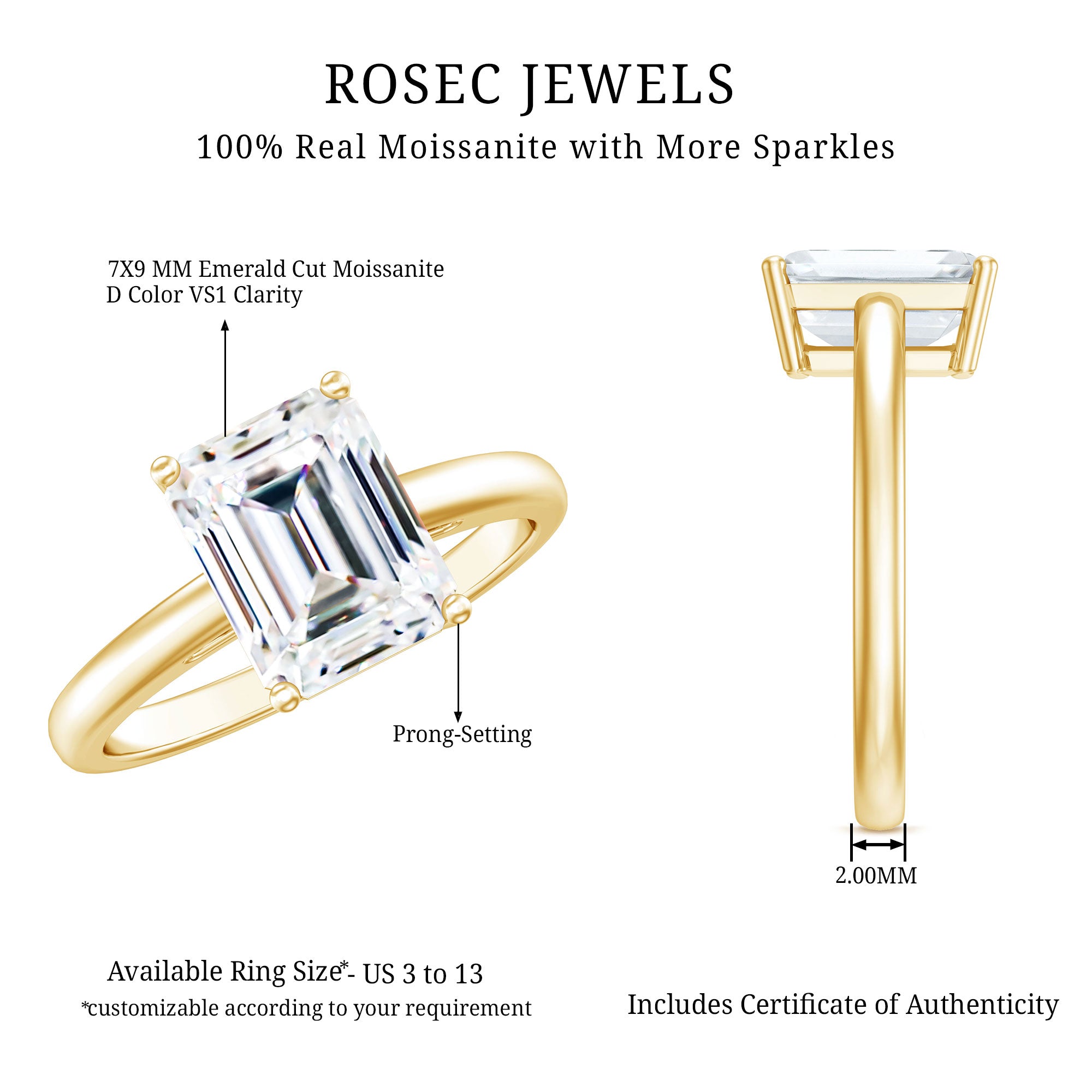 Emerald Cut Engagement Rings: Emerald cut engagement rings feature rectangular gemstones with step cuts as center stones. This cut with more clarity and depth, is less sparkling and often loved by minimalist lovers.