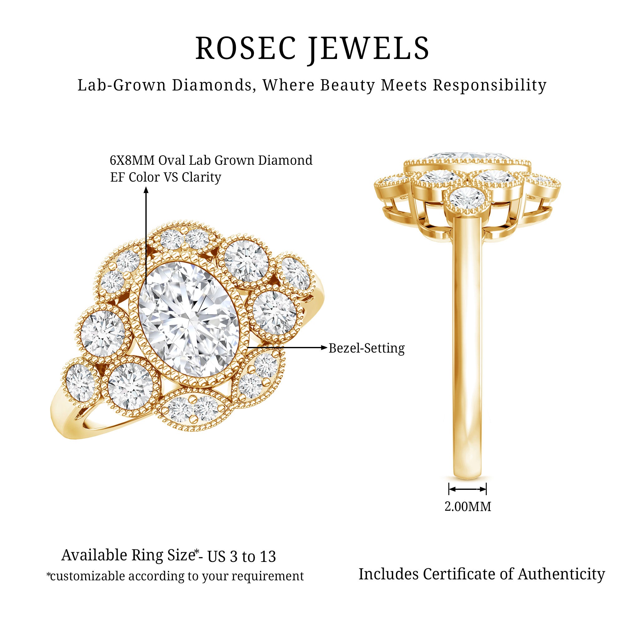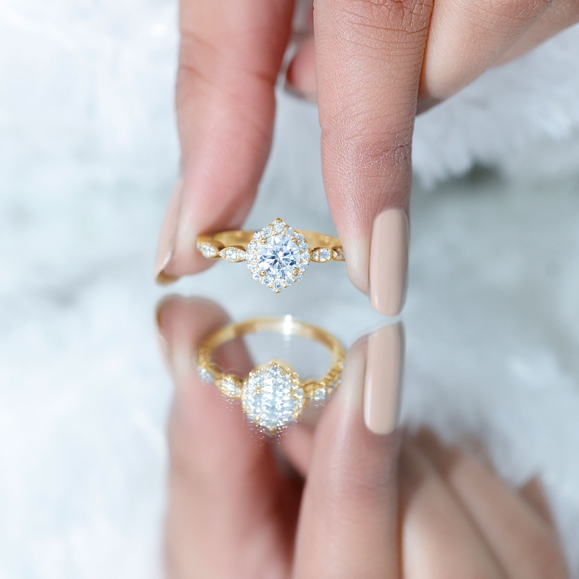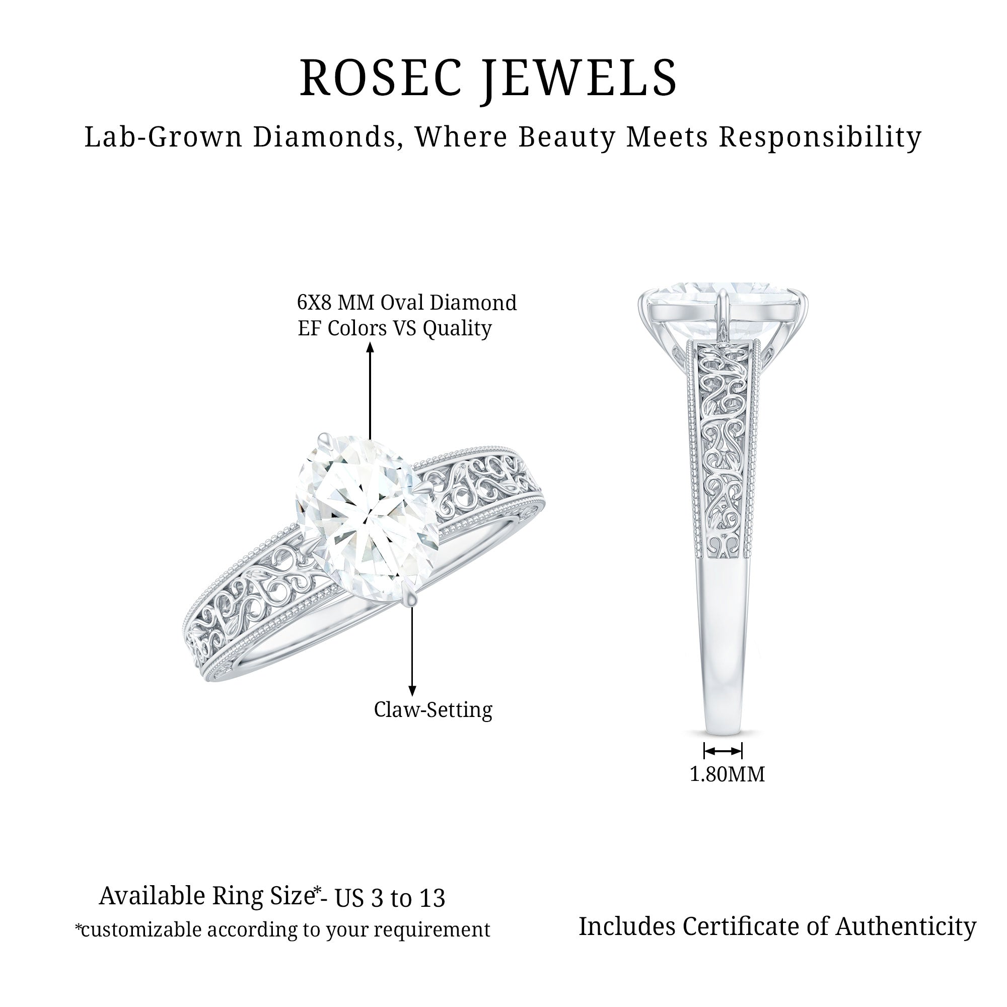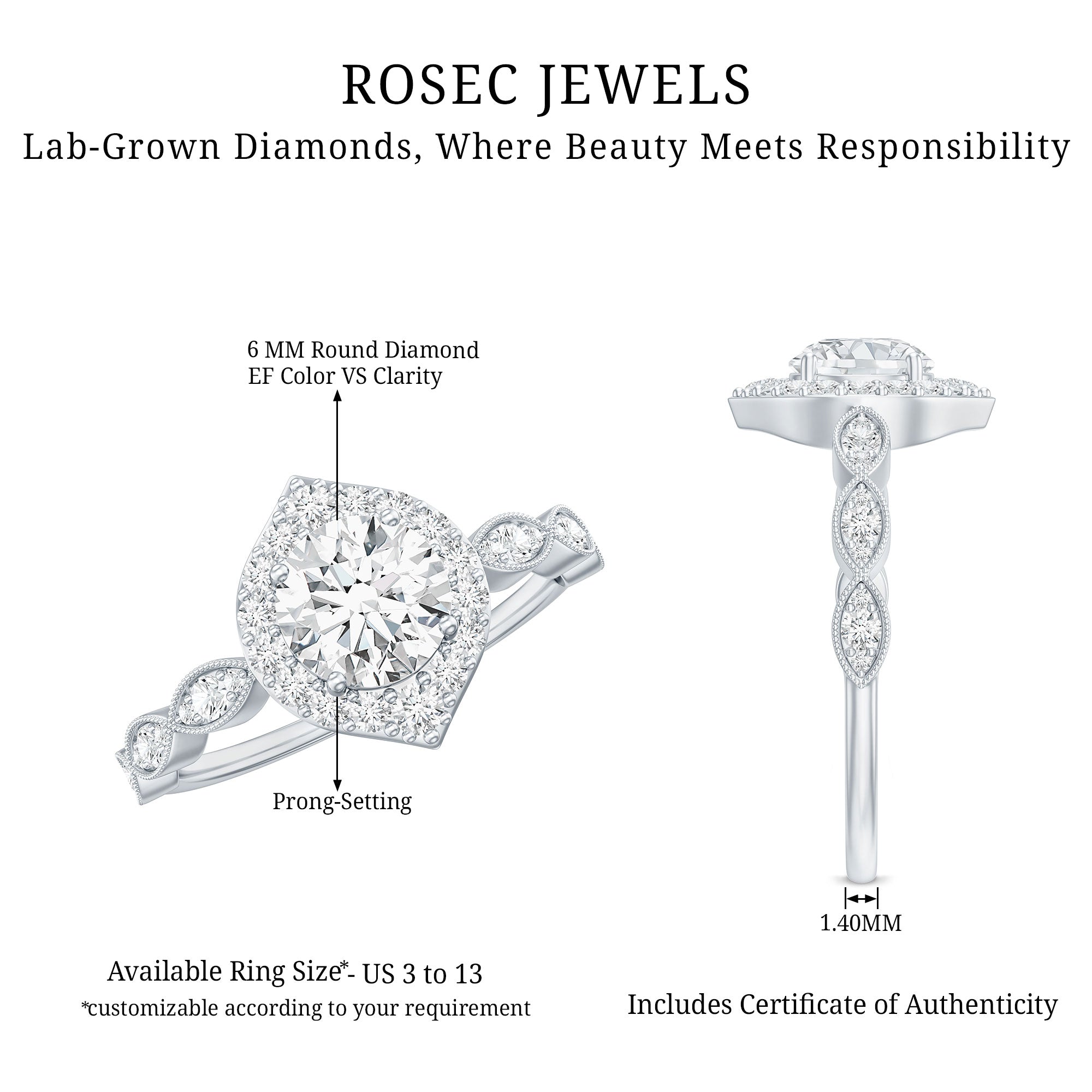 Explore our curated collection of engagement rings crafted with lab grown diamonds and moissanite—two brilliant, ethical alternatives to mined diamonds. Whether you prefer a timeless solitaire, a sparkling halo, or a vintage-inspired design, this page helps you compare styles, stones, and settings before you choose.