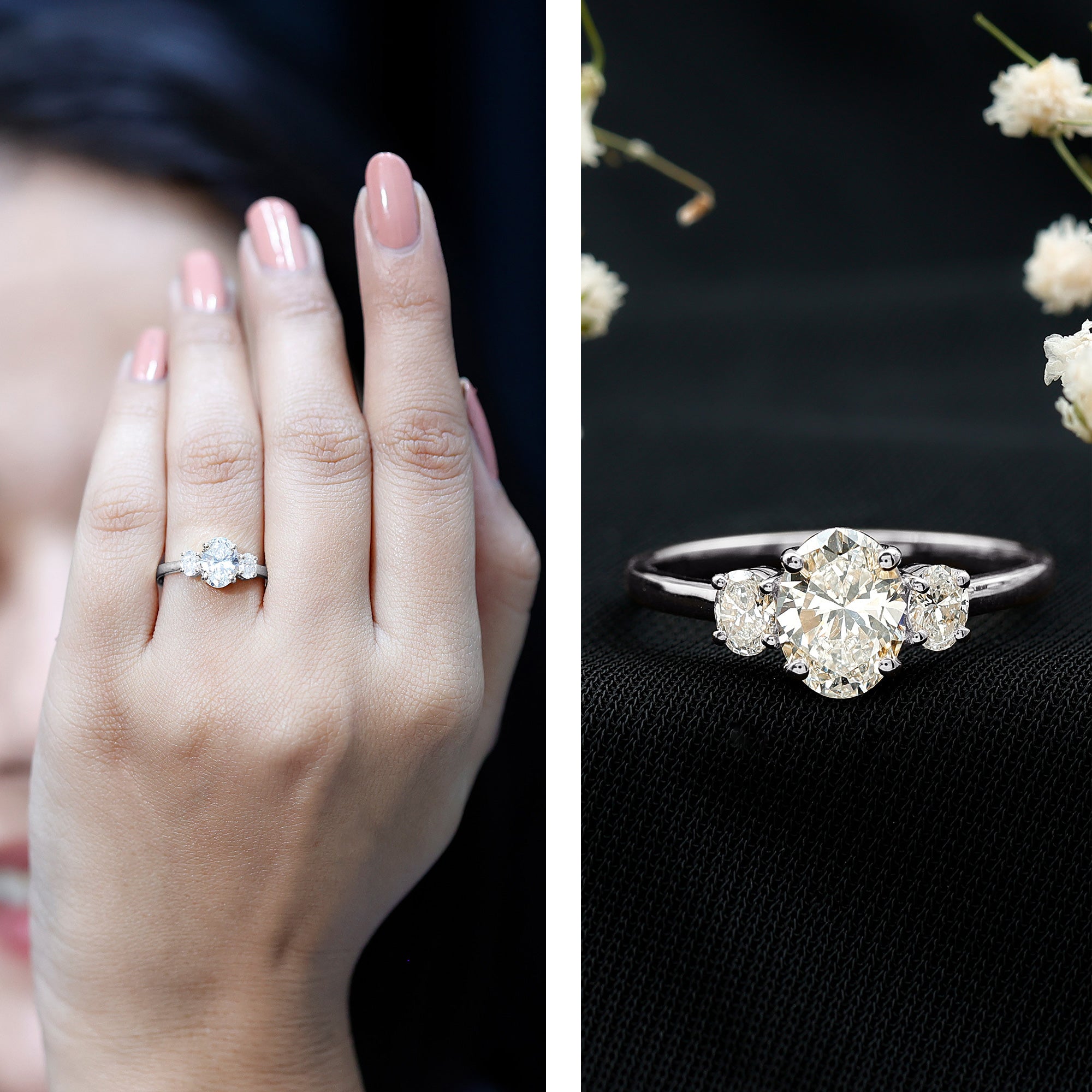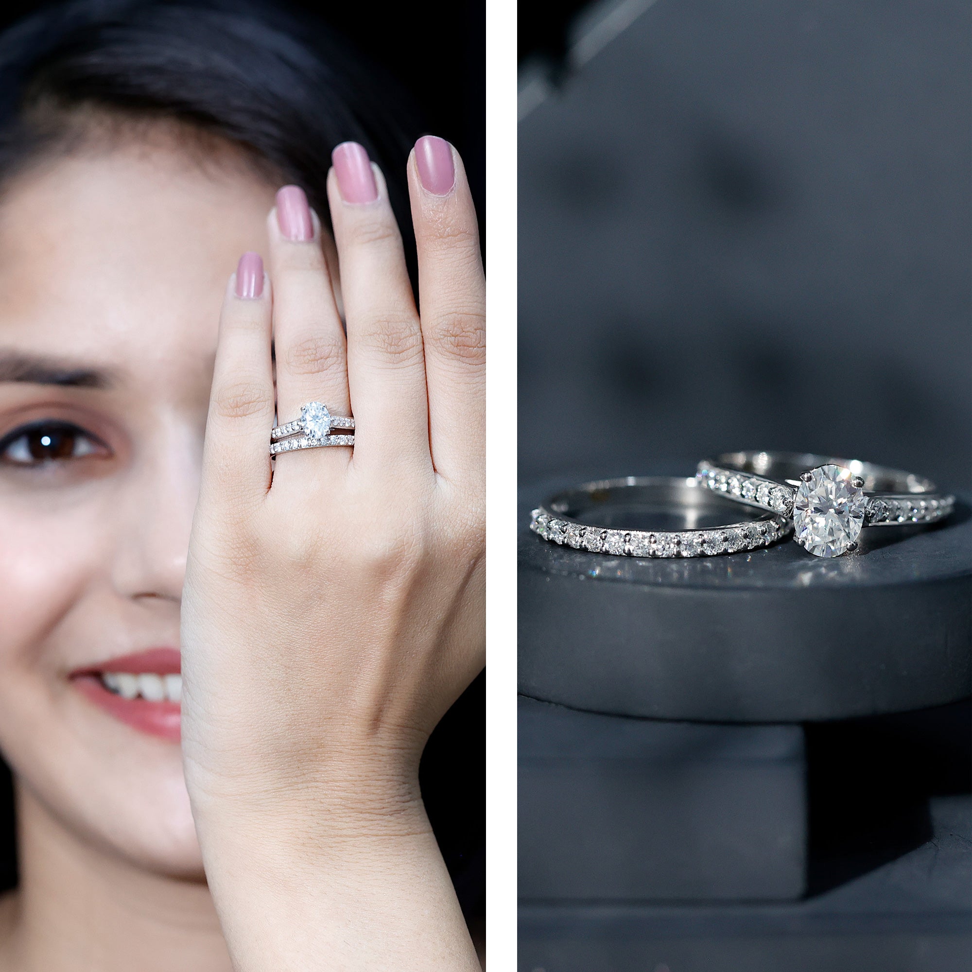 Both options are durable, beautiful, and ideal for everyday wear. Lab grown diamonds are real diamonds with the same hardness and fire, while moissanite is loved for its intense sparkle and affordability.