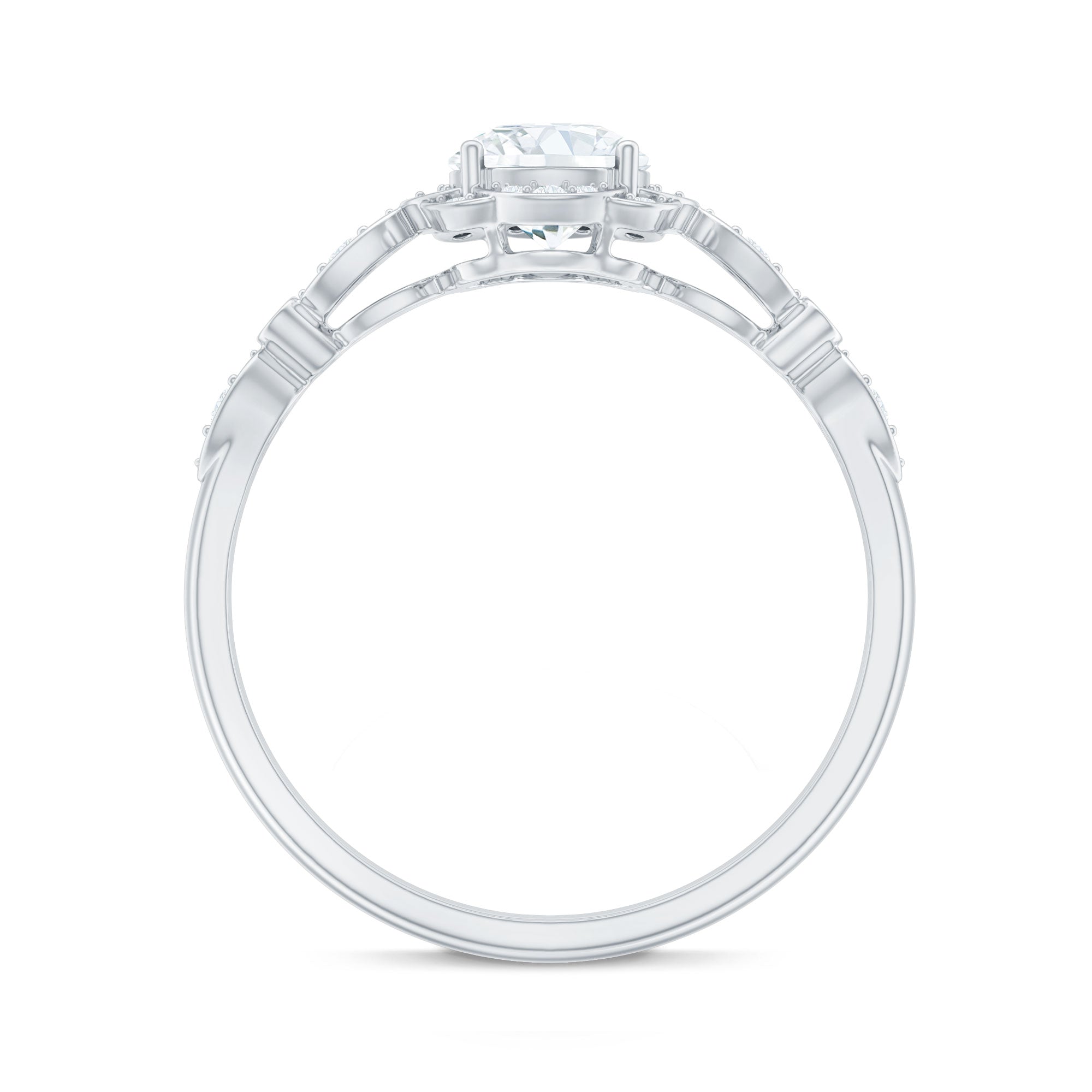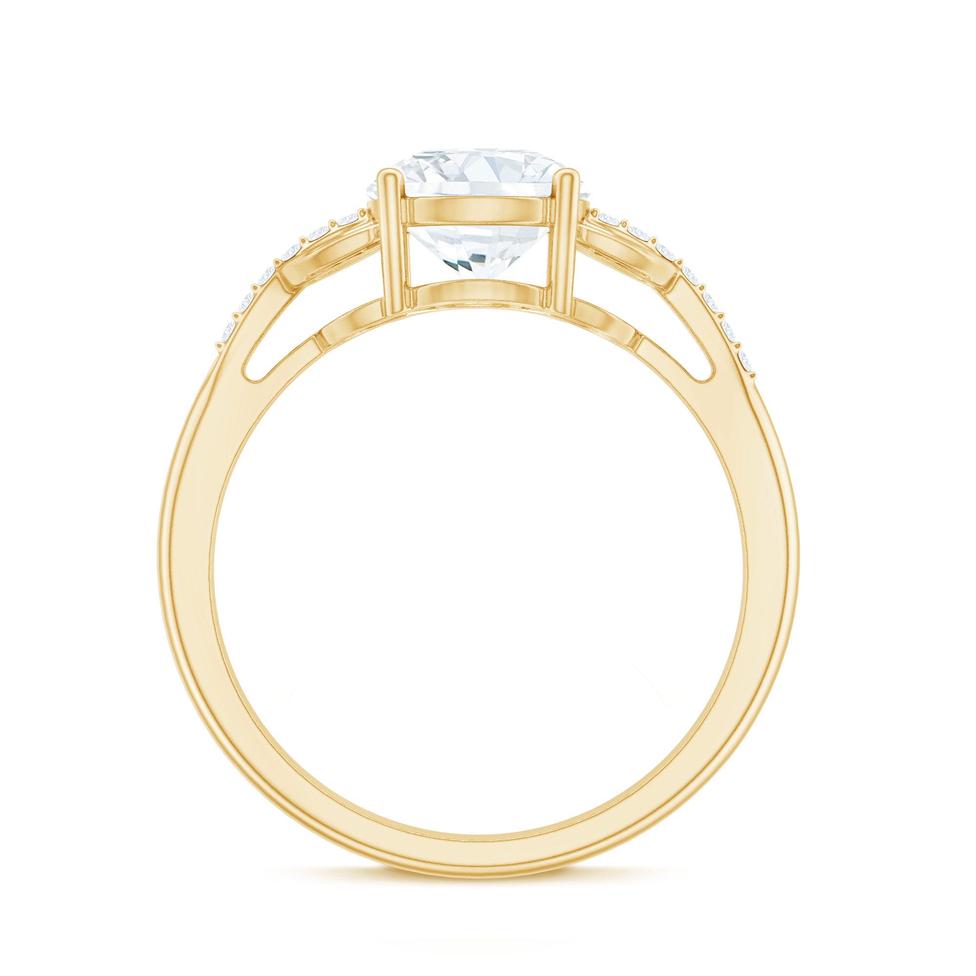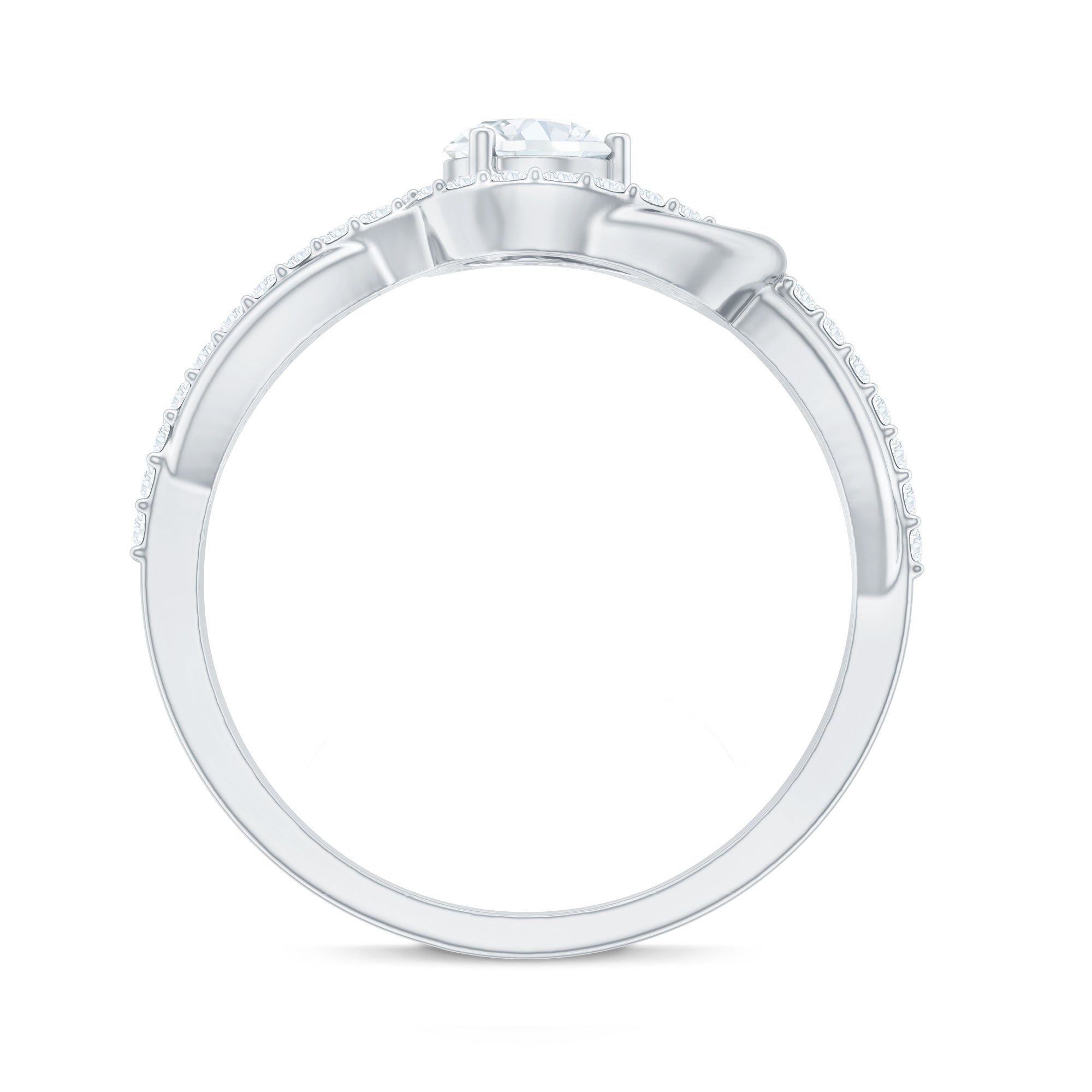 Pear Shaped Engagement Rings: Pear rings or teardrop rings feature gemstone which is a mix of round and marquise shape. This shape with a pointed end looks elongated and looks great with stacked diamond or moissanite bands.