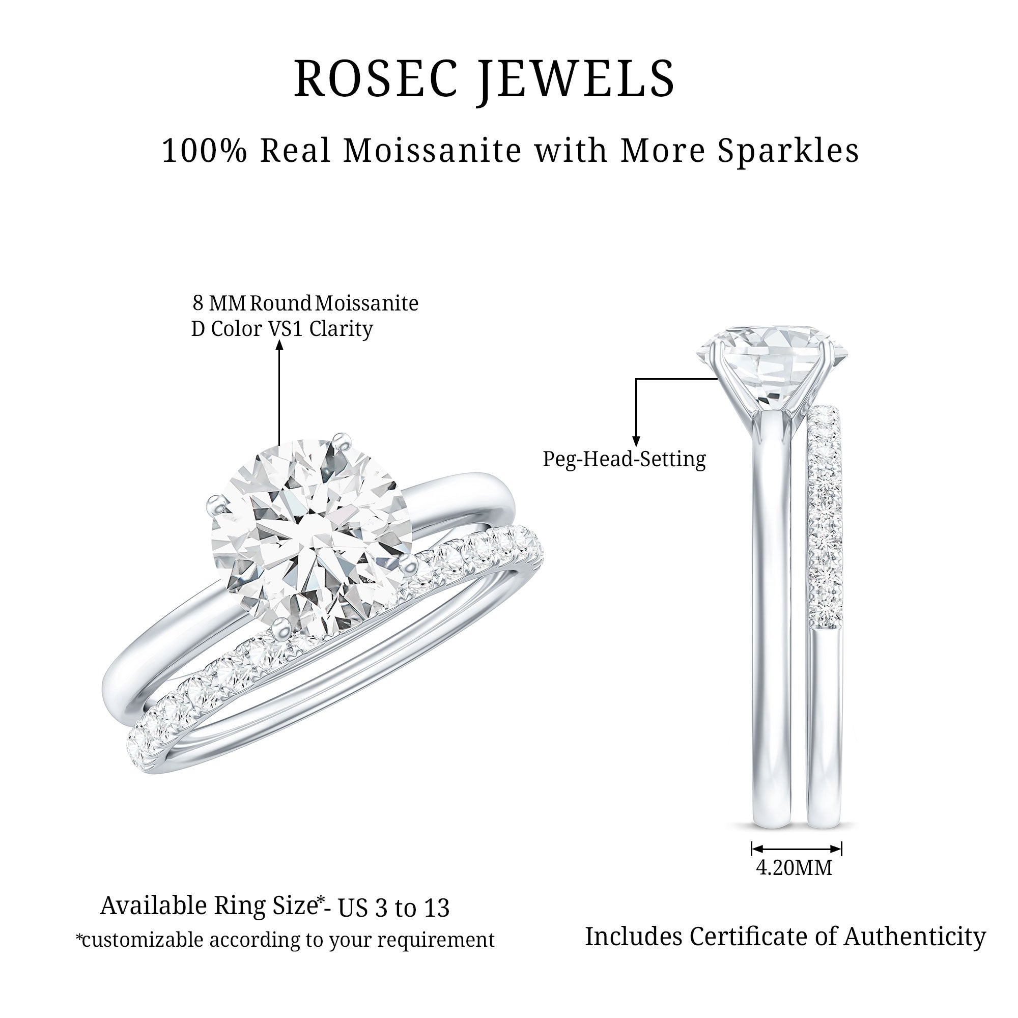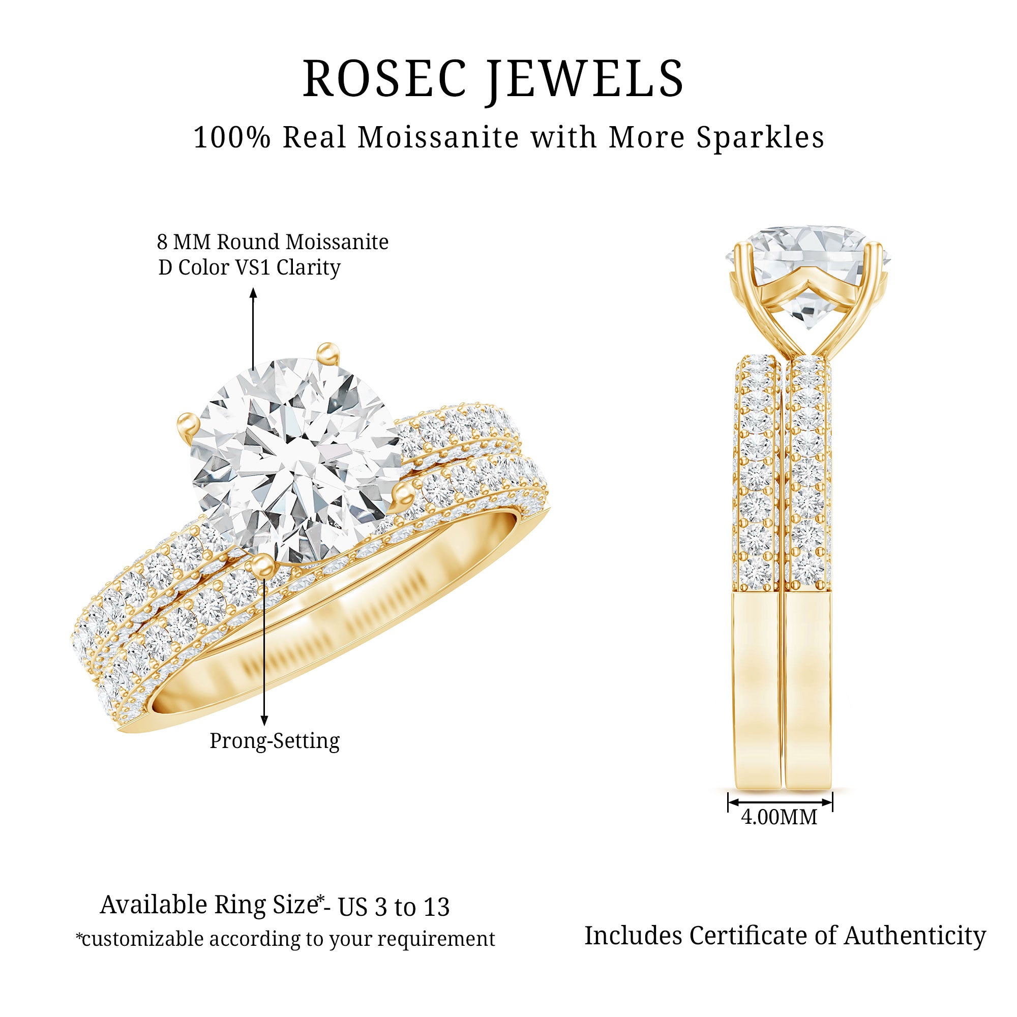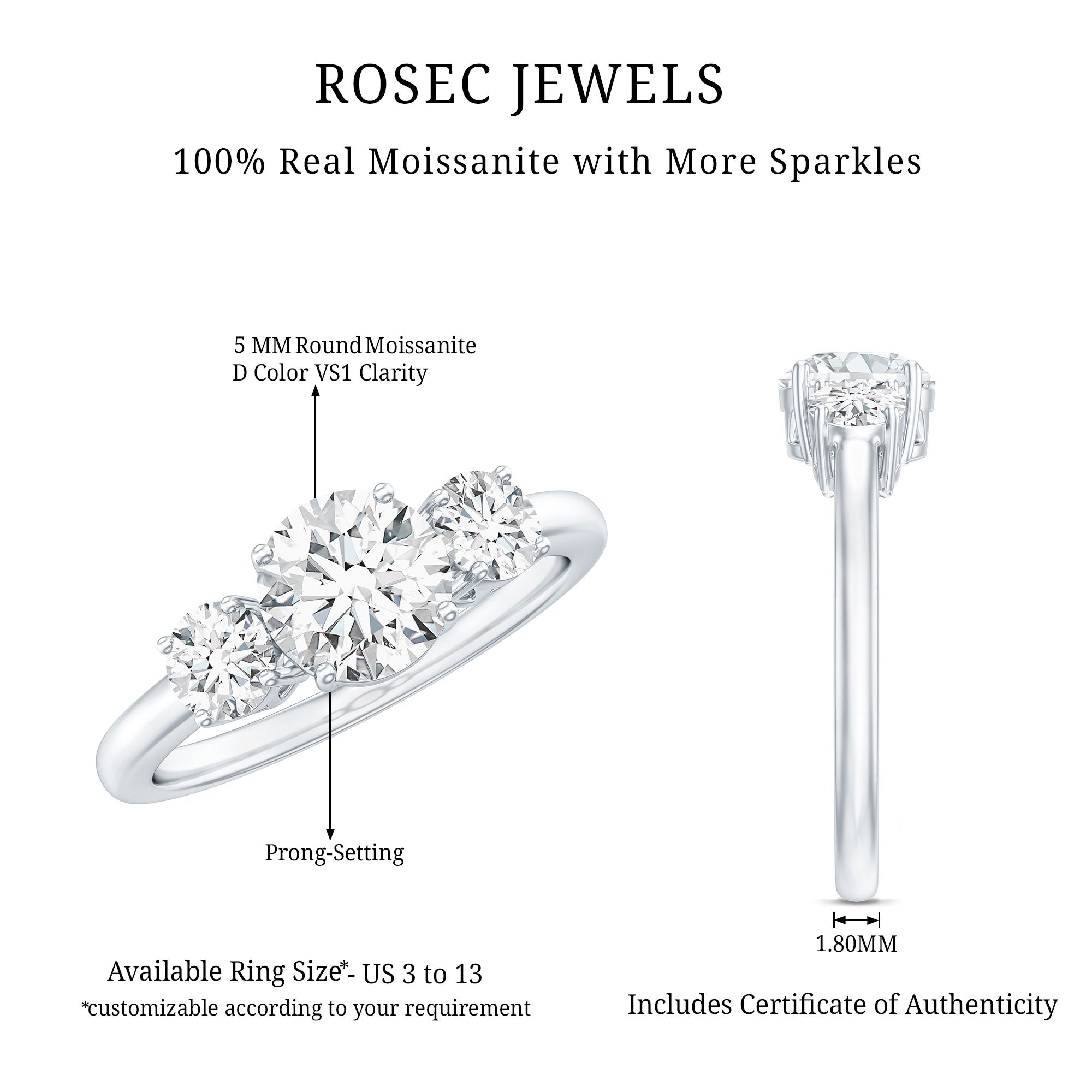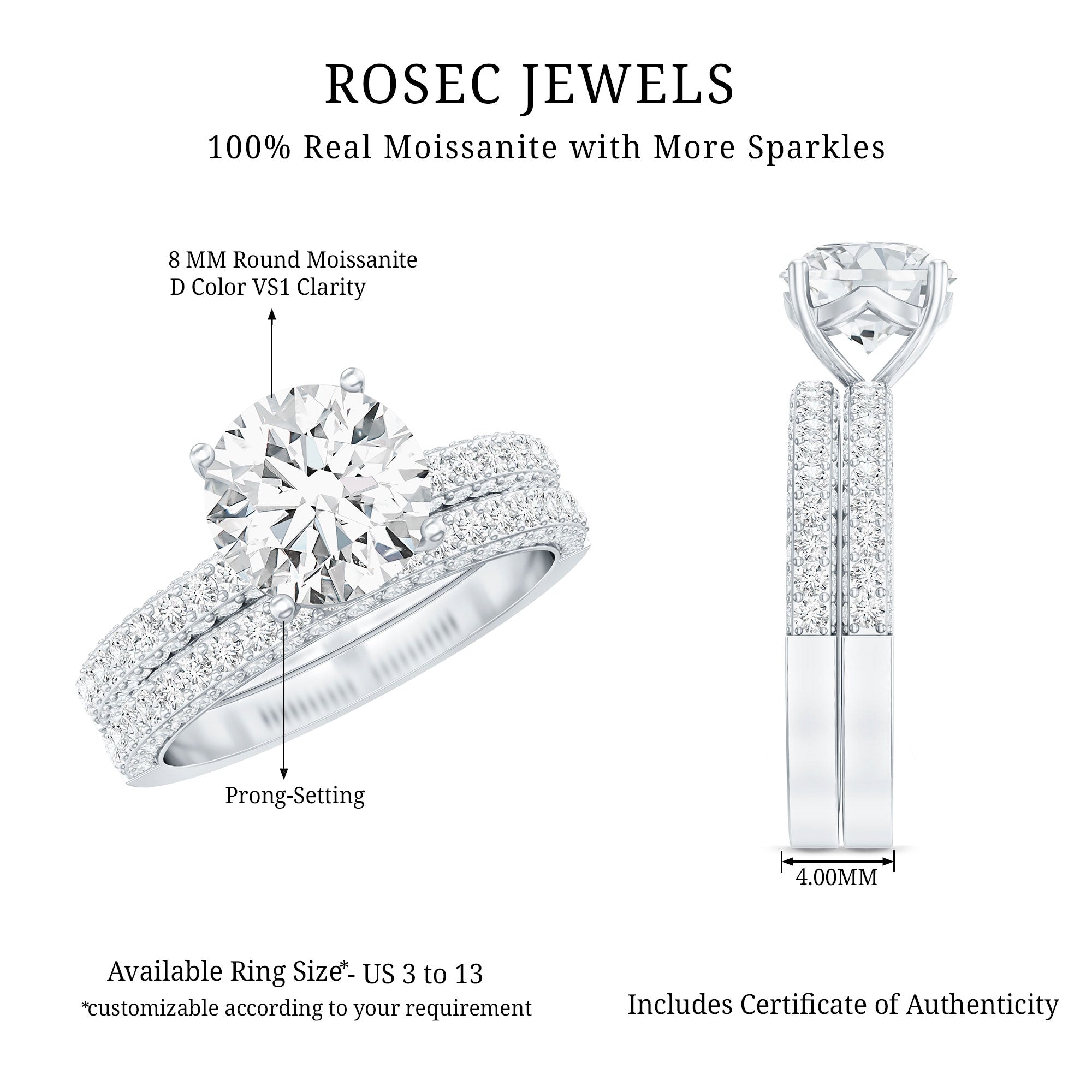 - Stone type: Lab grown diamonds offer a classic diamond look; moissanite delivers exceptional sparkle and value.