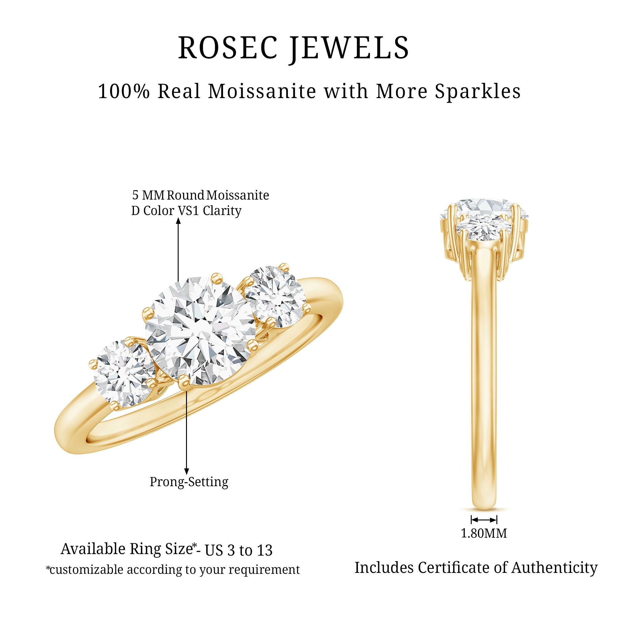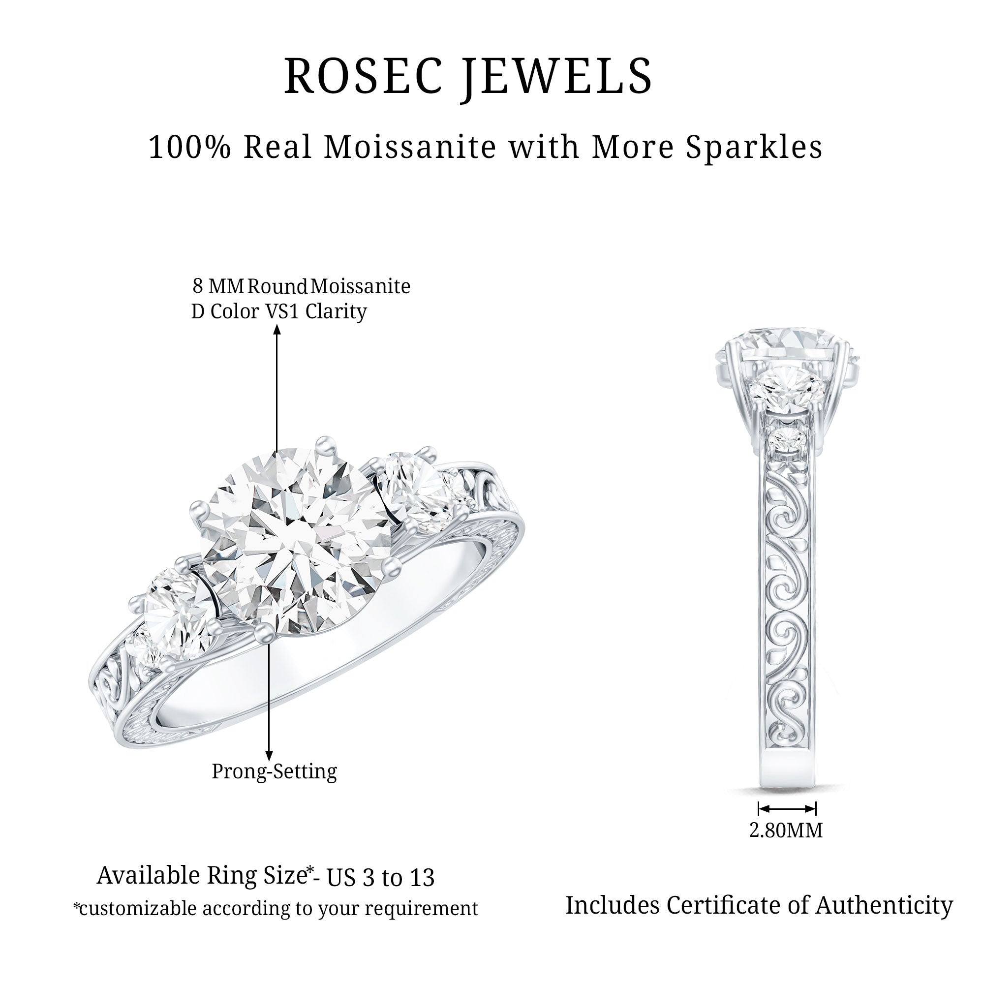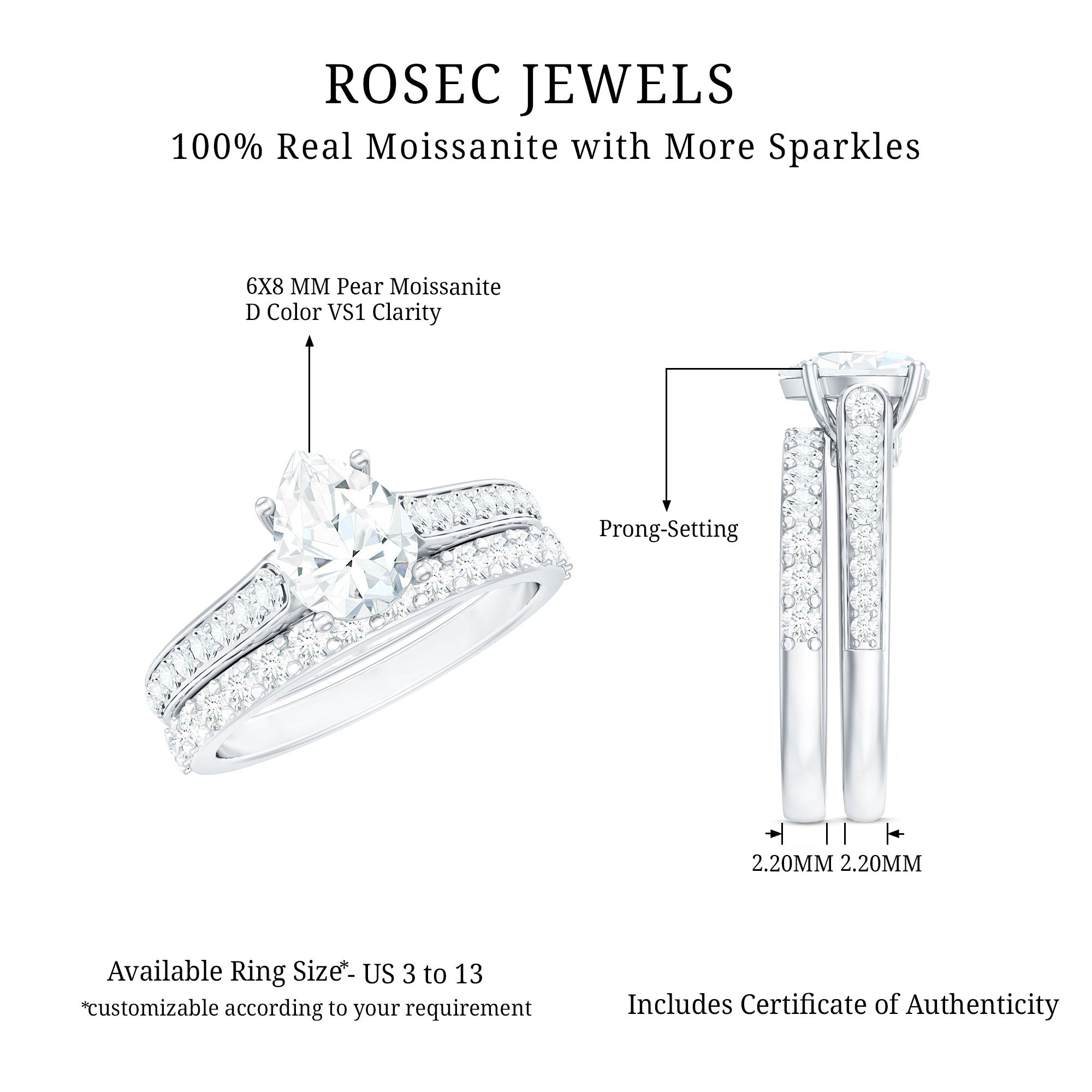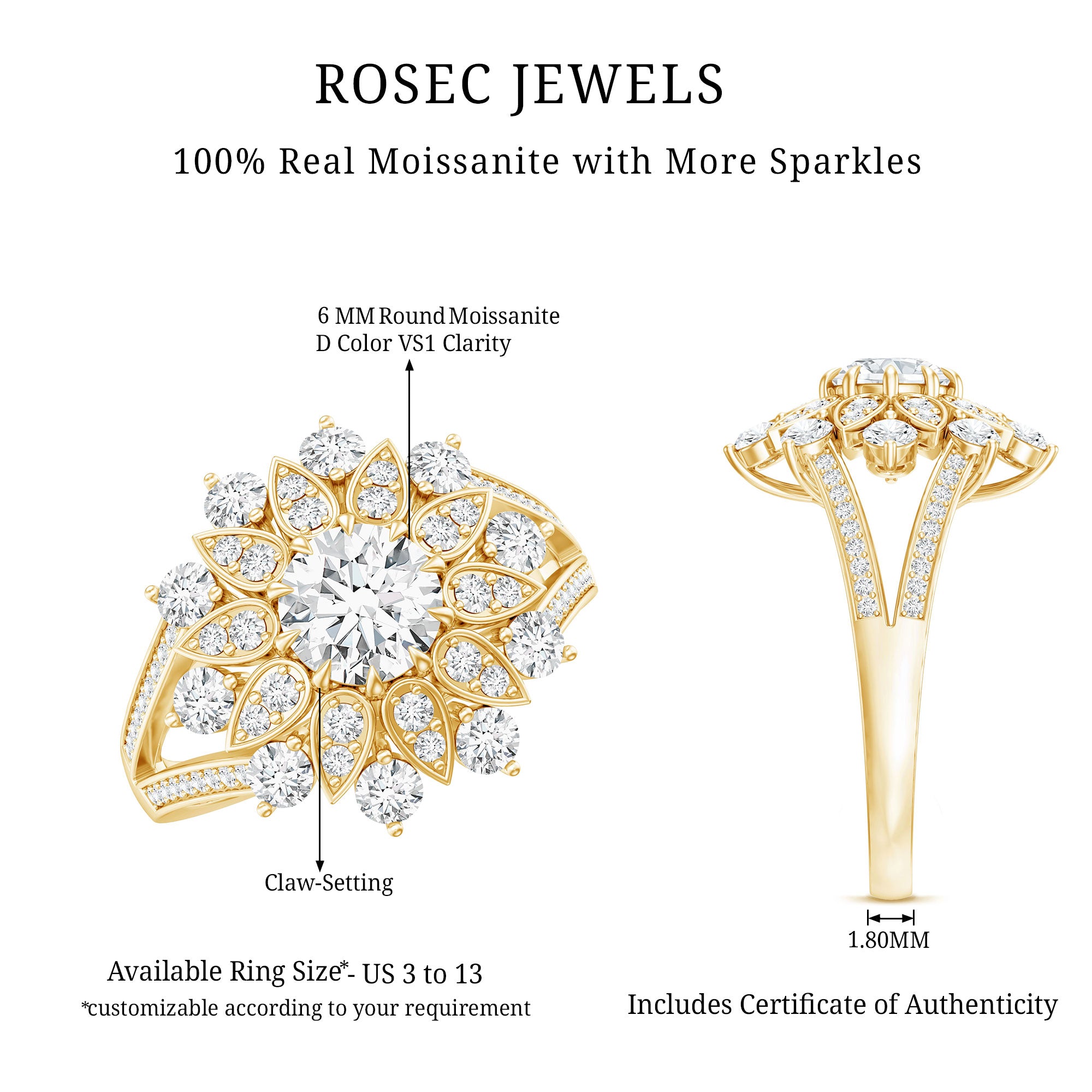 - Stone type: Lab grown diamonds offer a classic diamond look; moissanite delivers exceptional sparkle and value.