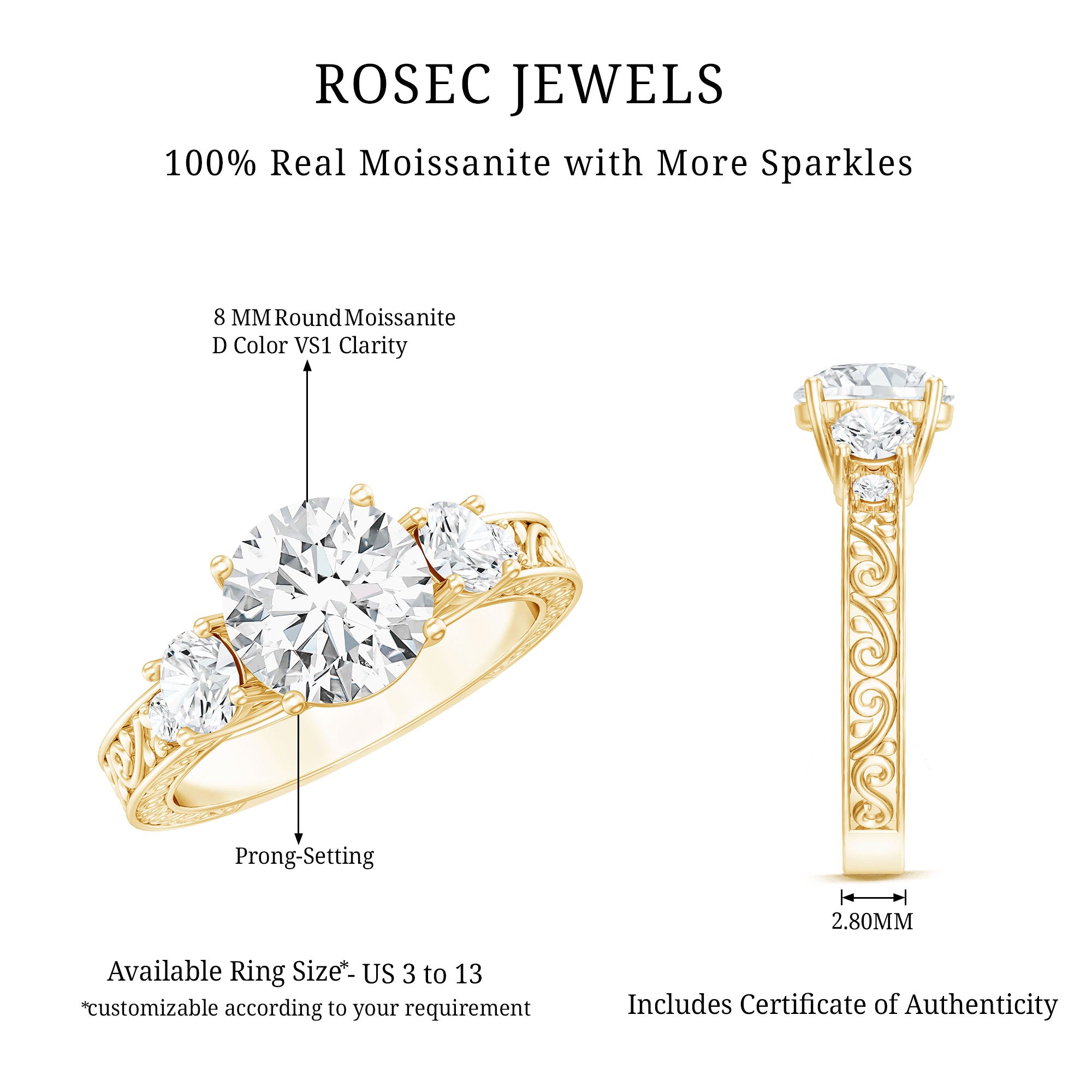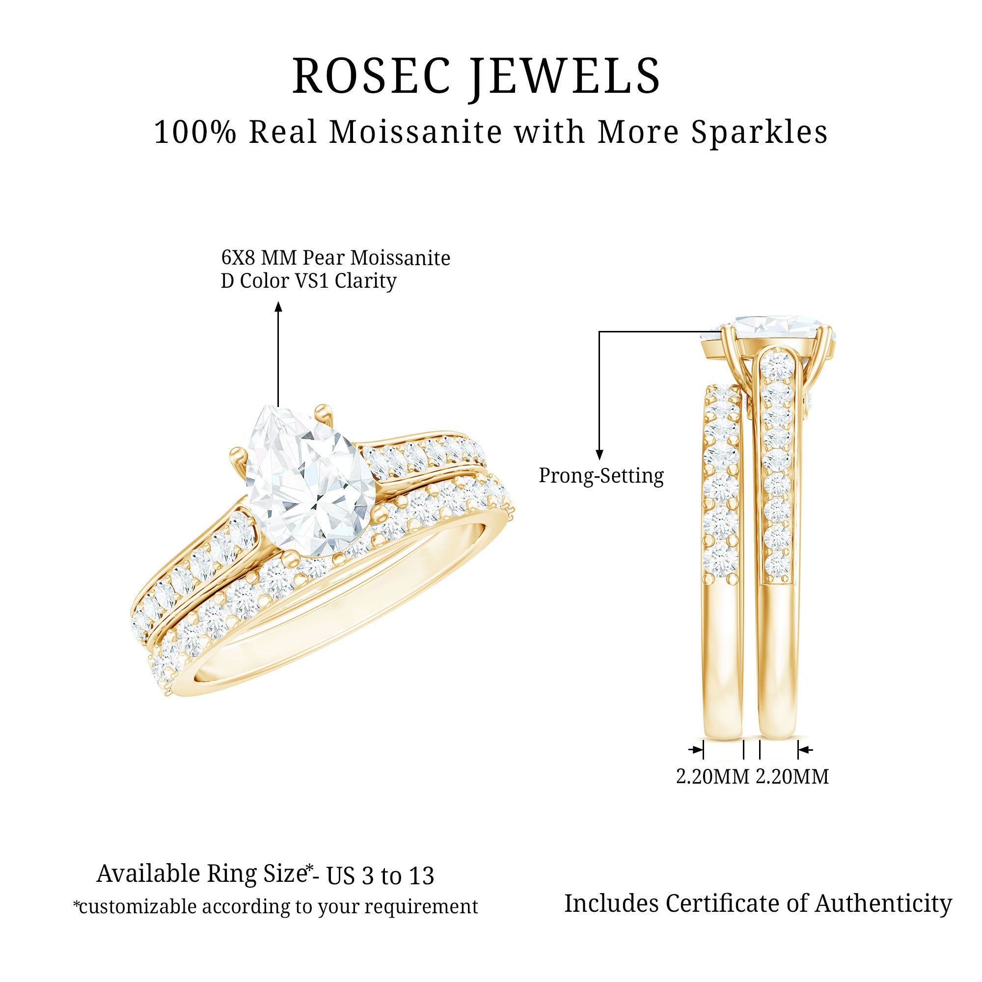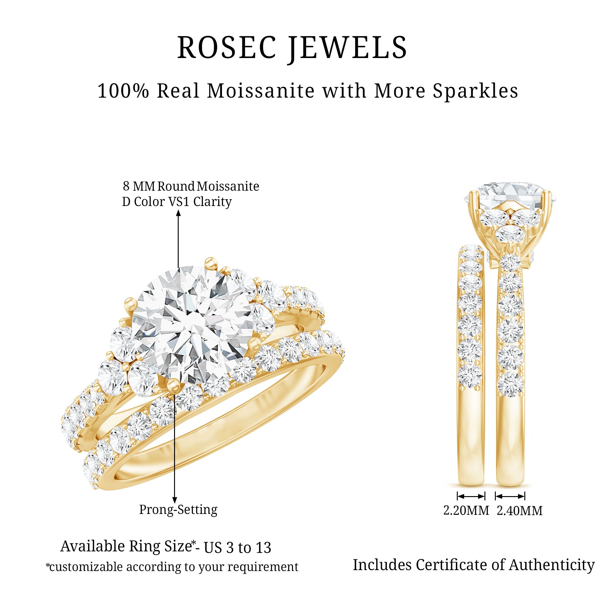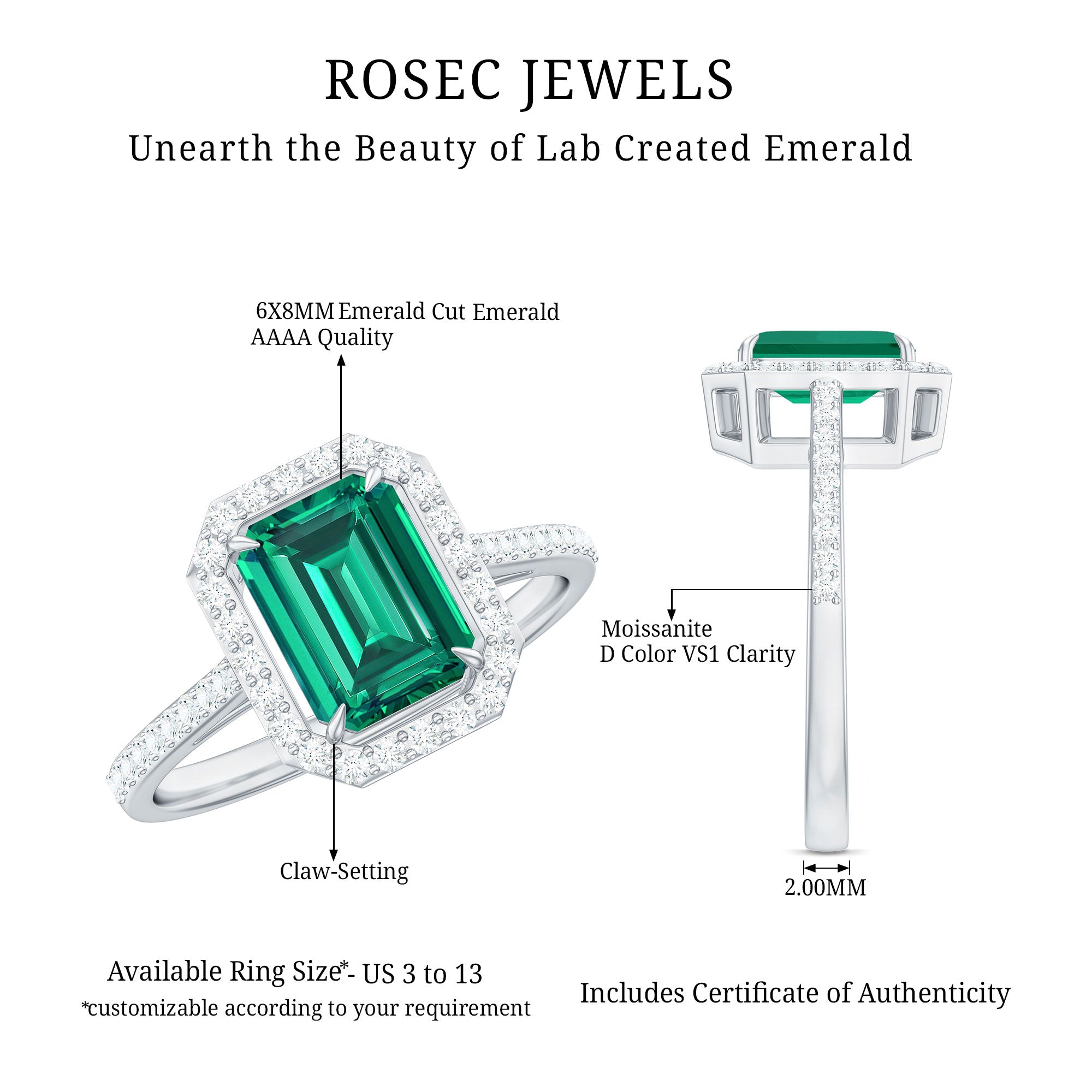 - Stone type: Lab grown diamonds offer a classic diamond look; moissanite delivers exceptional sparkle and value.