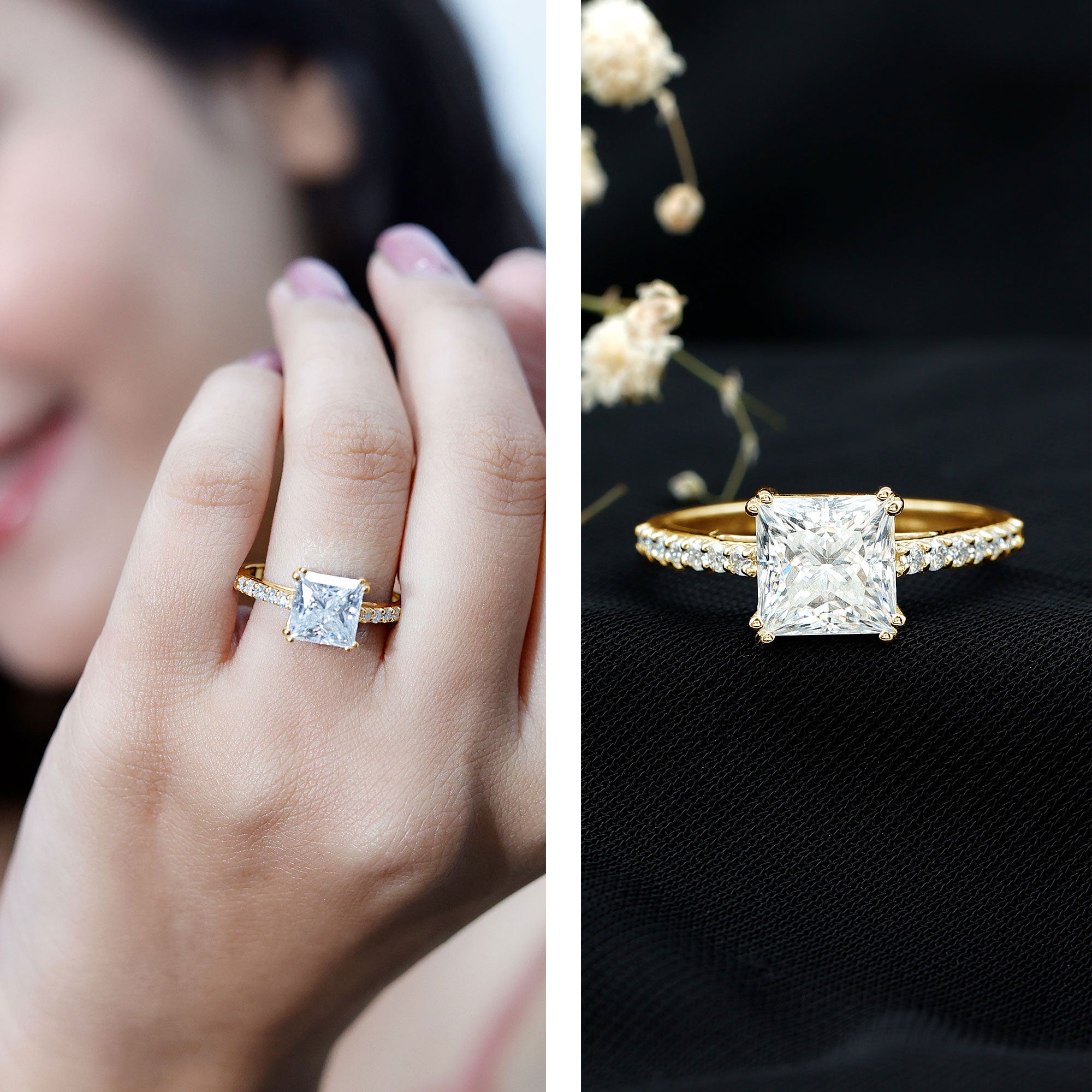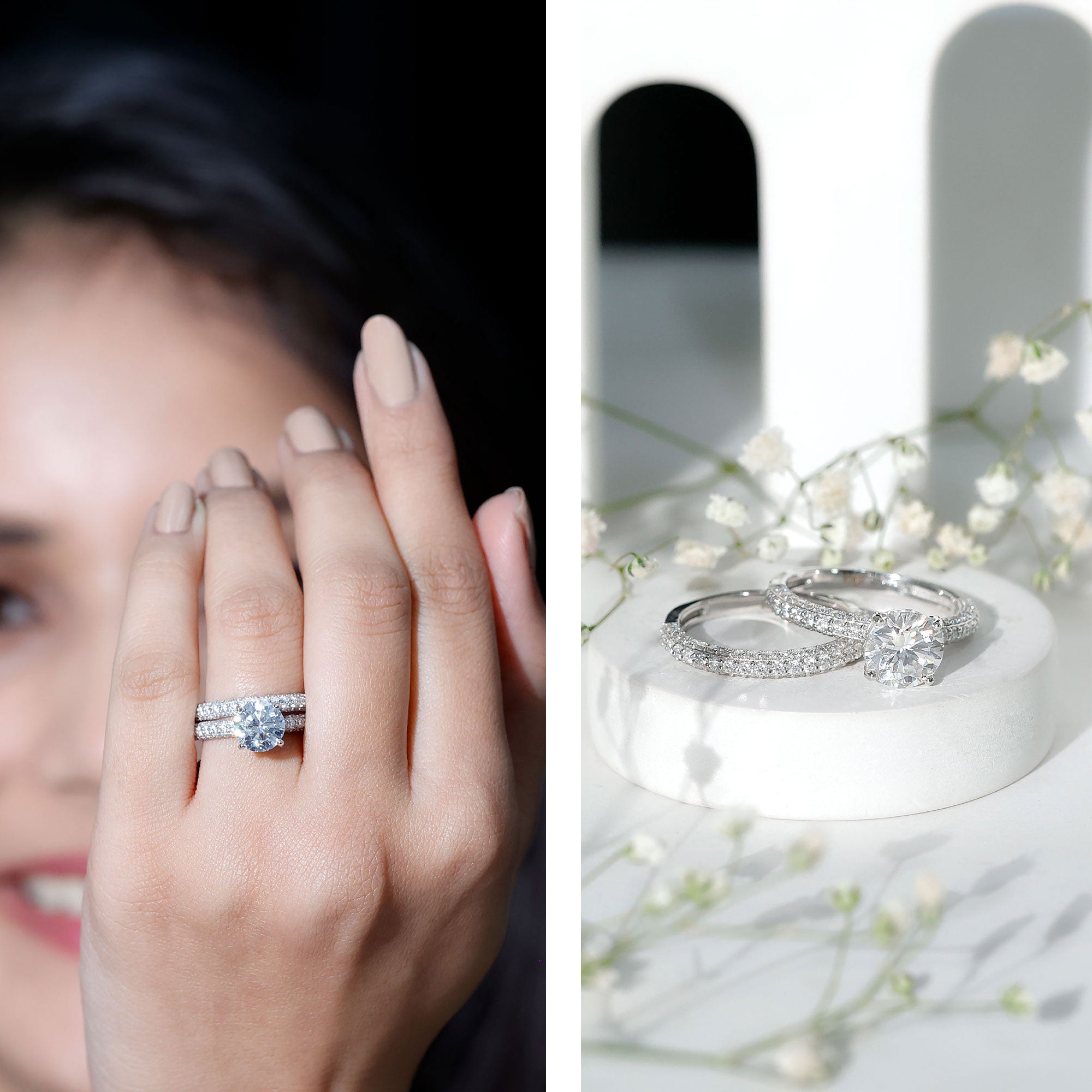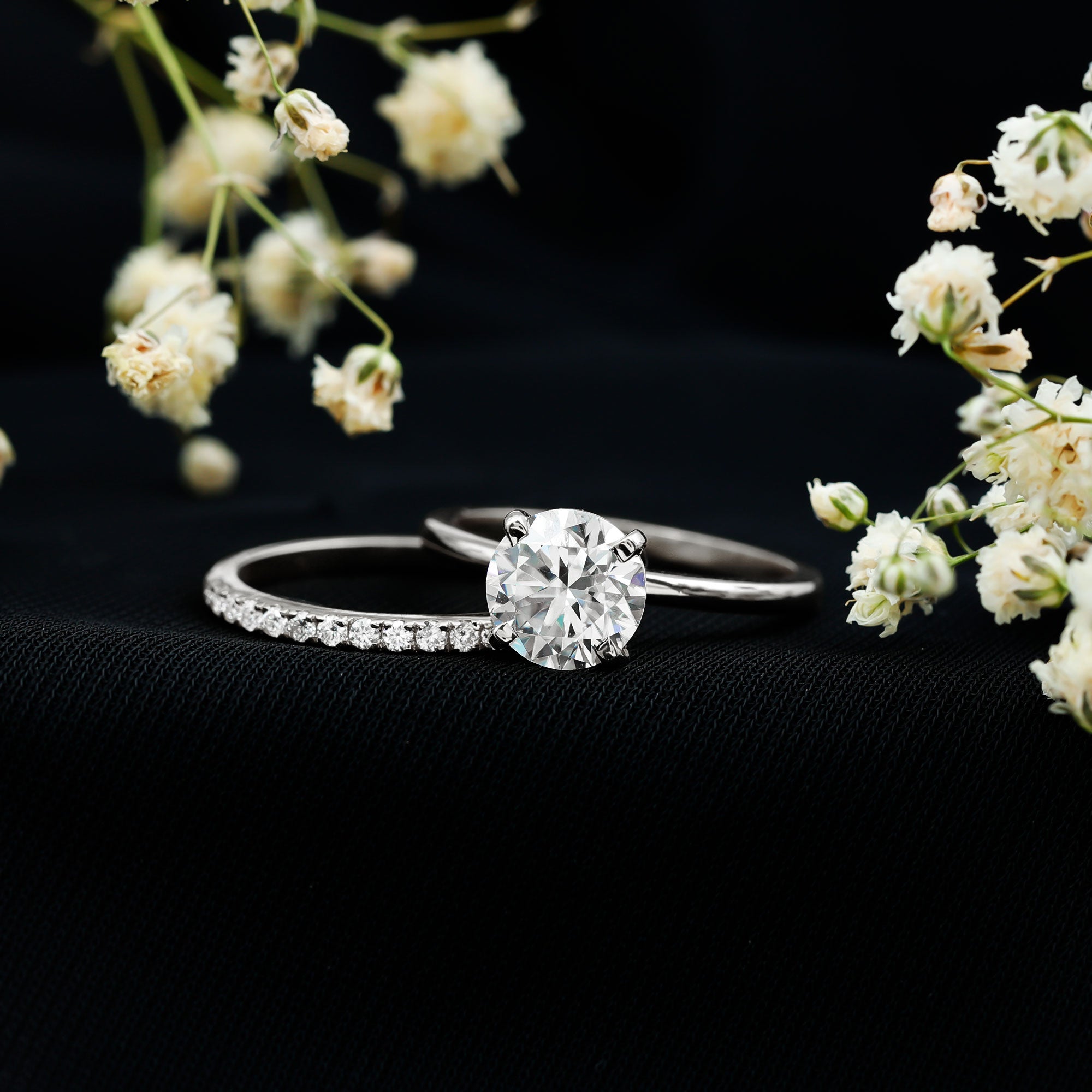 Both options are durable, beautiful, and ideal for everyday wear. Lab grown diamonds are real diamonds with the same hardness and fire, while moissanite is loved for its intense sparkle and affordability.