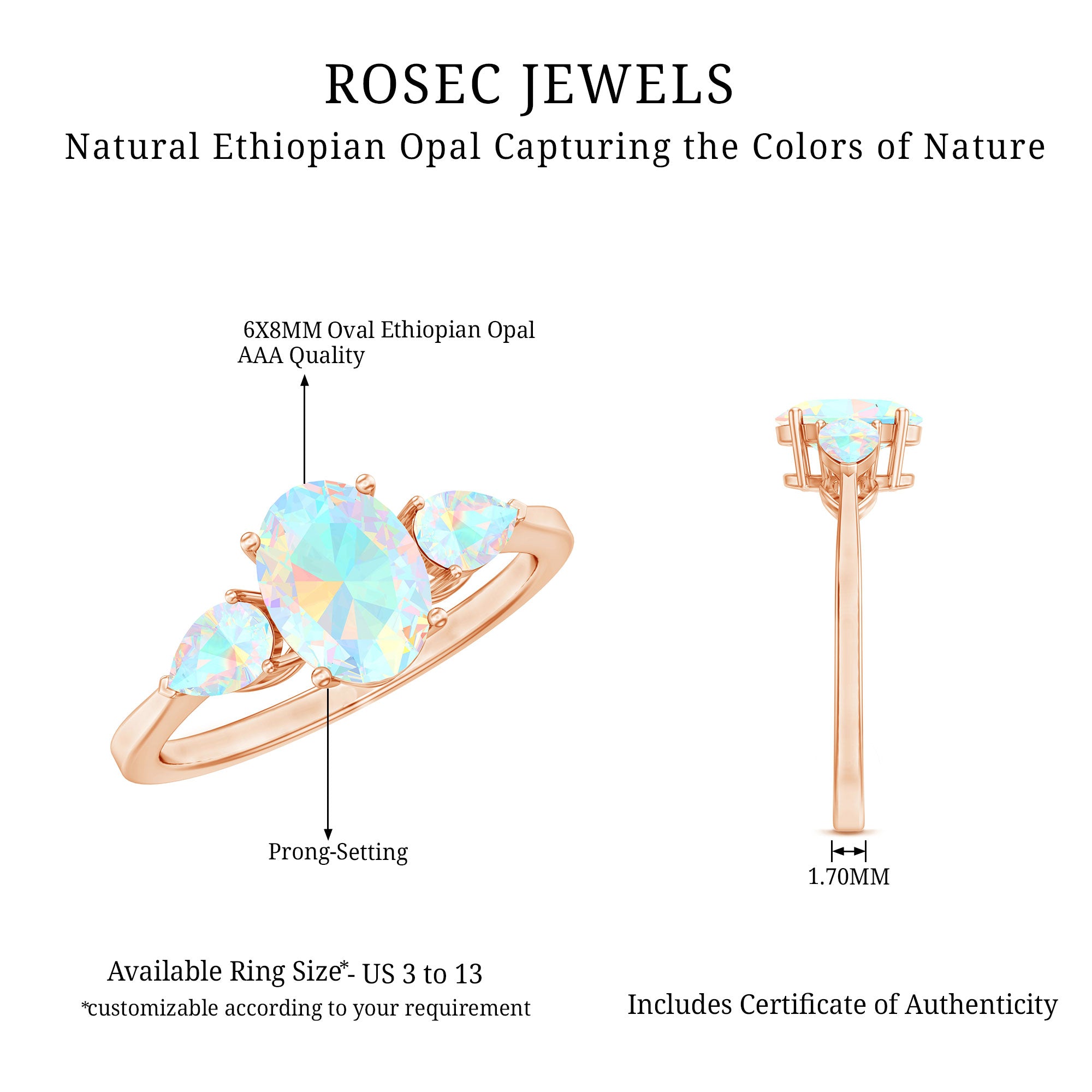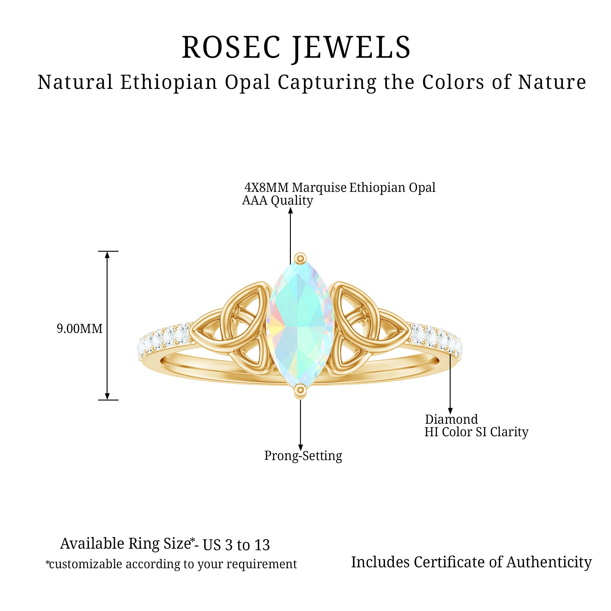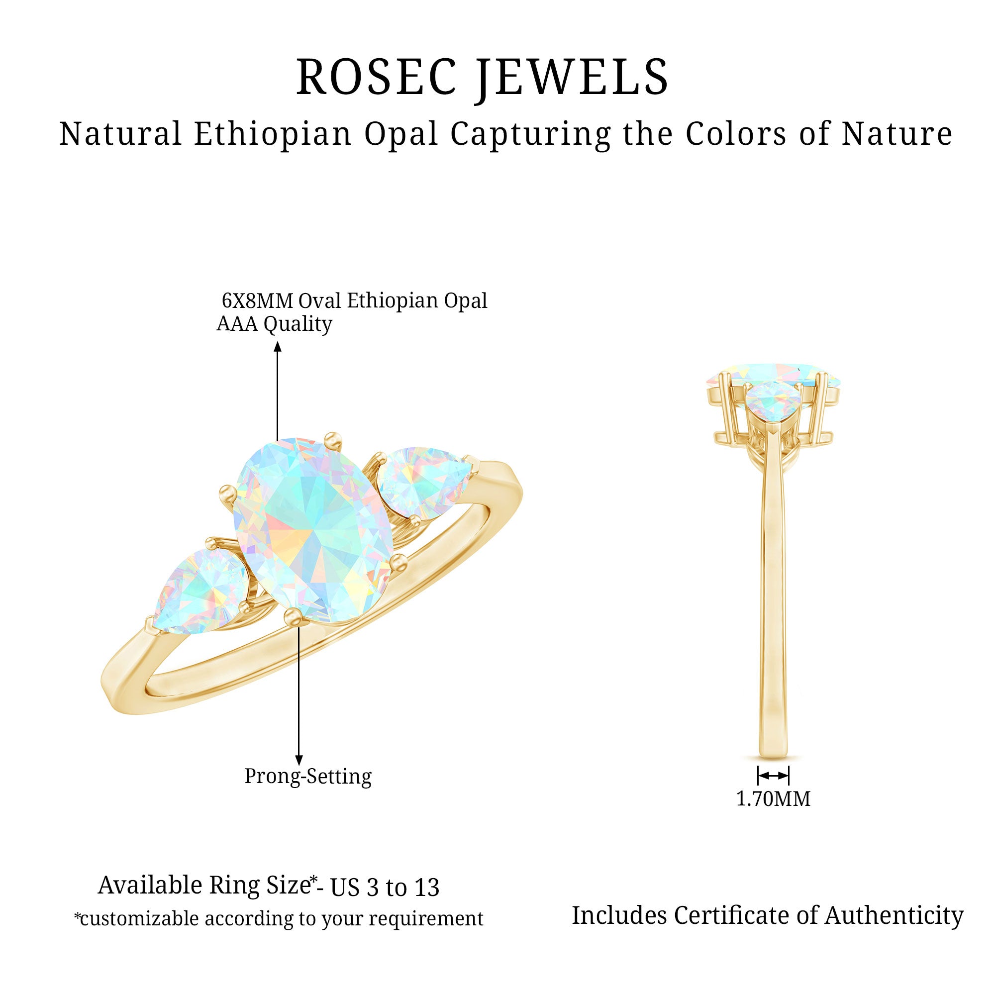 Yes. Many designs allow customization by stone type, shape, metal, and ring size.