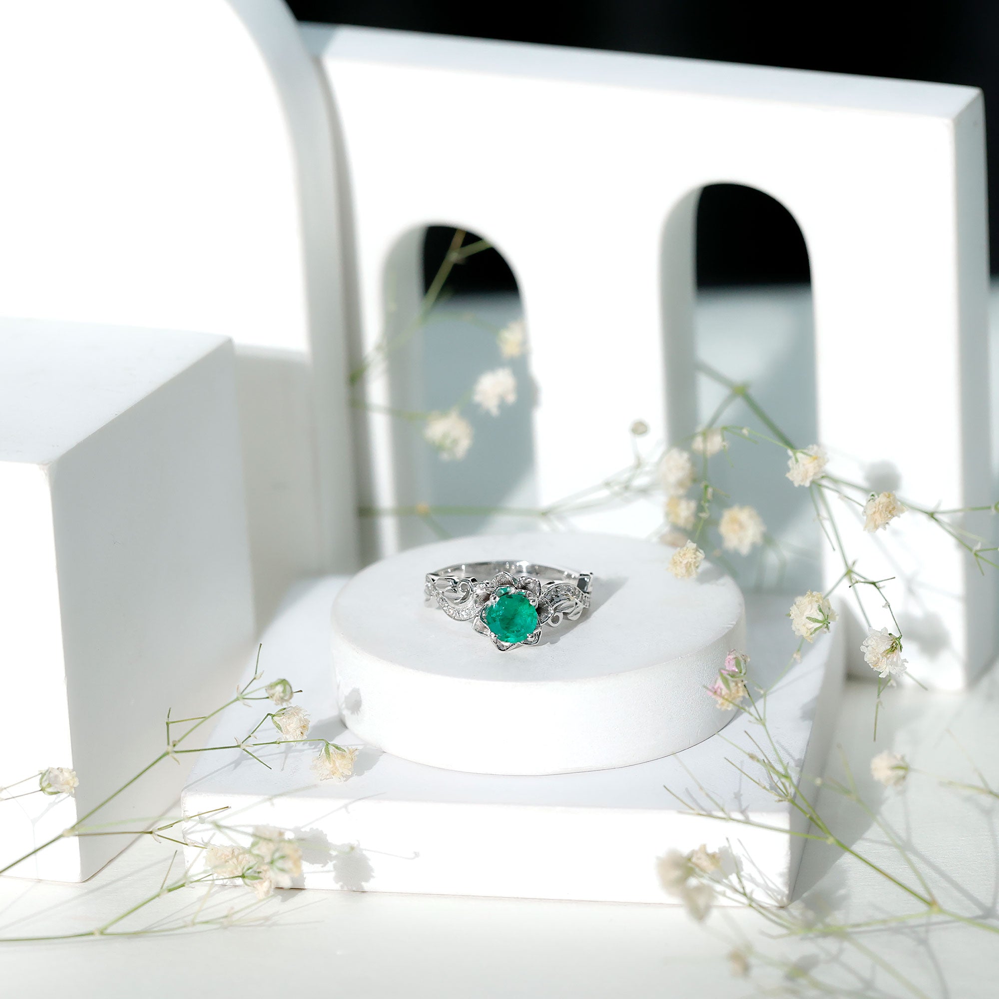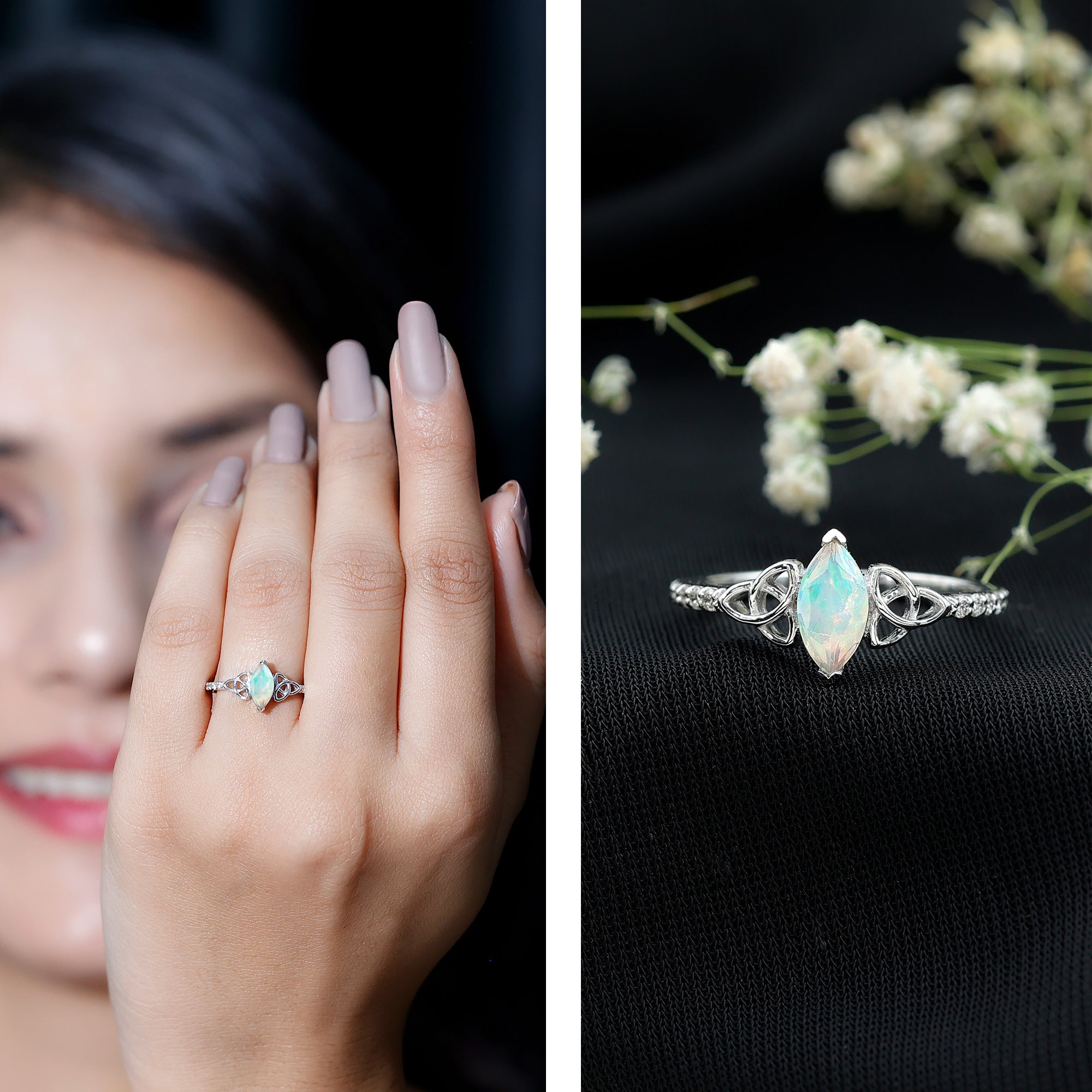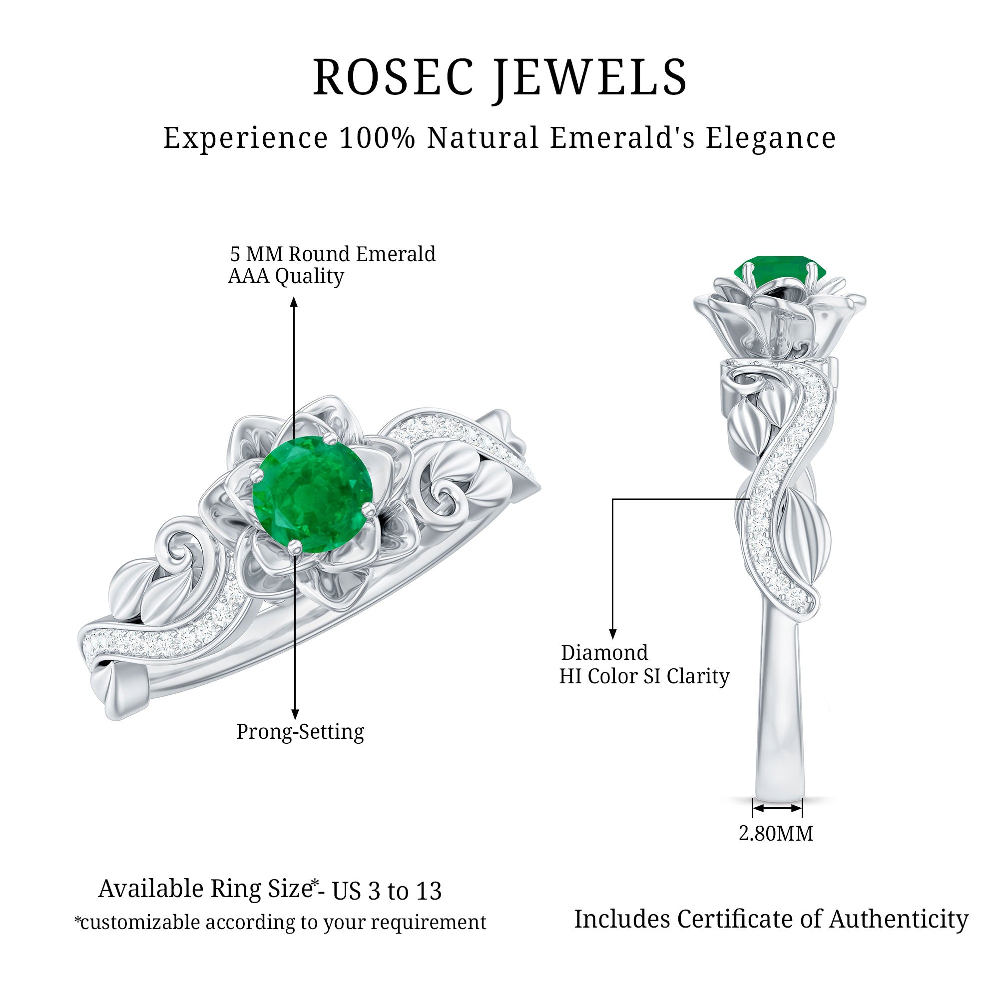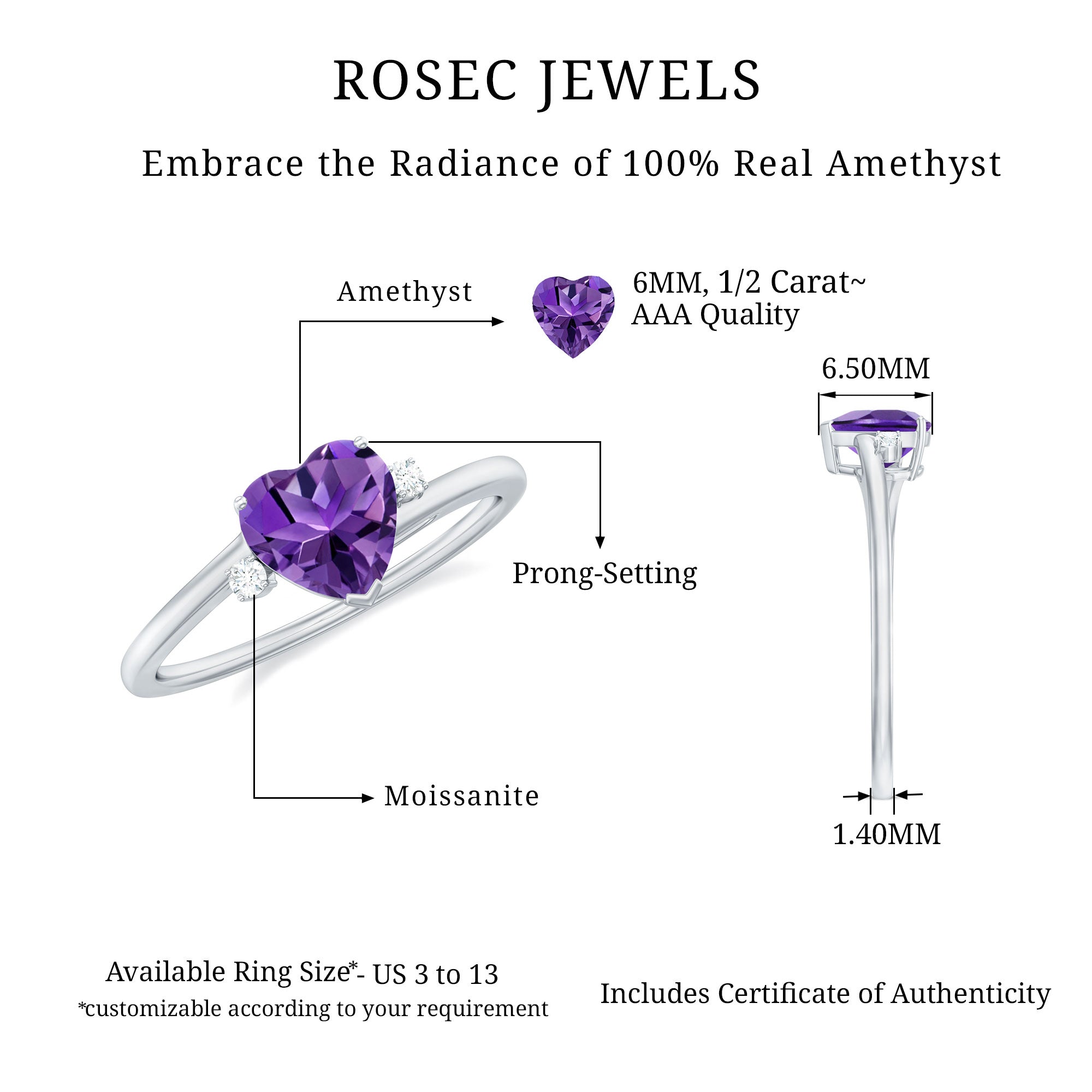 - Setting: Solitaire highlights the center stone, while halo adds visual size and brilliance.