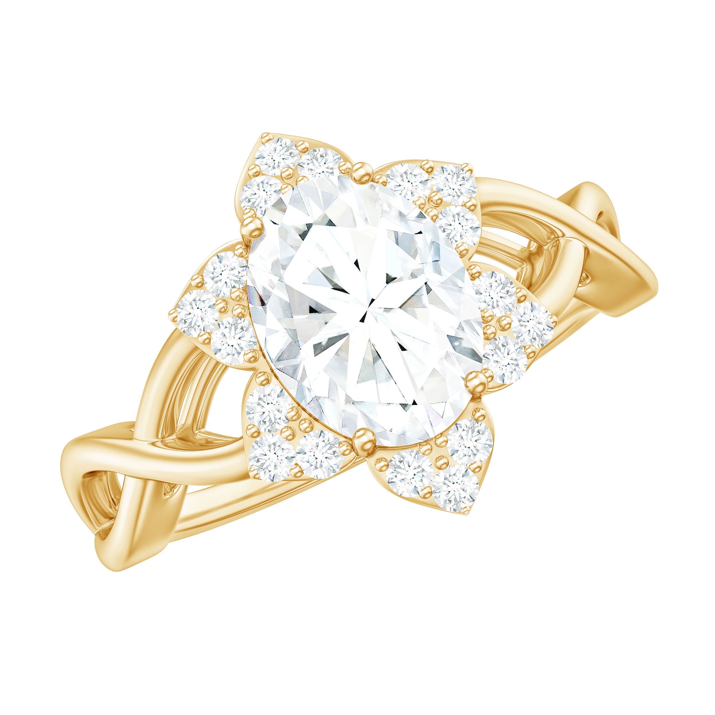 Moissanite: These are brilliant, cost-effective options to diamonds that are preferred for their durability and intense sparkle. They can not be differentiated from diamonds by a bare eye. Modern couples are choosing moissanite engagement rings for their affordability and sustainability. These stones with exceptional fire and brilliance can be easily crafted into all types of designs from vintage solitaires to intricate designer rings.