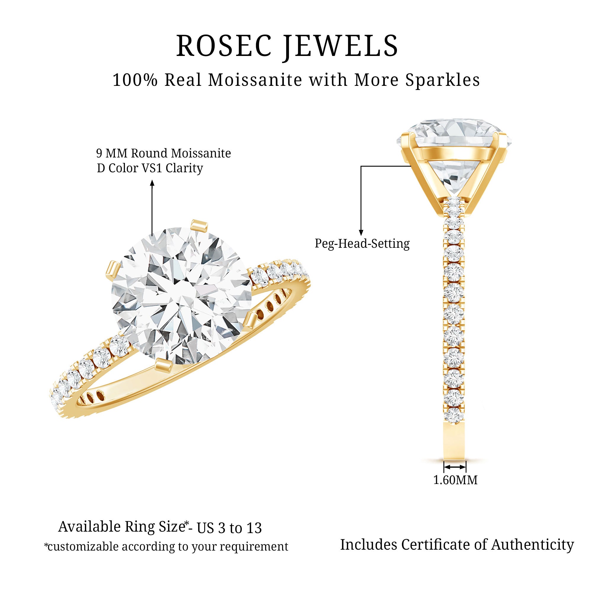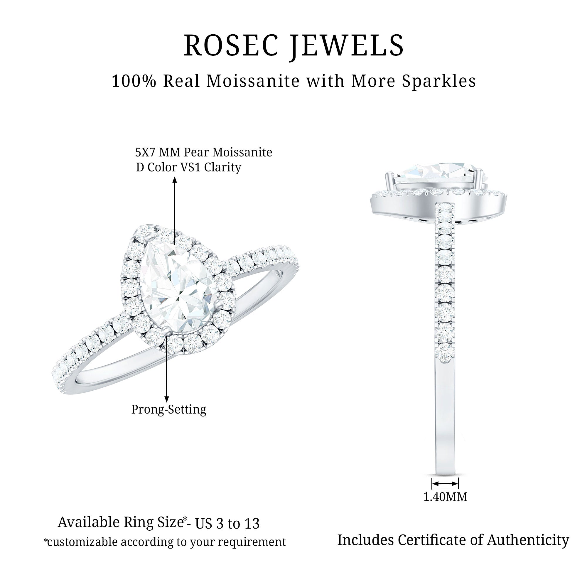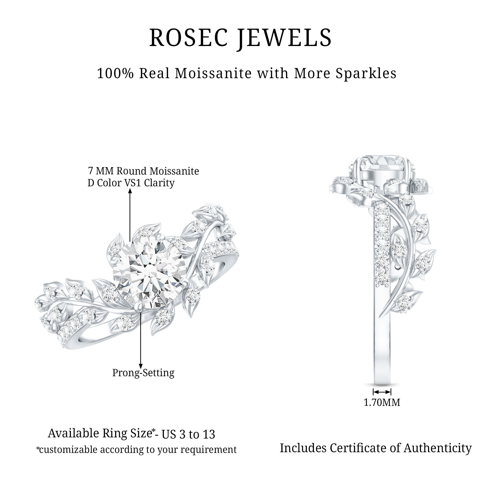 - Stone type: Lab grown diamonds offer a classic diamond look; moissanite delivers exceptional sparkle and value.