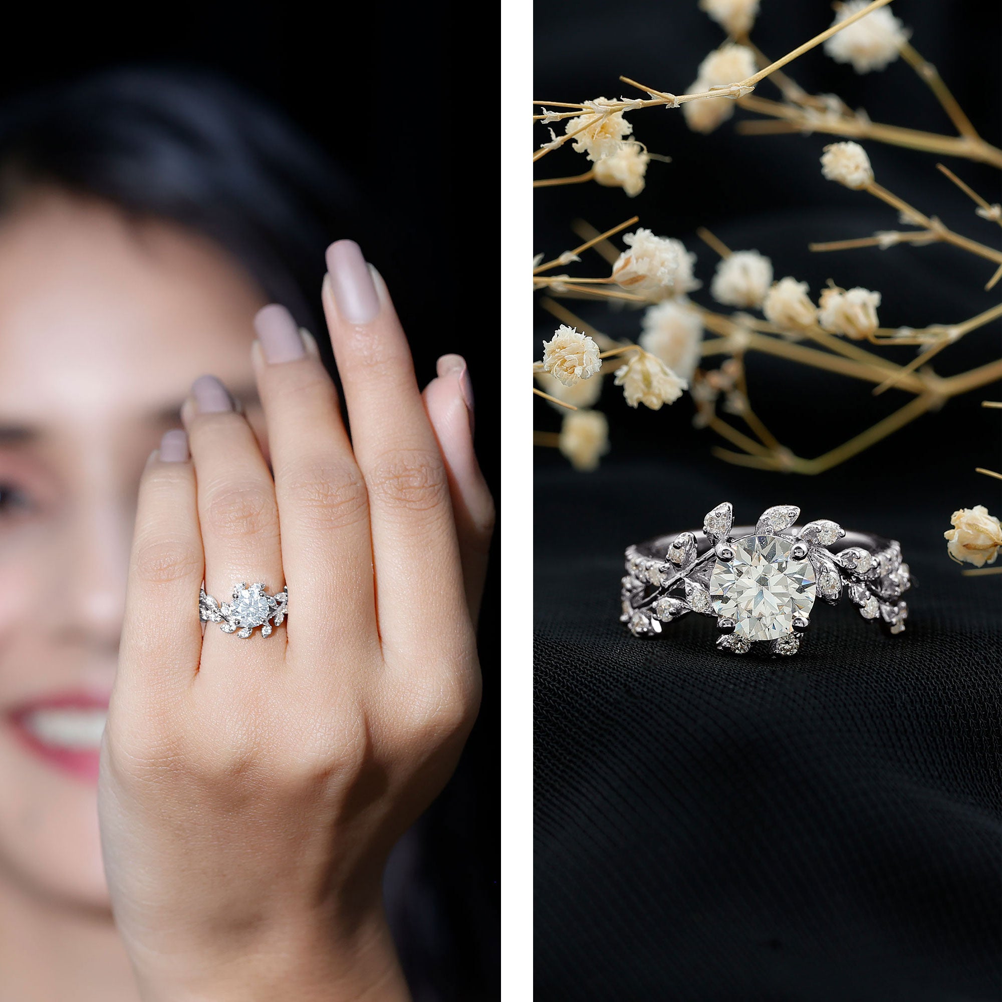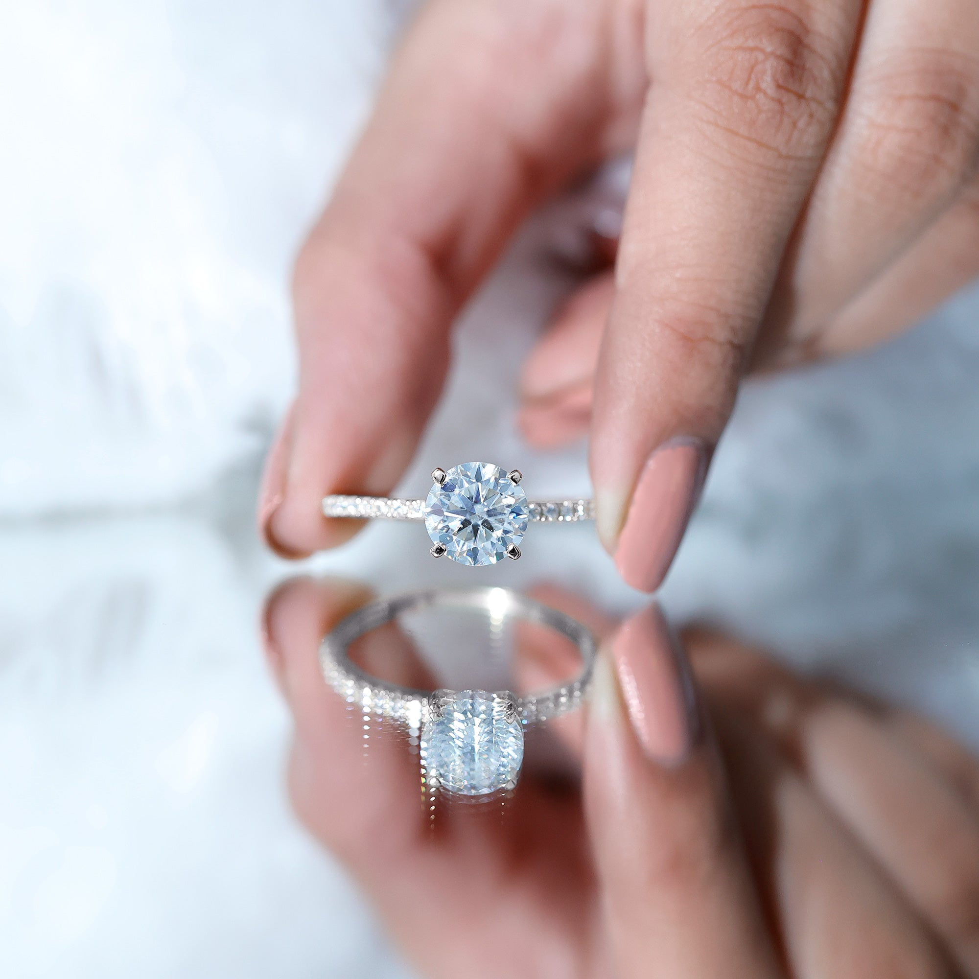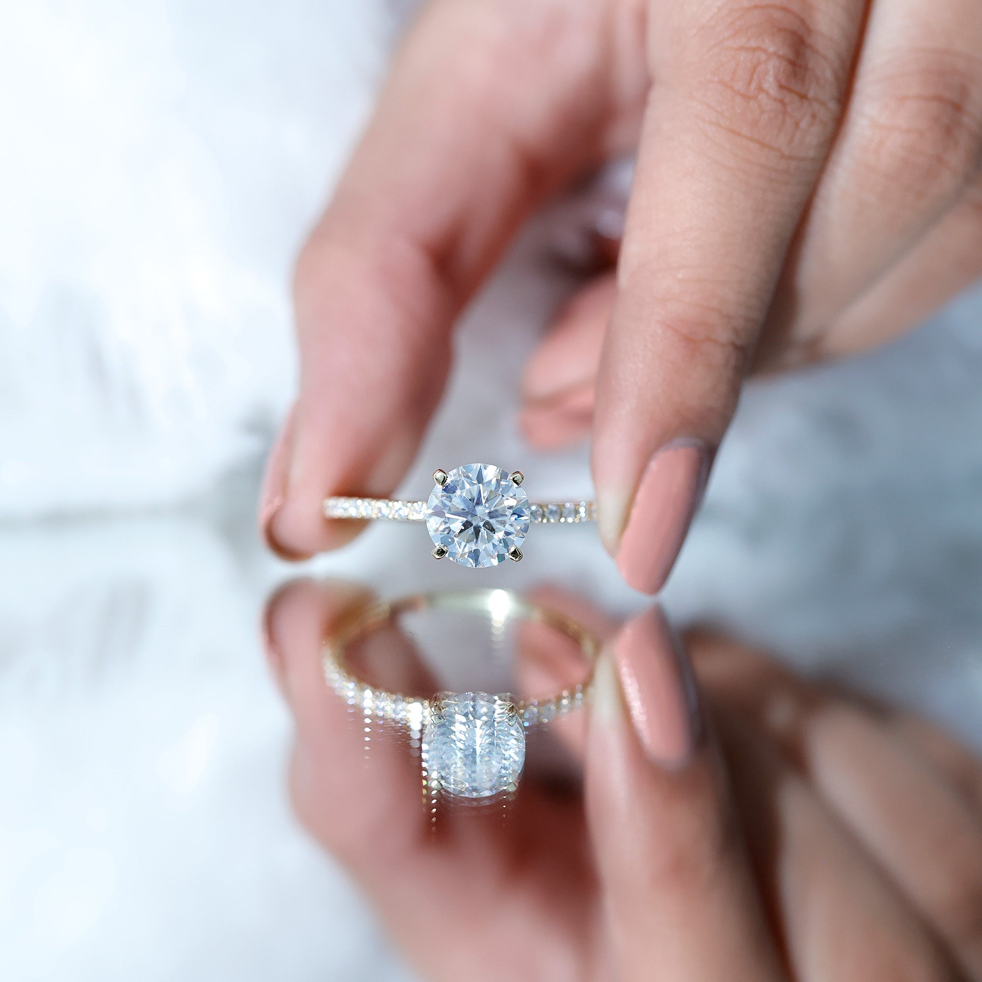 Explore our curated collection of engagement rings crafted with lab grown diamonds and moissanite—two brilliant, ethical alternatives to mined diamonds. Whether you prefer a timeless solitaire, a sparkling halo, or a vintage-inspired design, this page helps you compare styles, stones, and settings before you choose.