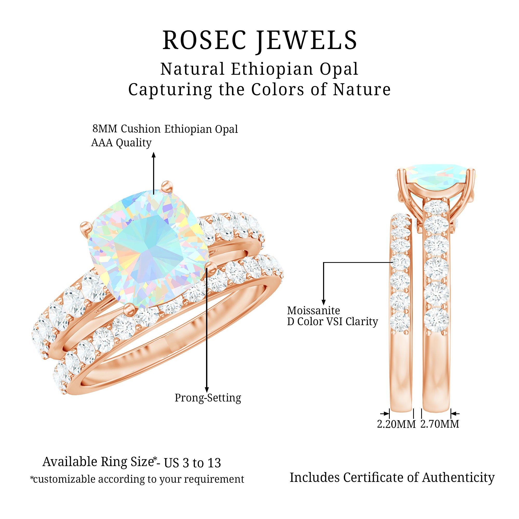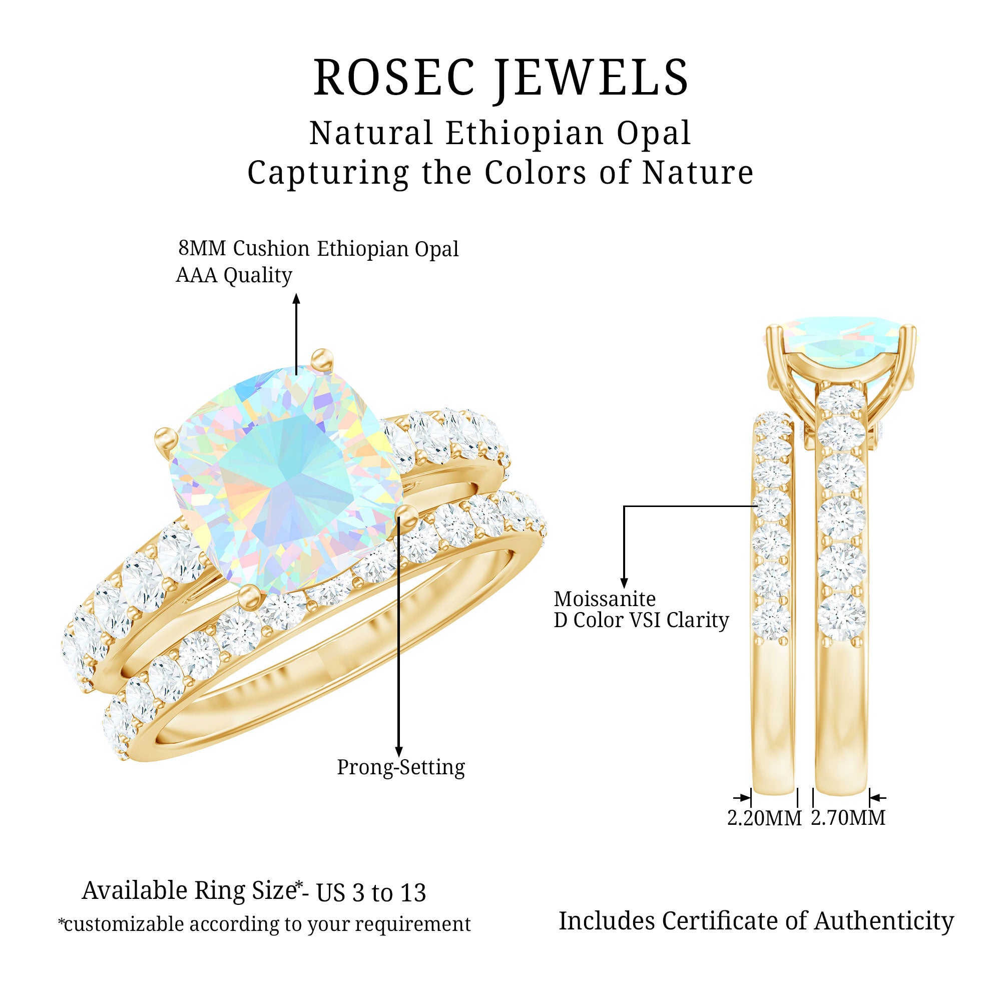 Yes. Many designs allow customization by stone type, shape, metal, and ring size.