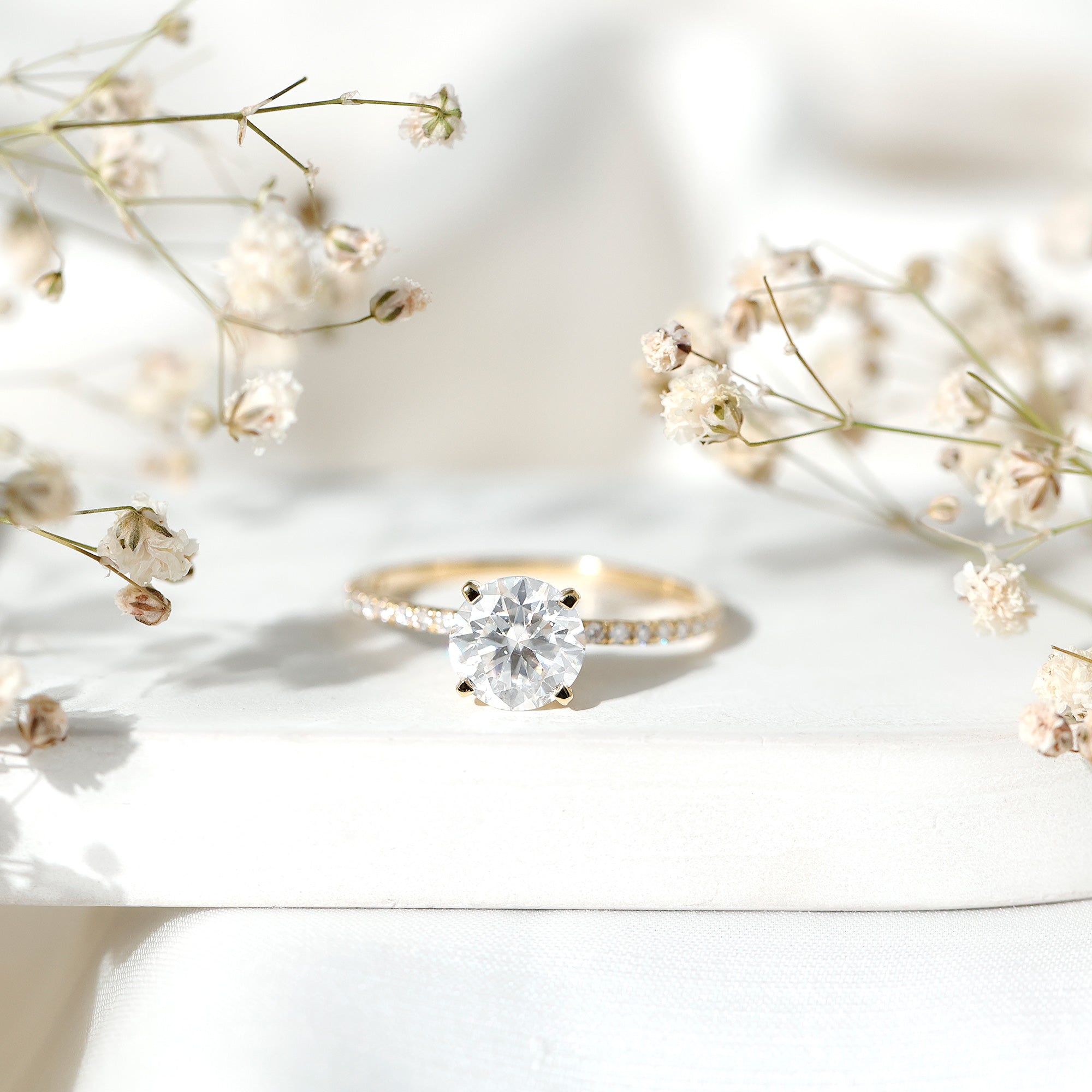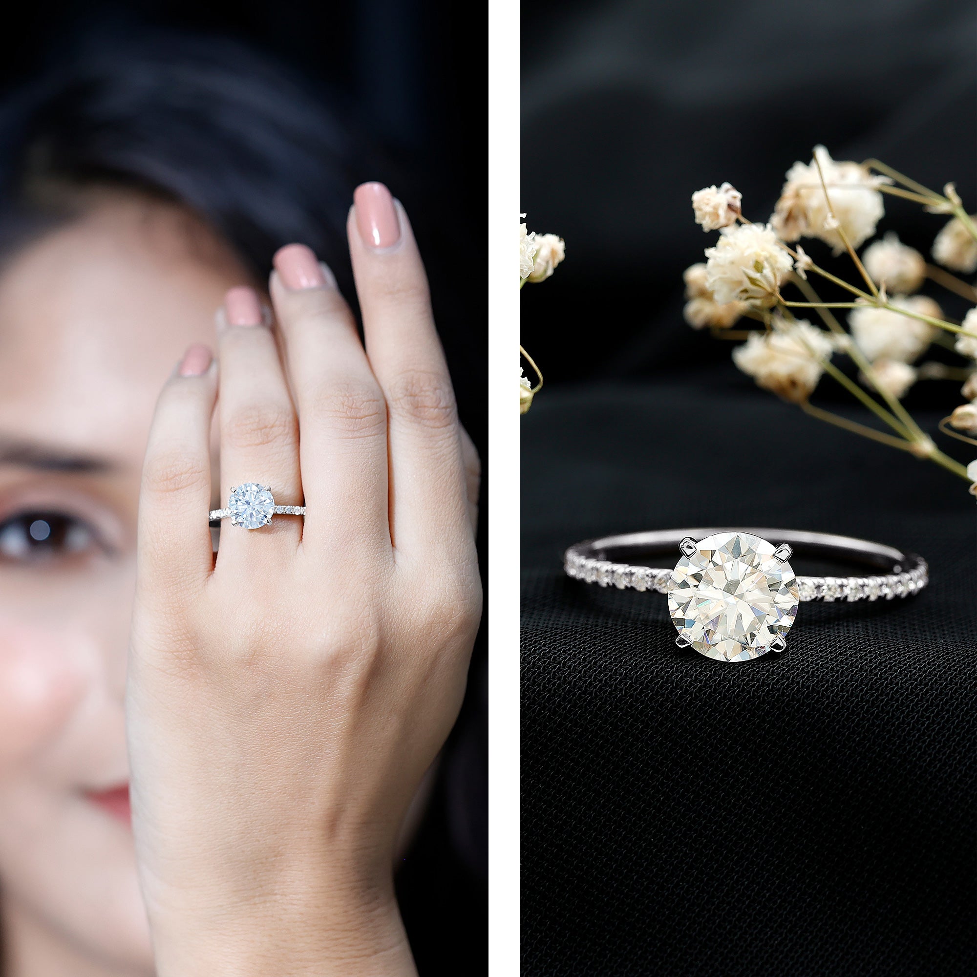 Both options are durable, beautiful, and ideal for everyday wear. Lab grown diamonds are real diamonds with the same hardness and fire, while moissanite is loved for its intense sparkle and affordability.