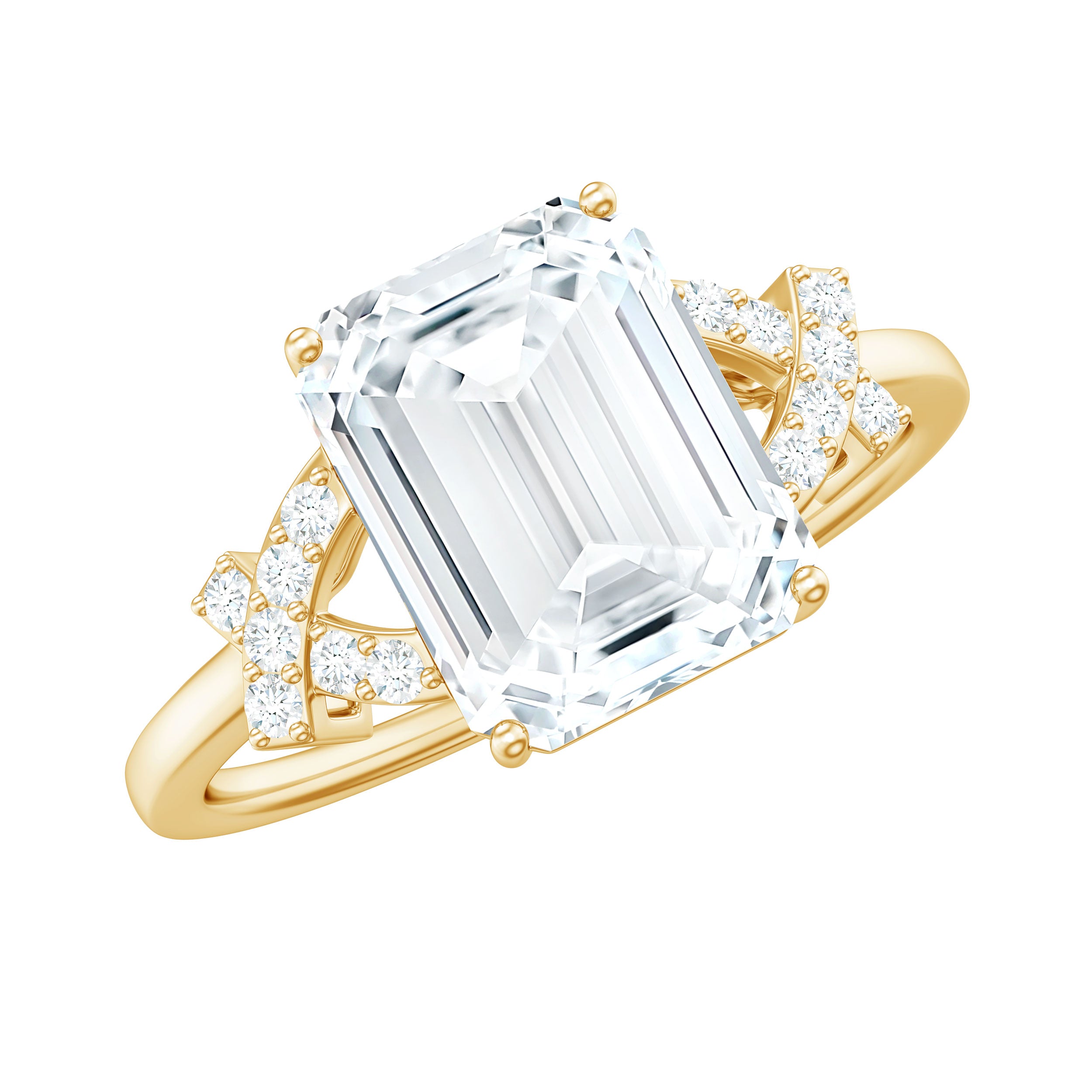 Emerald Cut Engagement Rings: Emerald cut engagement rings feature rectangular gemstones with step cuts as center stones. This cut with more clarity and depth, is less sparkling and often loved by minimalist lovers.