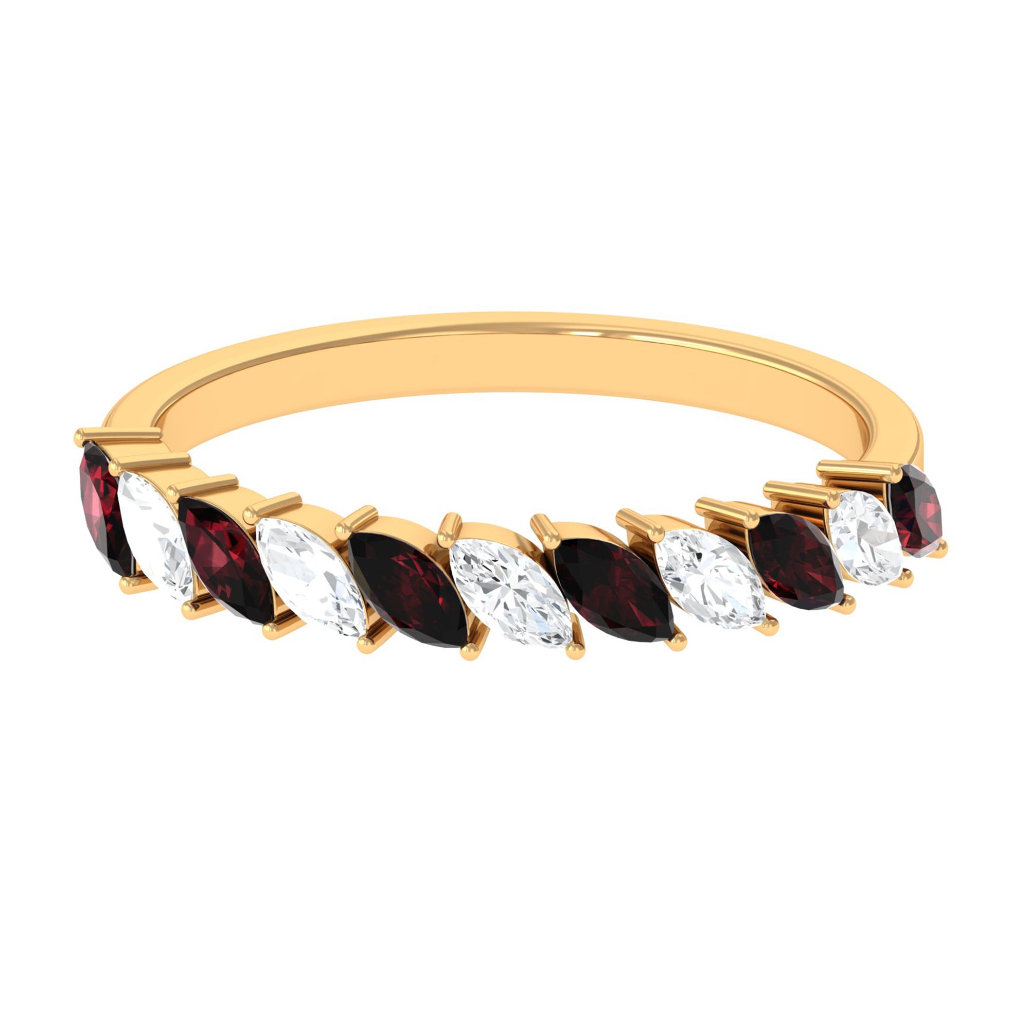 Mix it up with mixed-shape eternity bands! They use various stone shapes, like marquise and round cuts, for a unique and joyful look.