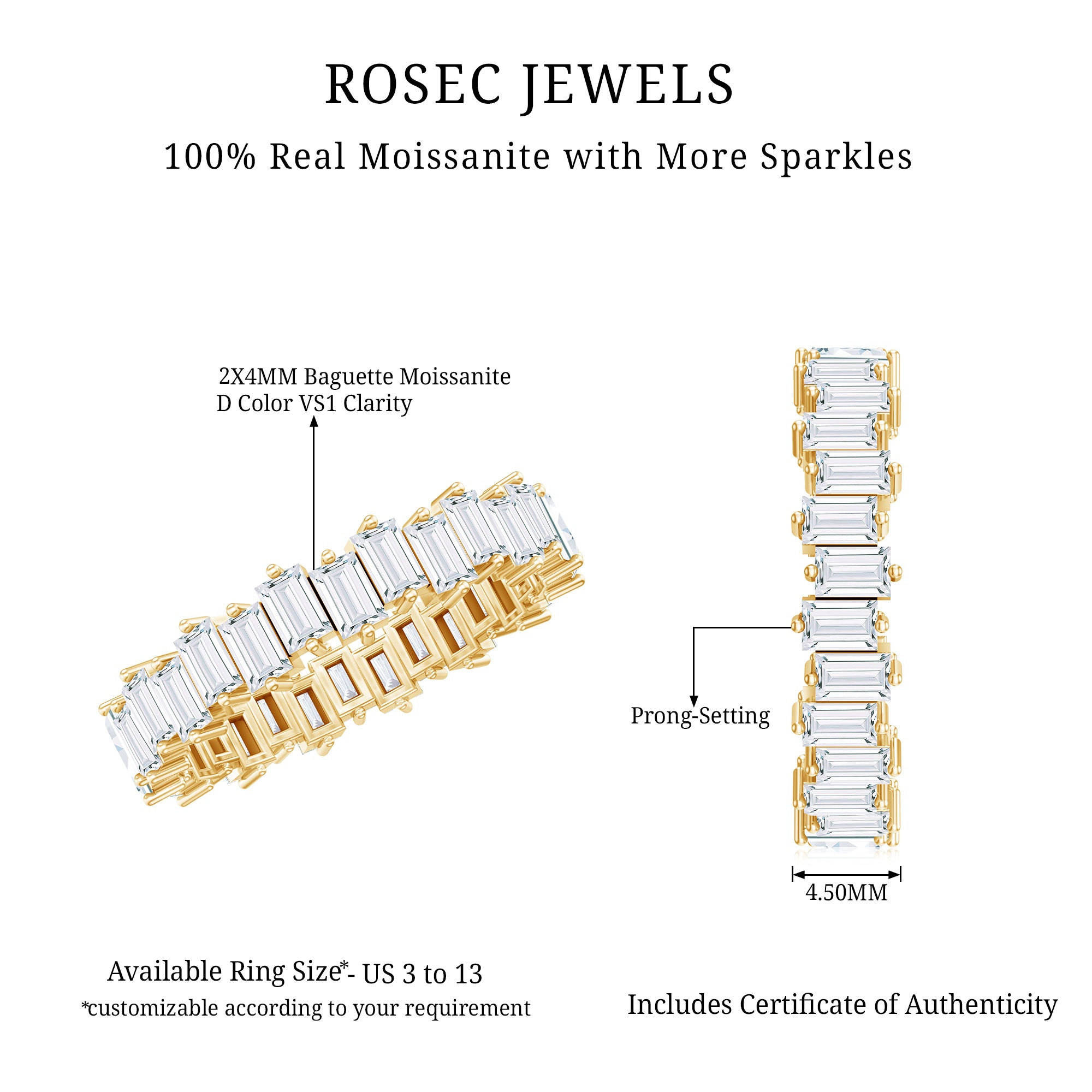Genuine and Pure: Rosec Jewels is proud to offer genuine Eternity Rings made from real gold and silver. Every ring comes with a certificate to guarantee its authenticity, ensuring you get the real and captivating beauty of an authentic eternity rings.