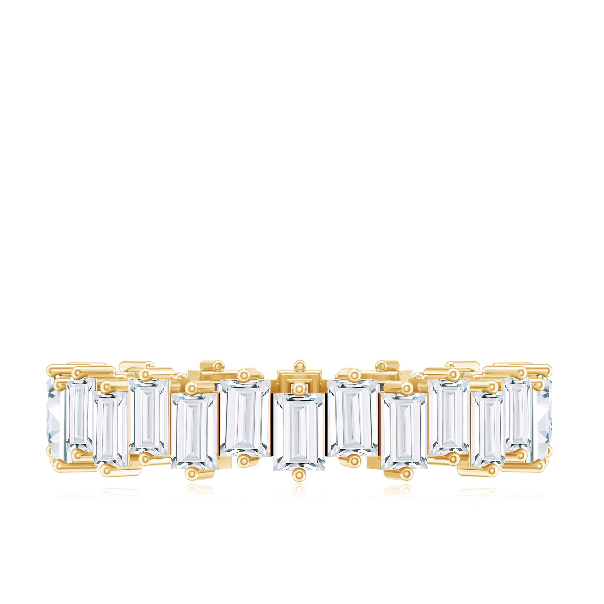 Eternity bands are crafted from white gold, yellow gold, rose gold, and silver. It's best to choose a metal that goes well with your current jewelry, especially if worn with an engagement ring and wedding band. All these metals are strong, ensuring your eternity band's stones stay safe. Your decision boils down to your preferred color, what complements your skin tone, and your budget.