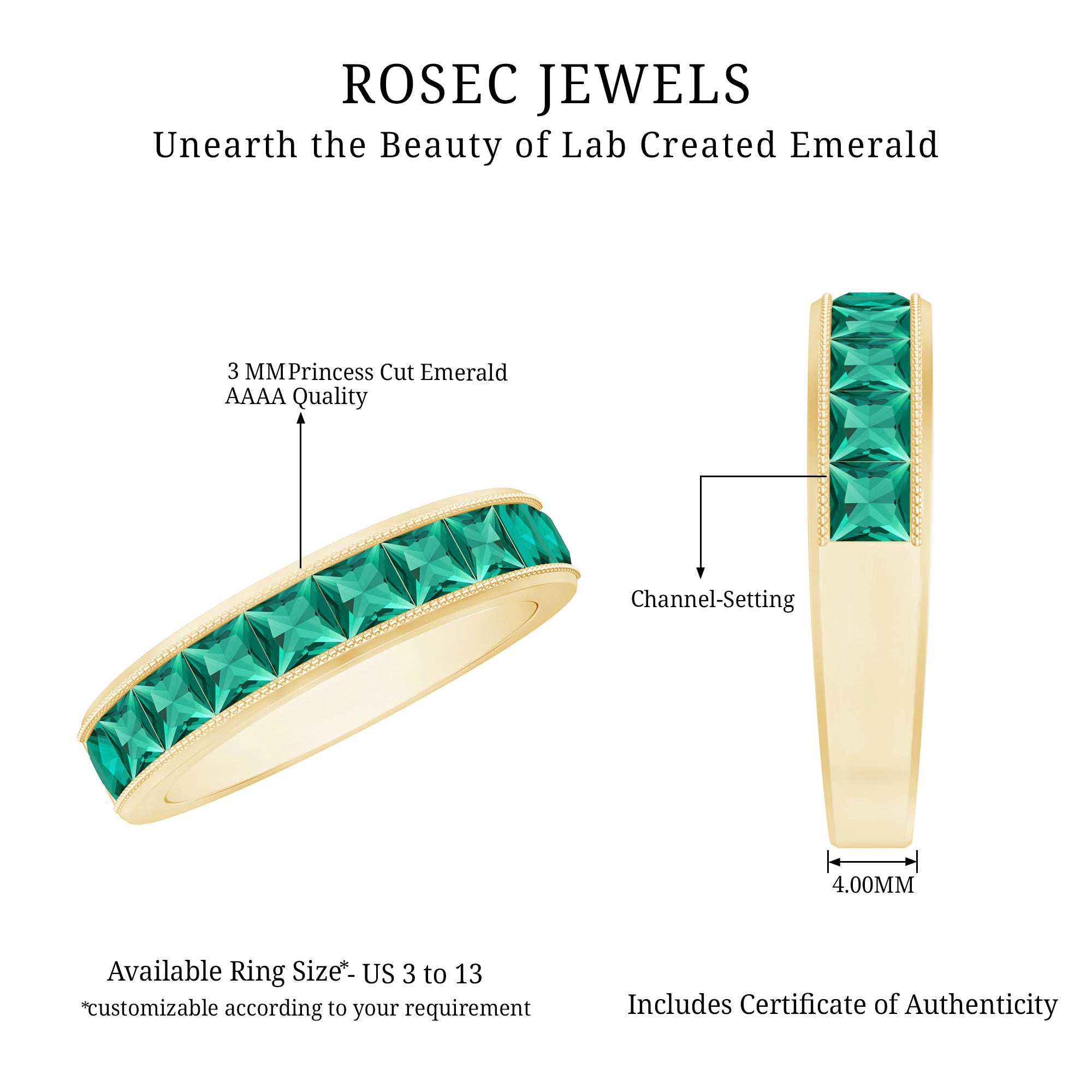 • Genuine and Pure: Rosec Jewels is proud to offer genuine Eternity Rings made from real gold and silver. Every ring comes with a certificate to guarantee its authenticity, ensuring you get the real and captivating beauty of an authentic eternity rings.