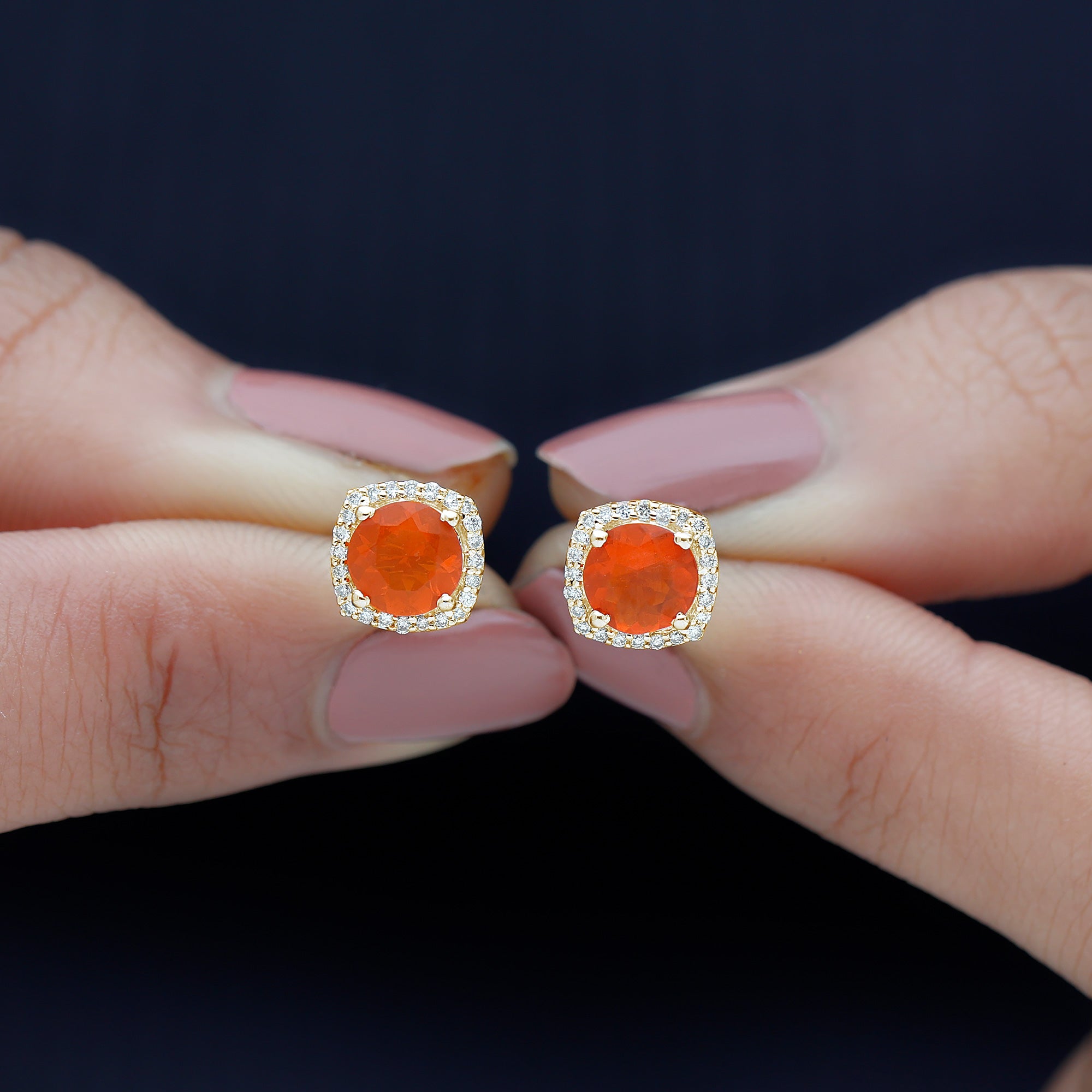 Rosec Jewels collections of fire opal earrings are all you need to level up your earrings fashion. these vibrant orange opal earrings will attract everyone's eyes towards you. the uniqueness of our fire opals is playing red, orange, and yellow colors in the best quality. the transparent translucent appearance of our gold fire opals gives you luxurious looks.