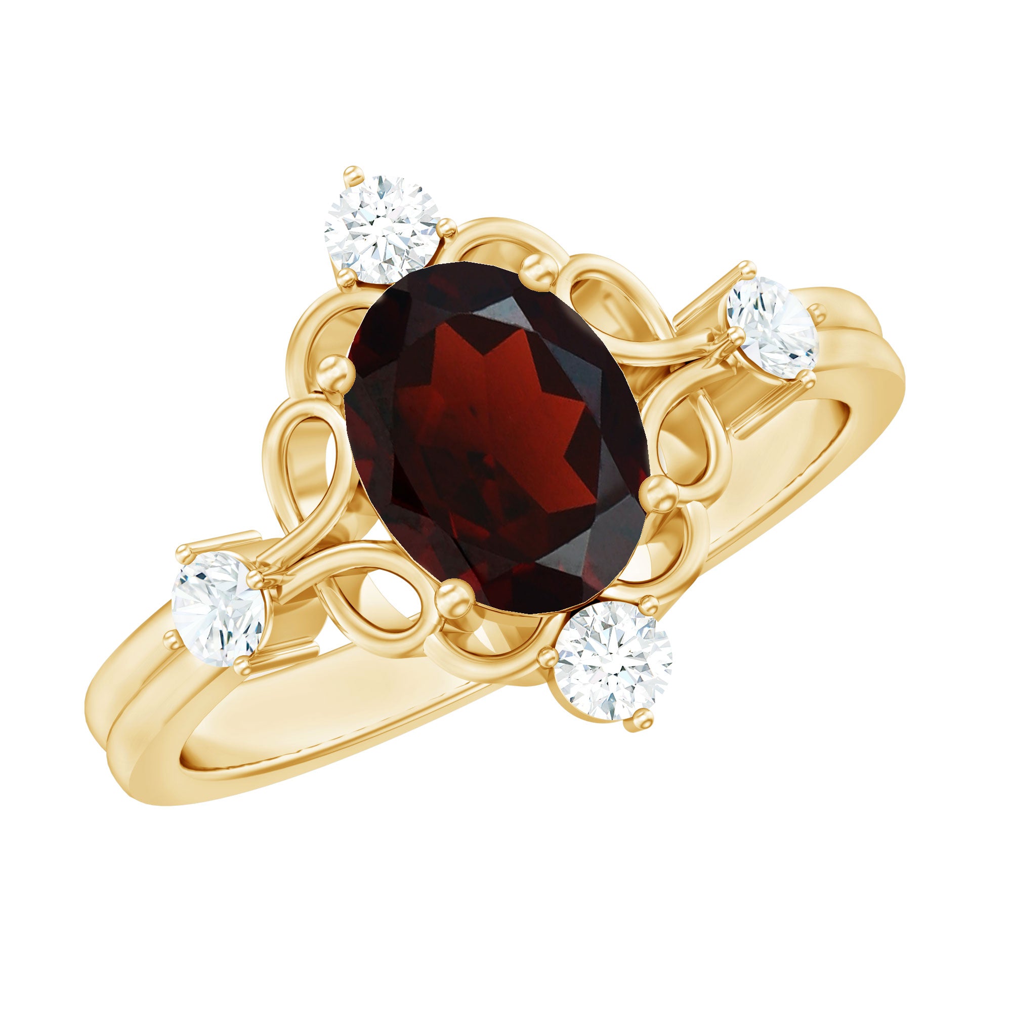 Yellow Gold: - The yellow gold enhances the vibrant tone of garnet while making the ring antique and unique.