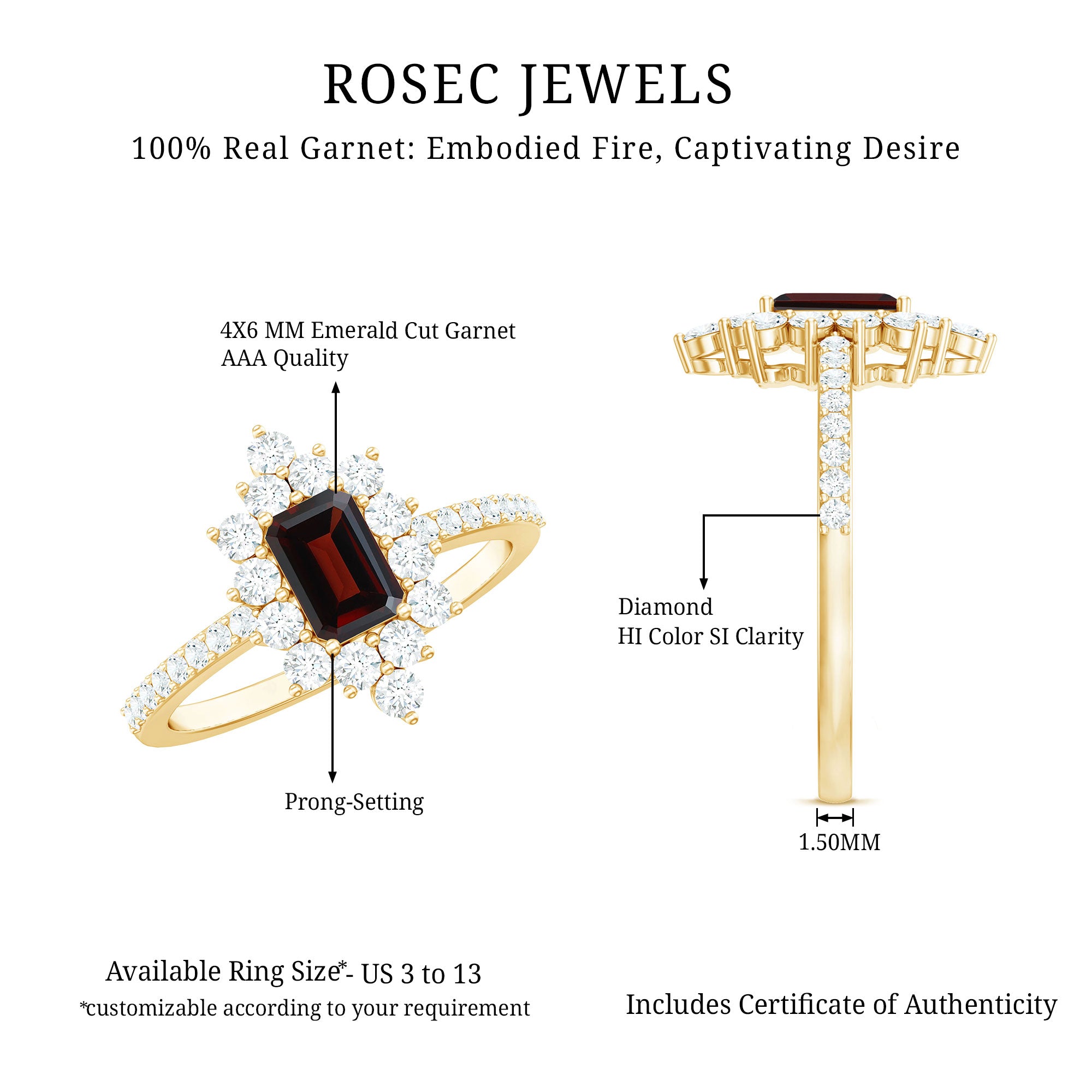 Our garnet engagement rings collection offers a wide variety of garnet engagement rings, ranging from simple solitaire styles to more intricate designer pieces. These days, red gemstones are trending for engagement jewelry due to their rich color and affordable prices. These styles offer bold ways to propose and celebrate love. The garnet gem considers as the stone of love, mainly associated with protection, love, passion, commitment, and never-ending friendship. Whether you're going to choose a classic solitaire ring or an antique vintage ring, each ring is specially designed to cater to your style.