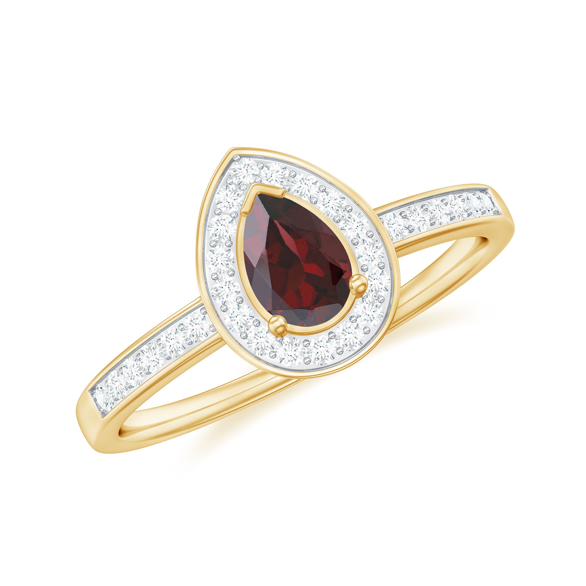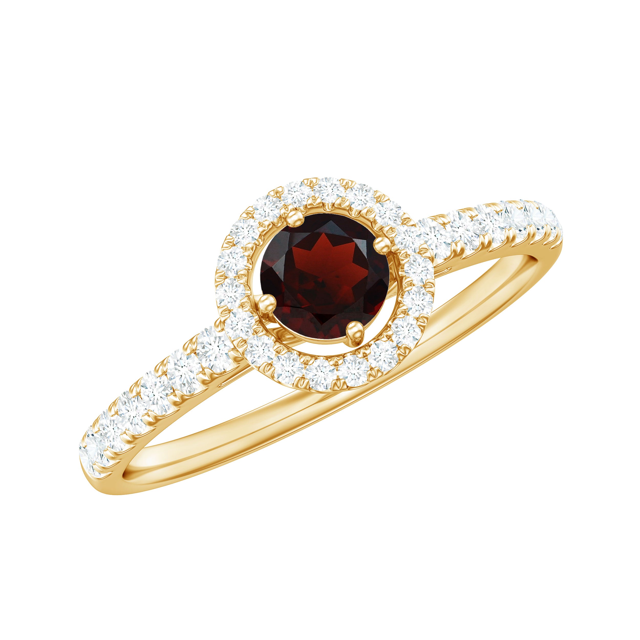 Halo Rings: - Showcases the beauty of garnet stone with a halo motif, these rings accentuate the brilliance of the center stone elegantly. Due to the diamond accents, the size of the garnet looks a bit large. The vibrant hues of red stone represent love and passion which makes them perfect for engagement rings. The halo style adds an extra layer of shine and elegance to the ring, enhancing the beauty of the ring. The Halo collection is perfect for those who always appreciate something unique and classy.