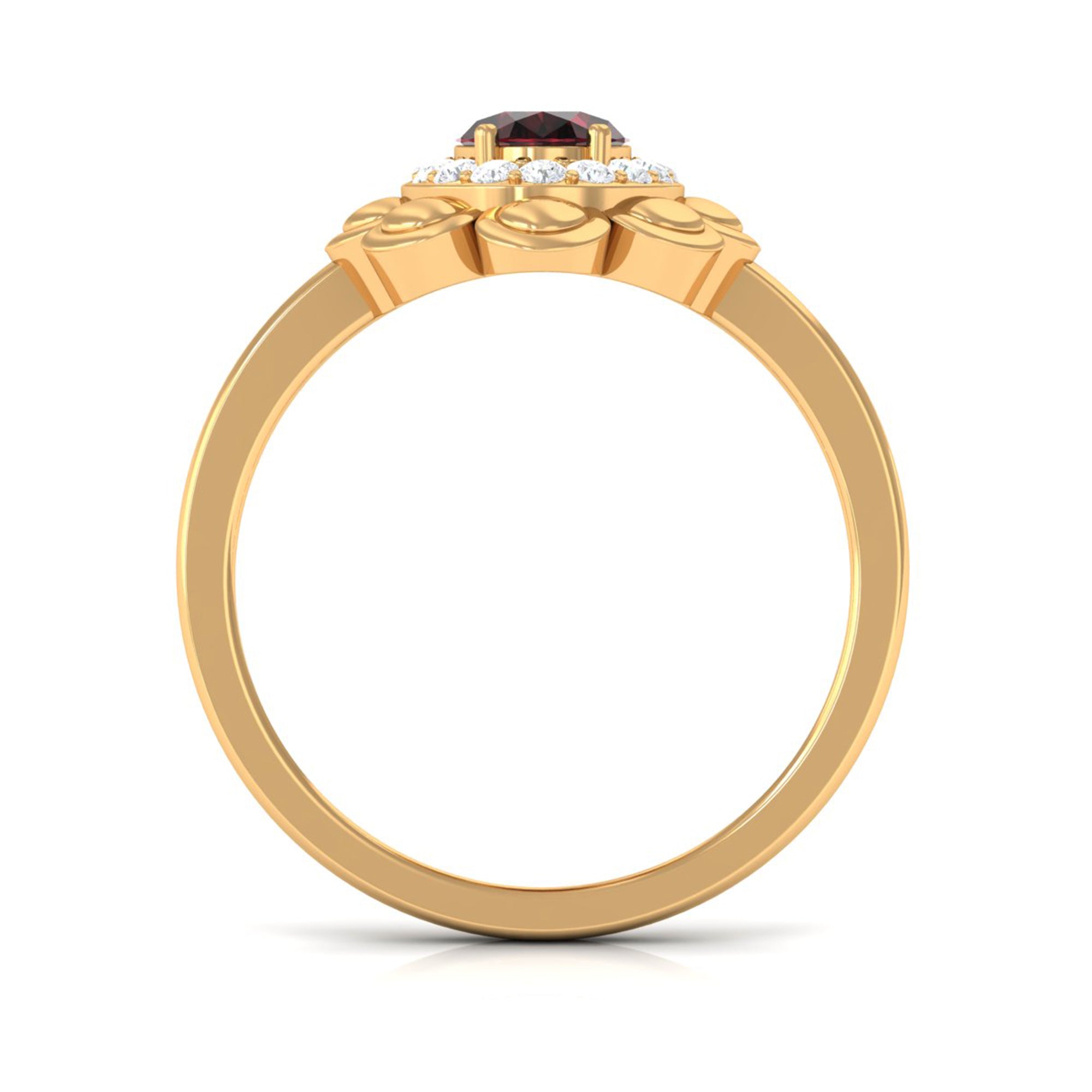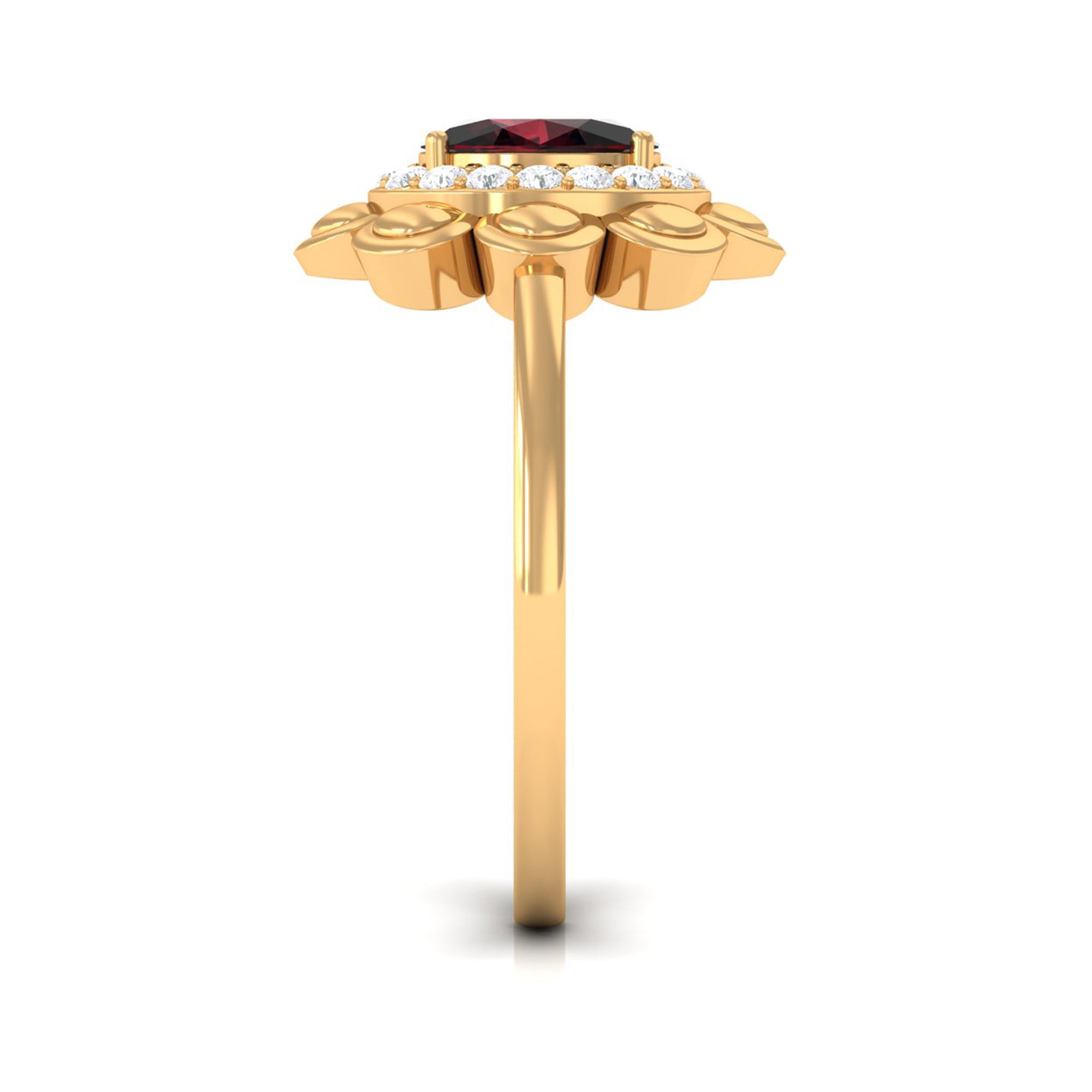• Yellow Gold: - The yellow gold enhances the vibrant tone of garnet while making the ring antique and unique.