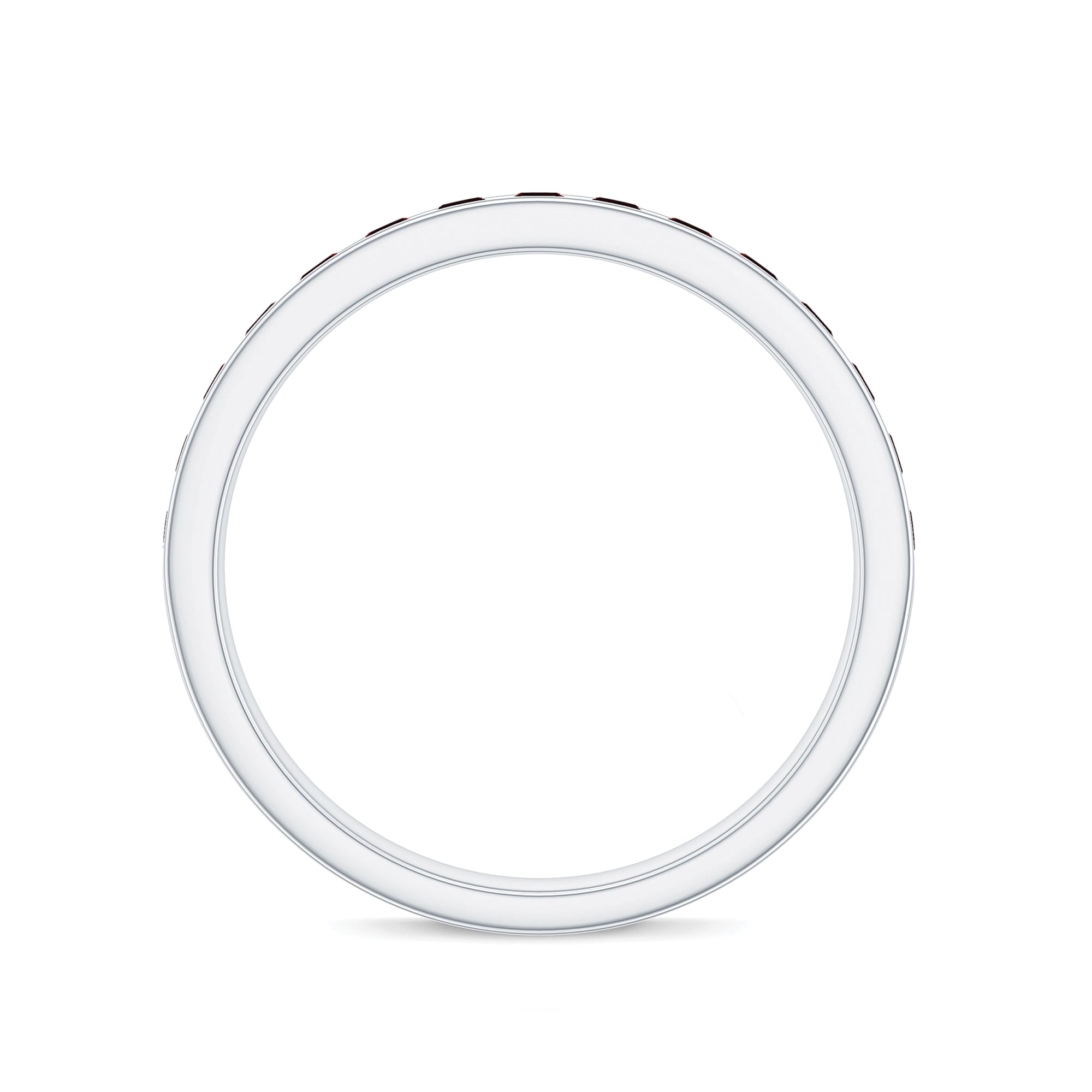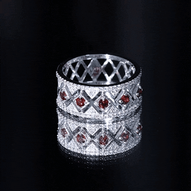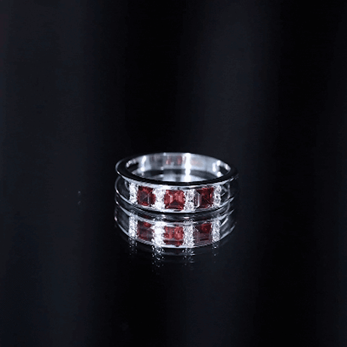 - Clarity: The red garnet in wedding bands tend to have no eye-visible inclusions. An eye-clean garnet band will command higher prices for wedding rings.